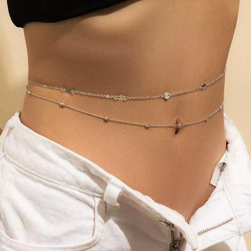 Европейские и американские трансграничные ювелирные изделия, новая двухслойная металлическая цепочка с шариками и дисками, поясная цепочка, комплект, сексуальная регулируемая цепочка для тела