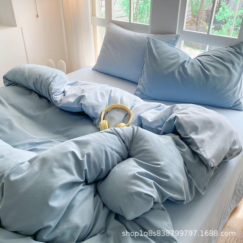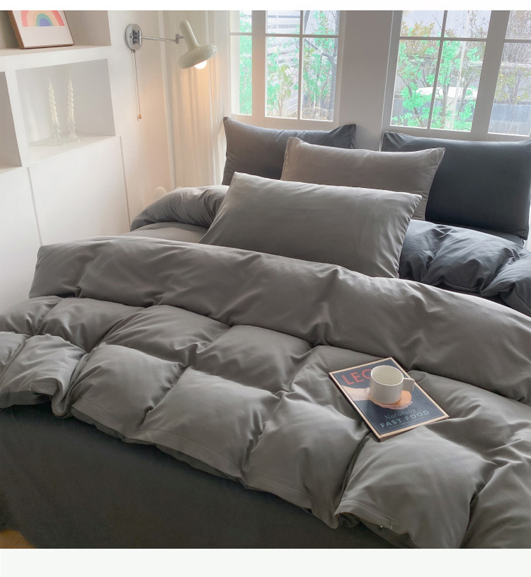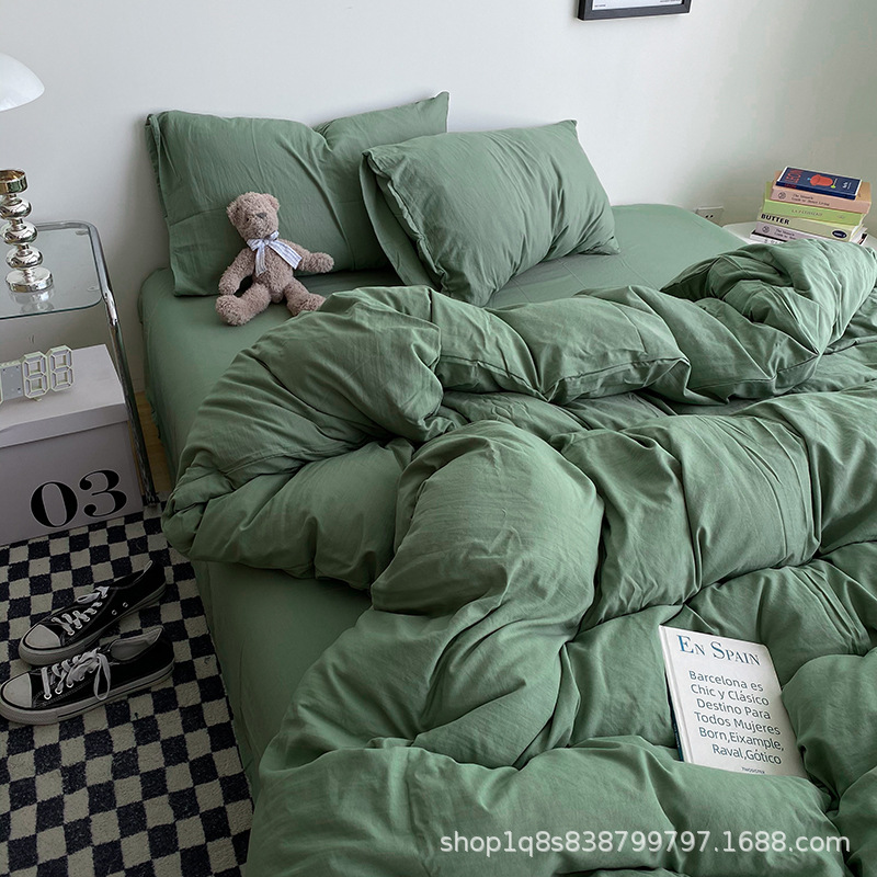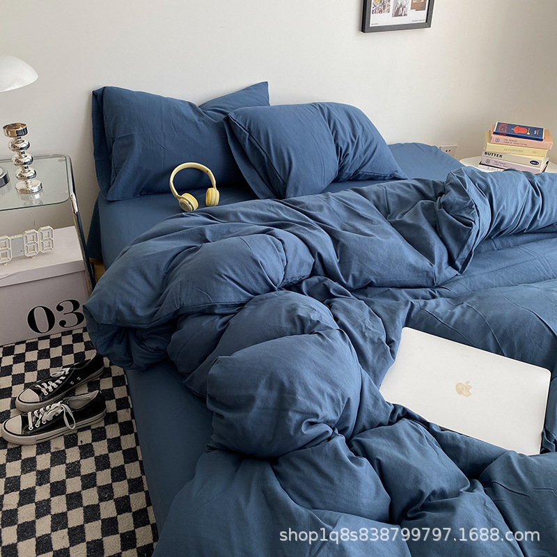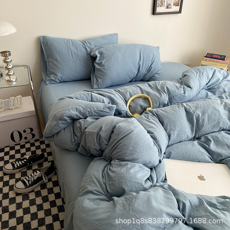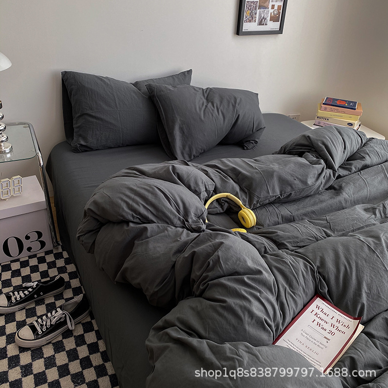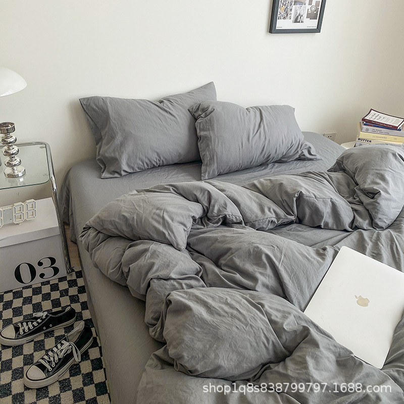 Комплект постельного белья в скандинавском стиле из стираного хлопка, приятного для кожи, зимний, из четырех предметов, пододеяльник, комплект из трех предметов для студенческого общежития, простыня на резинке