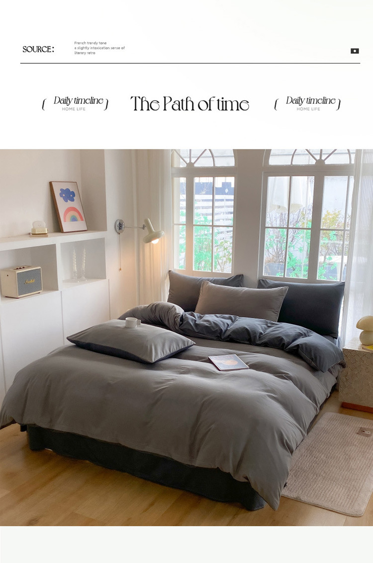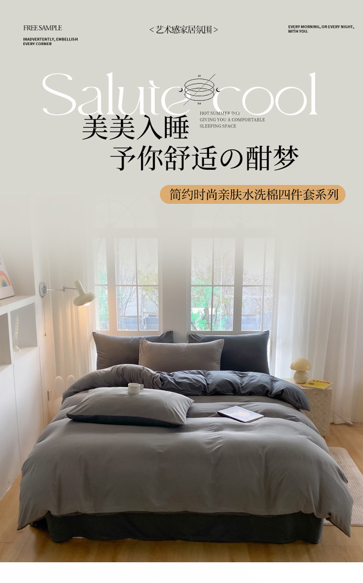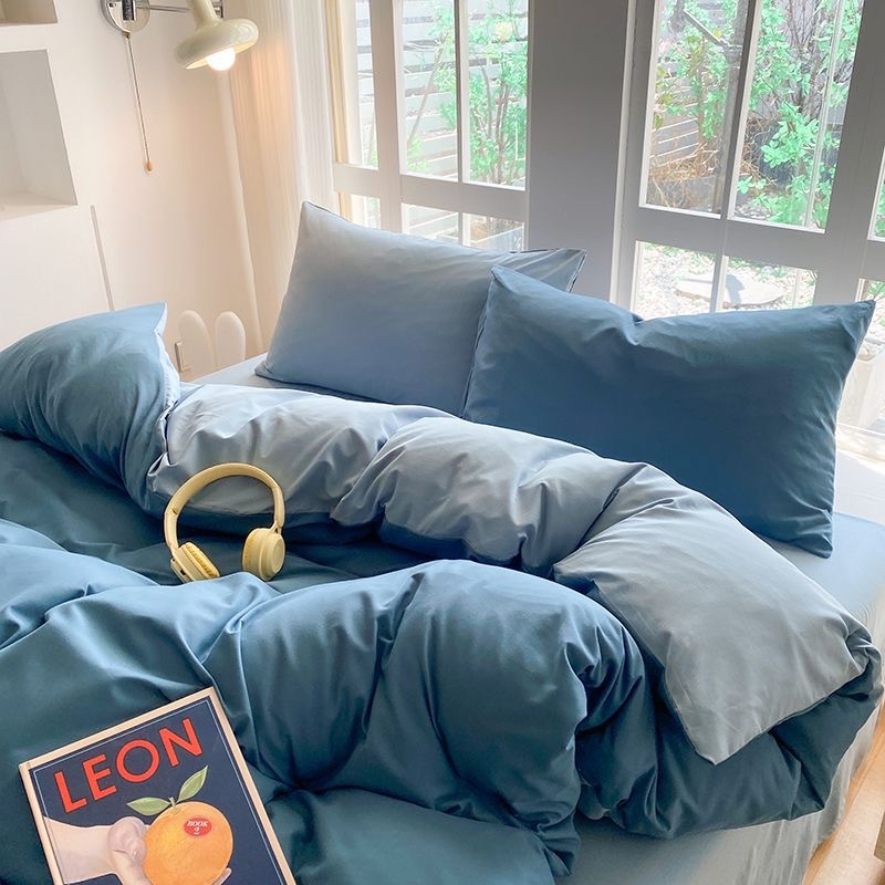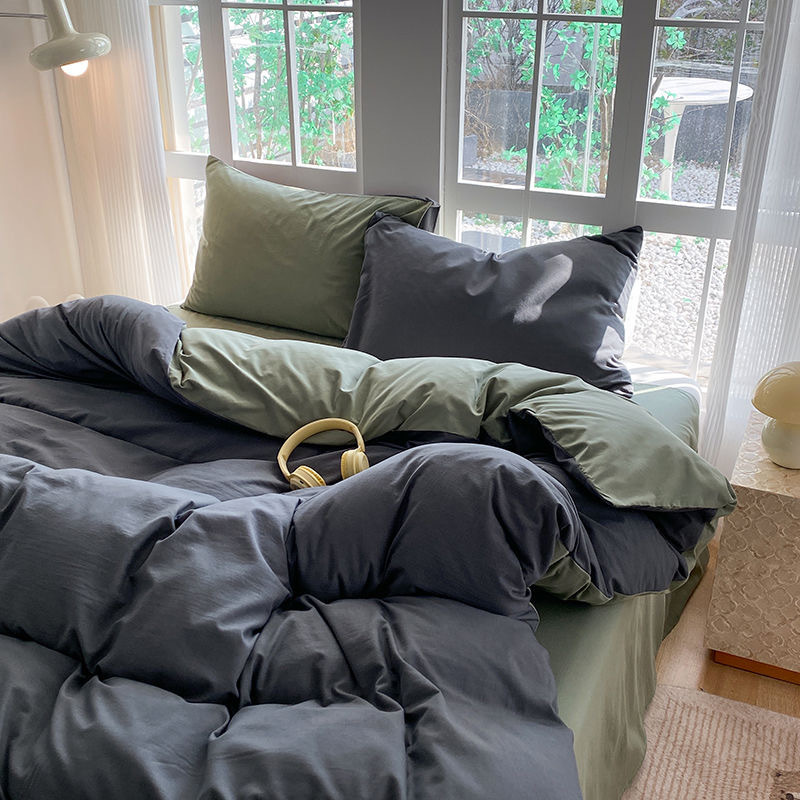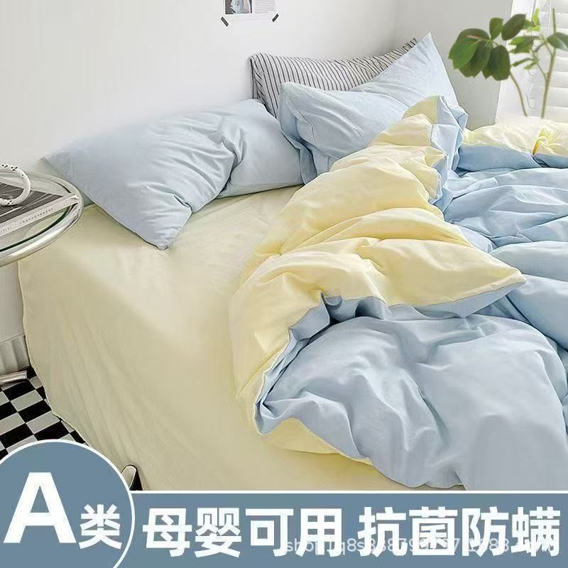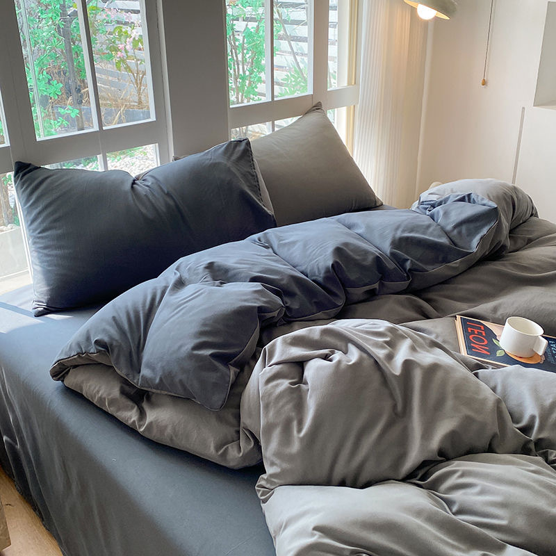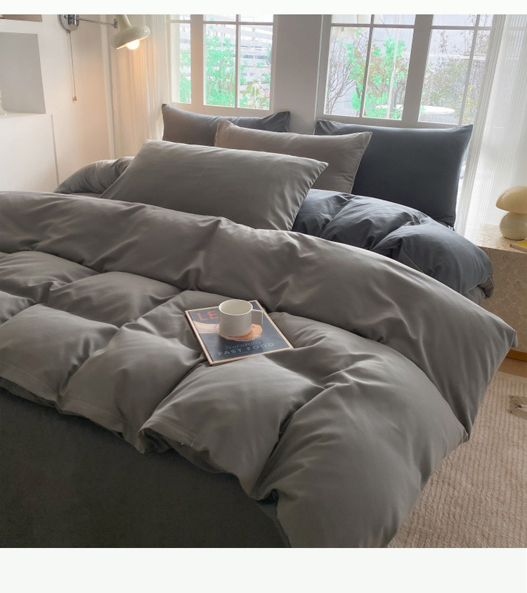 Комплект постельного белья в скандинавском стиле из стираного хлопка, приятного для кожи, зимний, из четырех предметов, пододеяльник, комплект из трех предметов для студенческого общежития, простыня на резинке