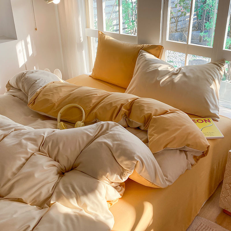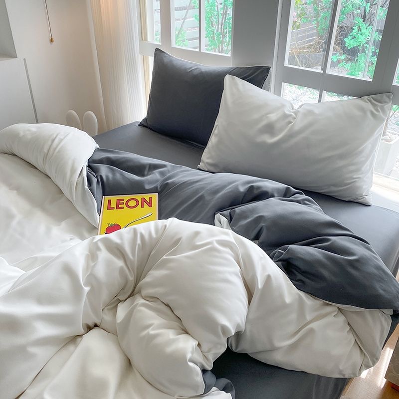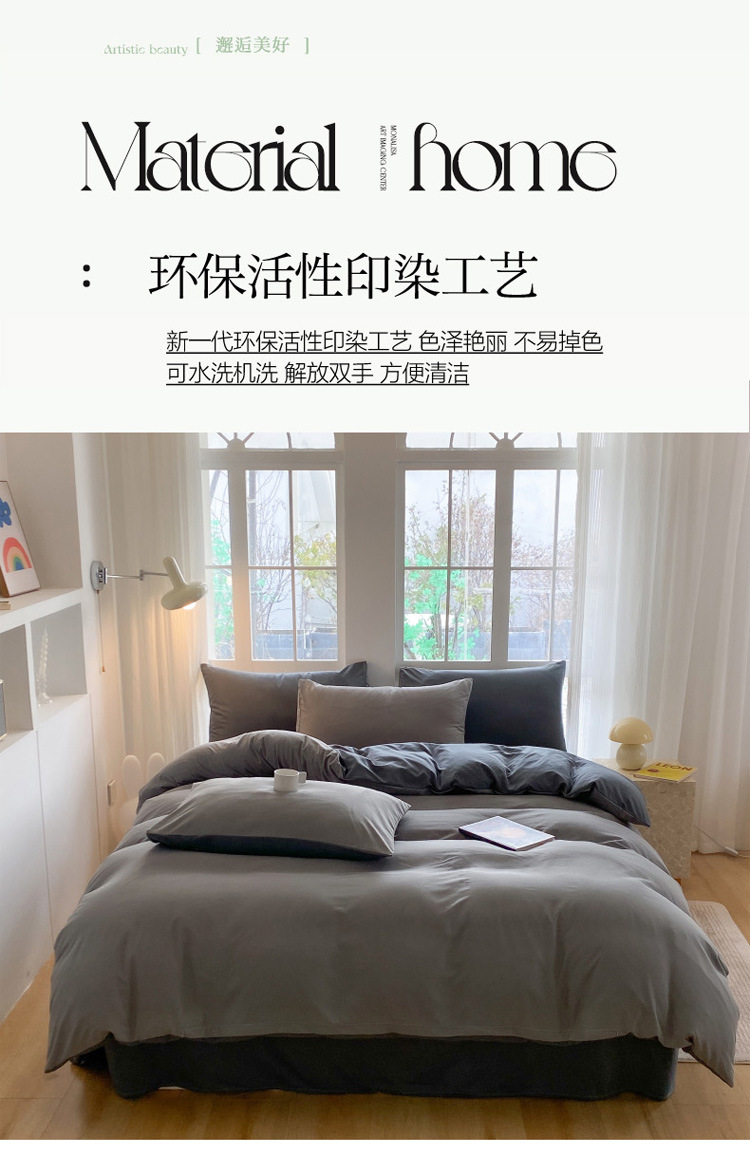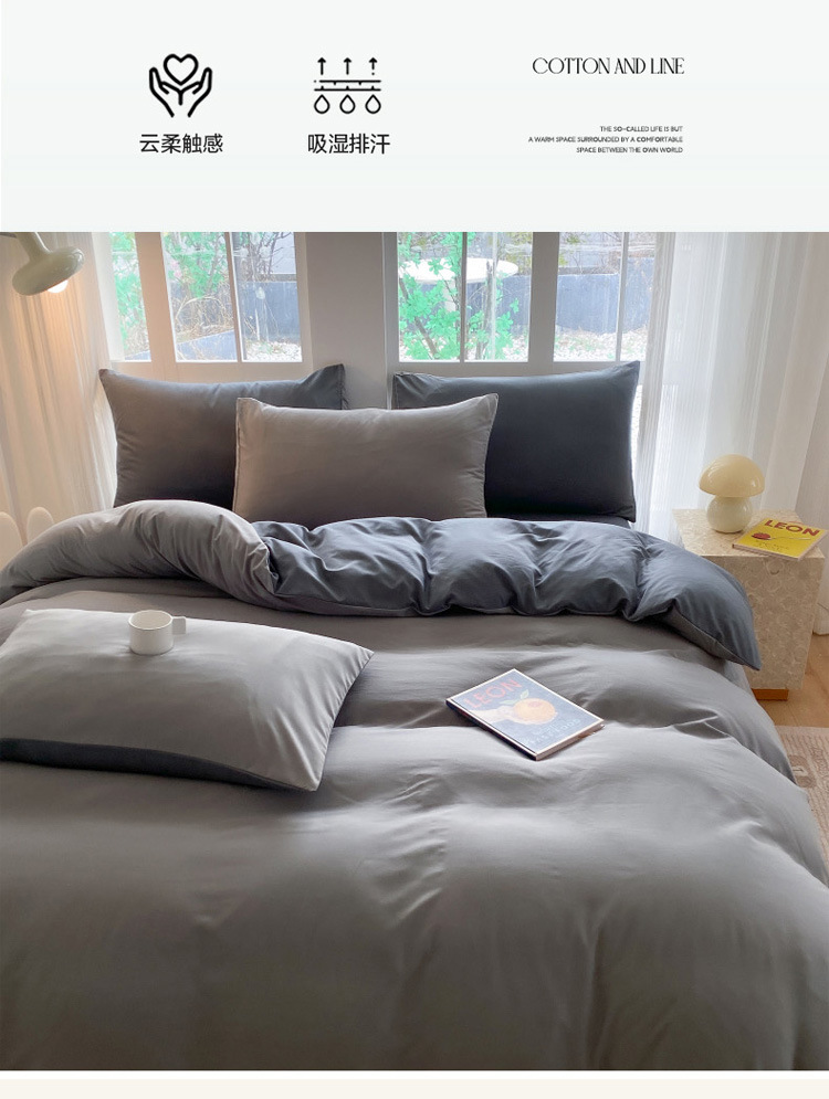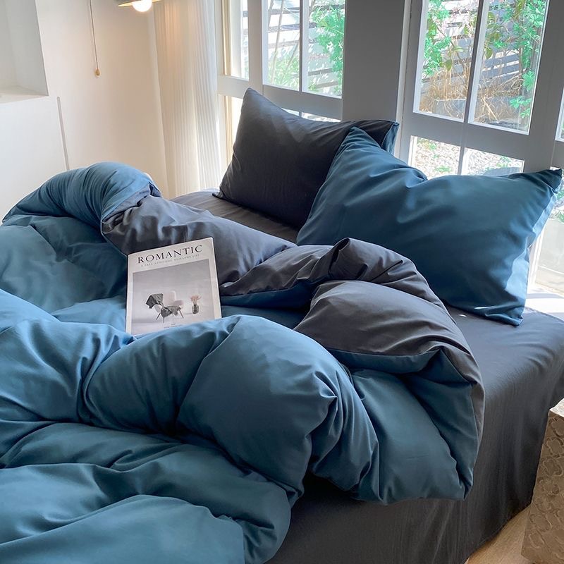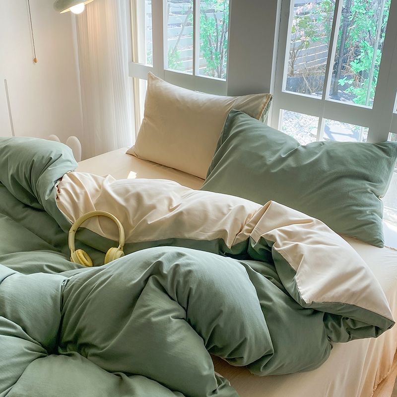 Комплект постельного белья в скандинавском стиле из стираного хлопка, приятного для кожи, зимний, из четырех предметов, пододеяльник, комплект из трех предметов для студенческого общежития, простыня на резинке