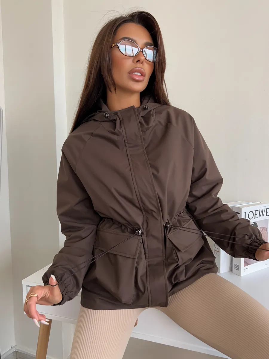 Европейская и американская трансграничная повседневная модная женская куртка с длинными рукавами и капюшоном на шнурке, водонепроницаемая куртка, свободная уличная одежда для альпинизма