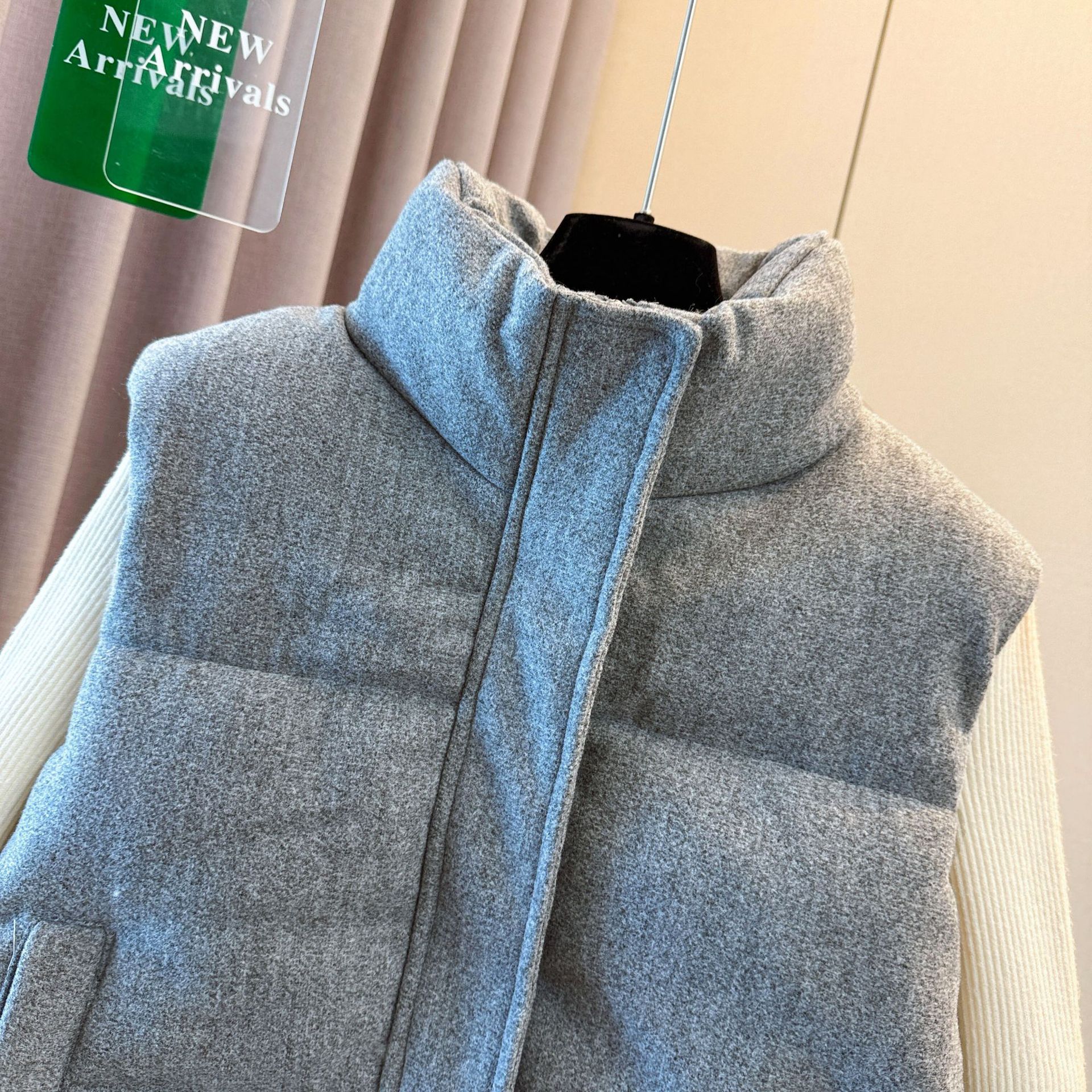 新款灰色毛呢高级感显瘦加厚羽绒棉马甲2025秋季时尚穿搭外穿背心