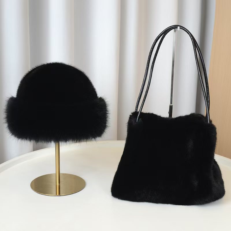 跨境新款仿水貂毛洋气时尚百搭女士单肩包蒙古帽子腋下包托特多件