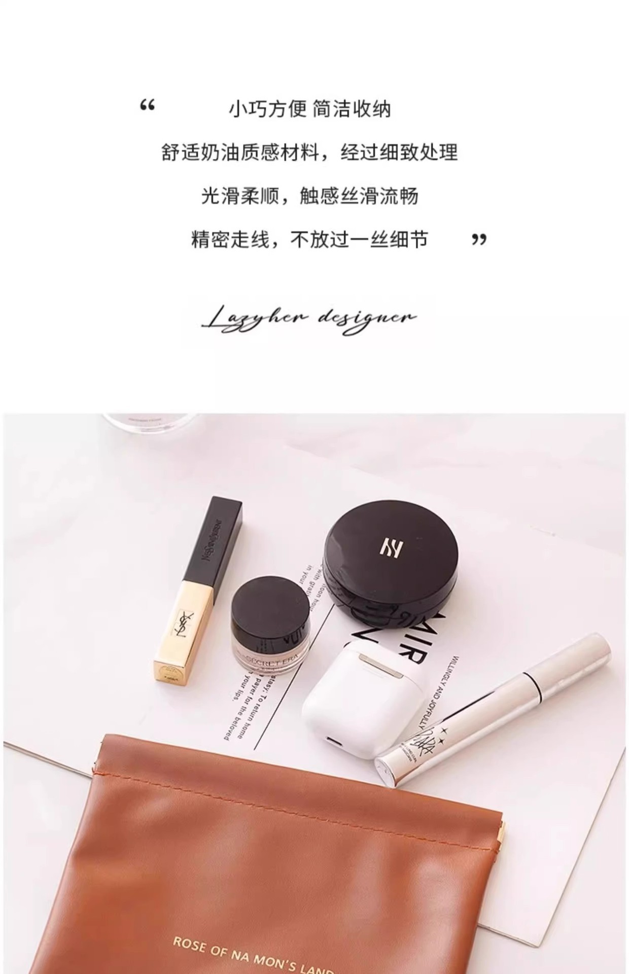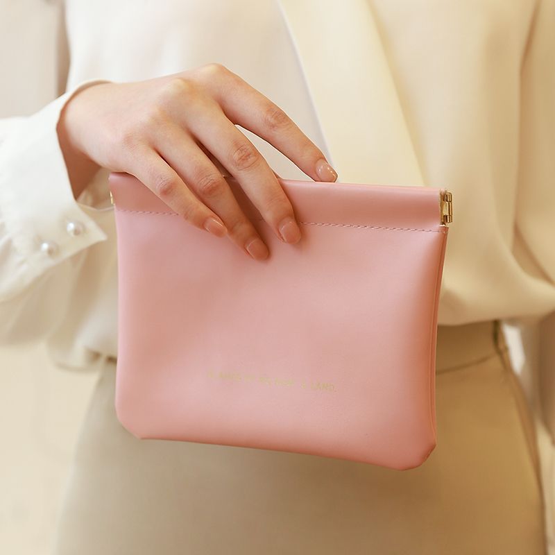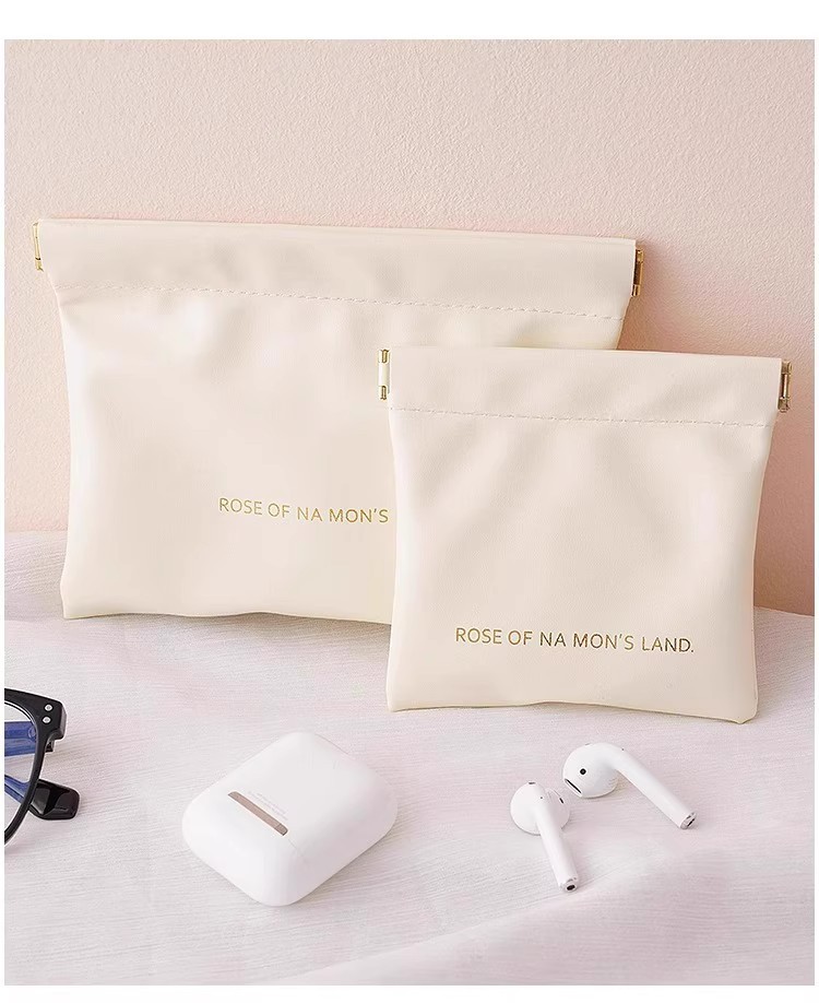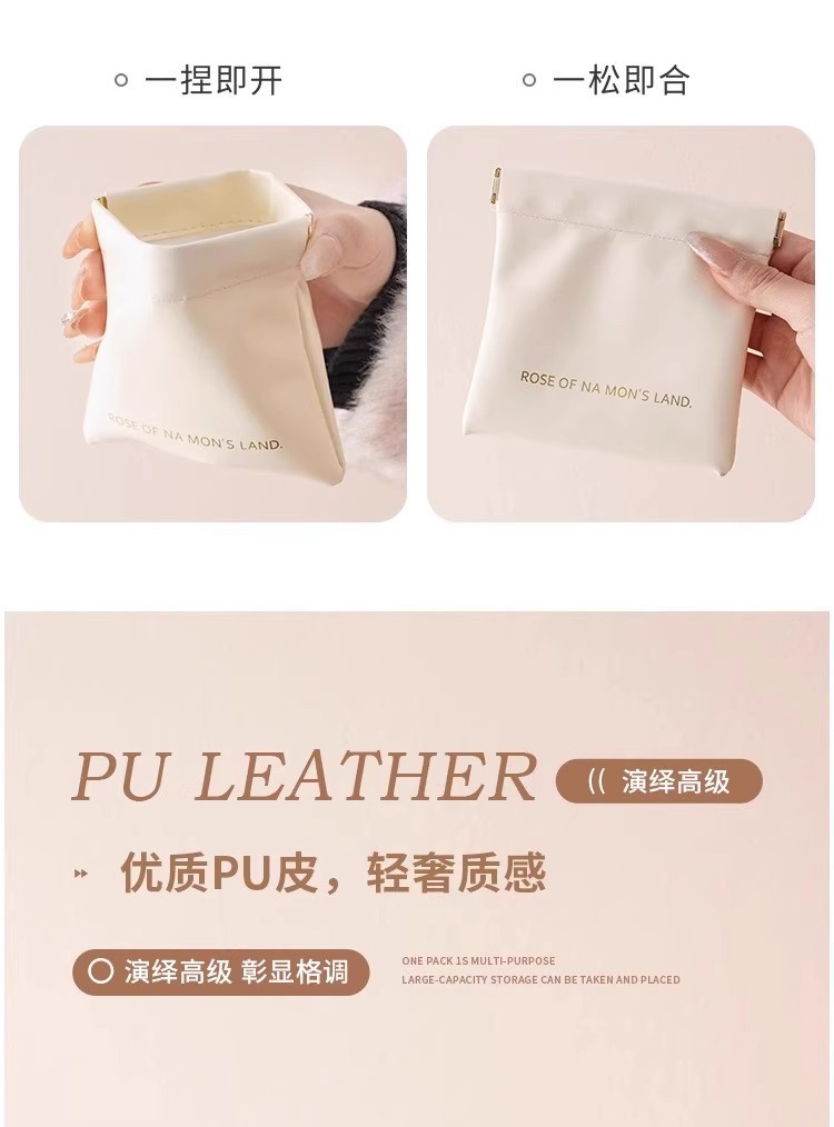 弹片收纳包自动闭合有线耳机收纳袋PU零钱包迷你便携式口红化妆包