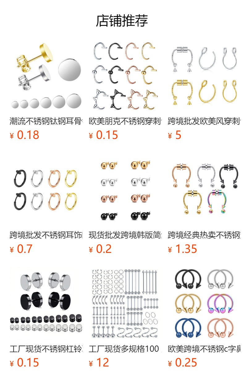 Европейская и американская трансграничная оптовая продажа, пирсинг из титановой стали, прямая штанга из нержавеющей стали, шариковый пирсинг, губа, ноготь, бровь, ноготь, язык, ноготь