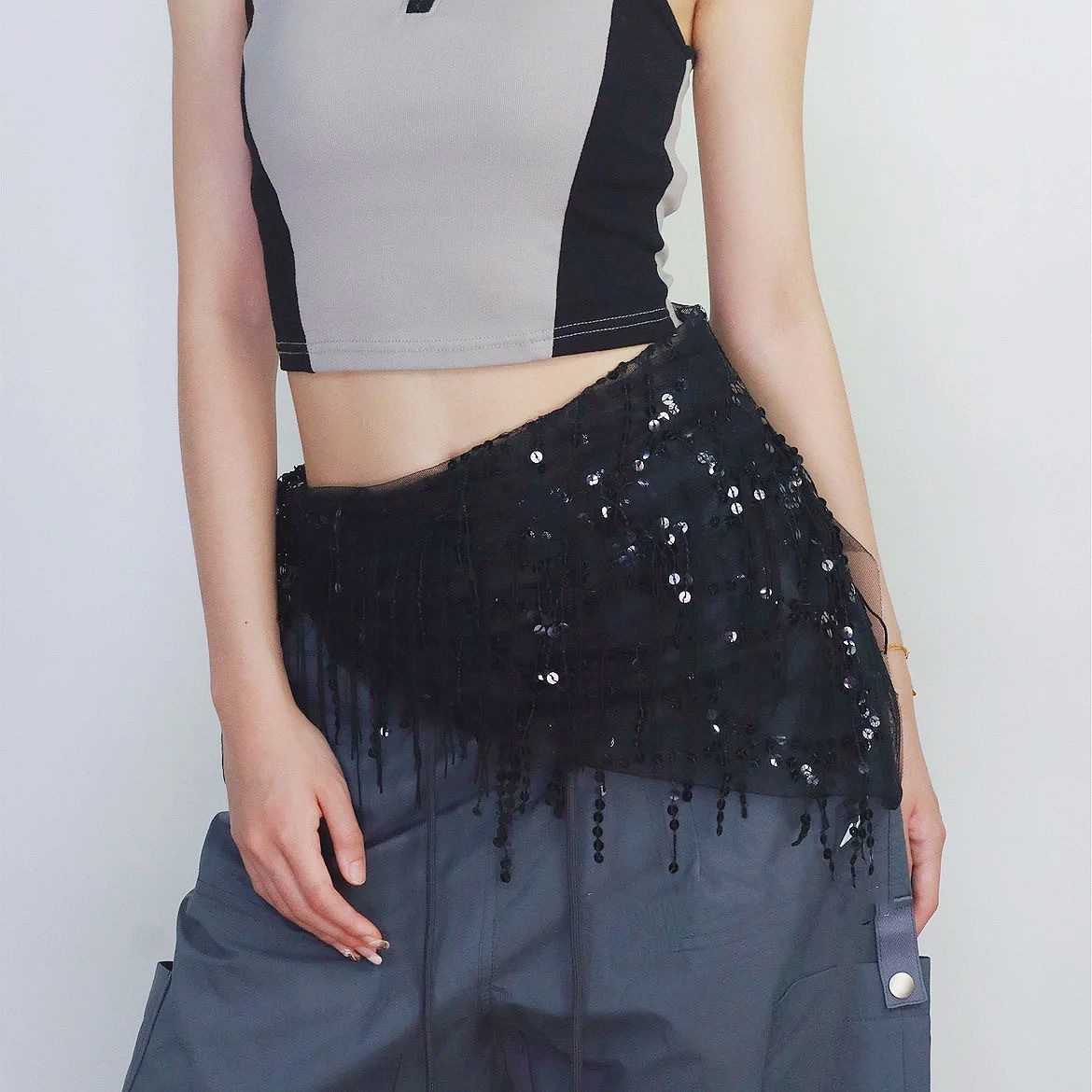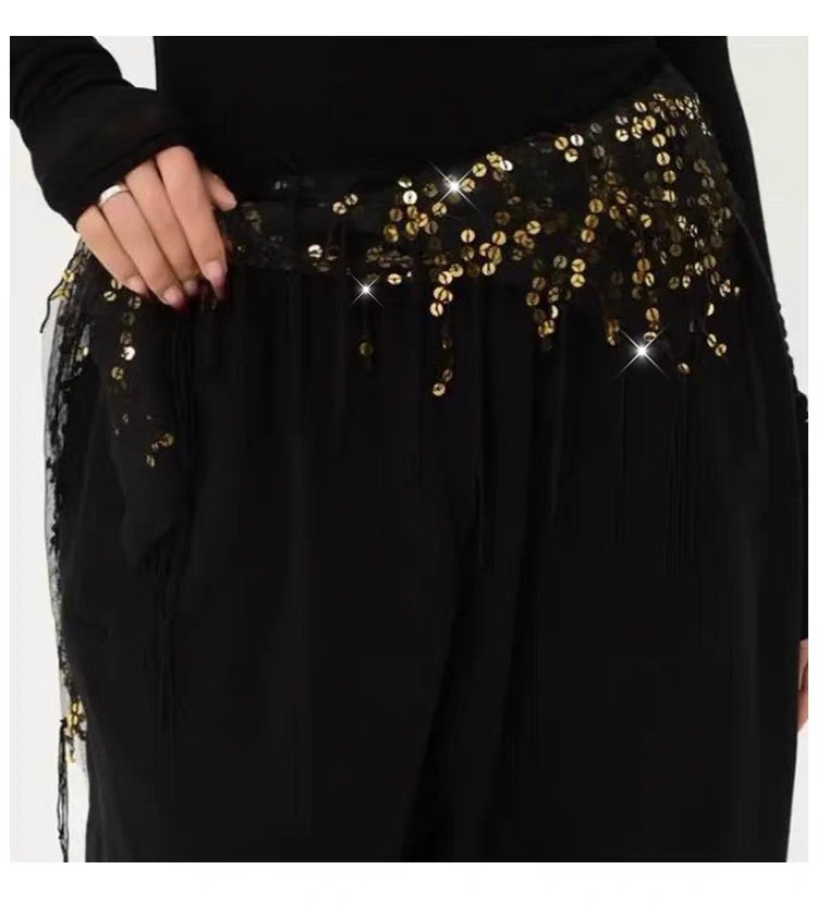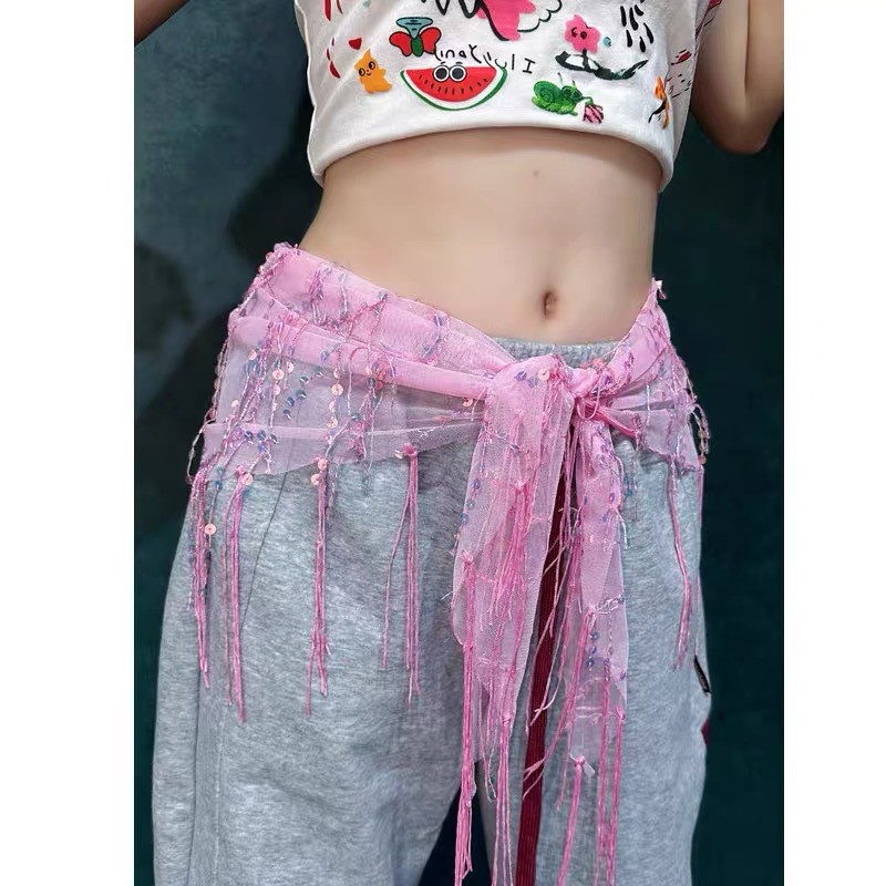 Новый модный интернет-знаменитость, джазовый танец, хип-шарф, уличный танец, поясная цепочка, хип-шарф, аксессуар, треугольный шарф с блестками, пояс с кисточками, универсальный поясной шарф