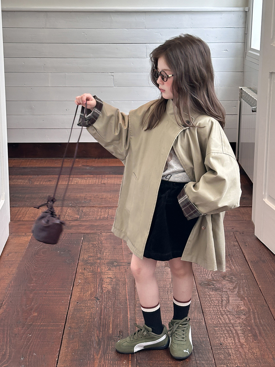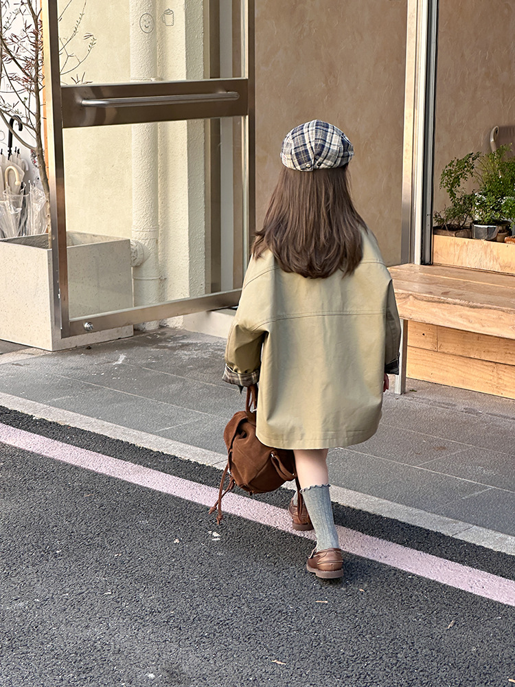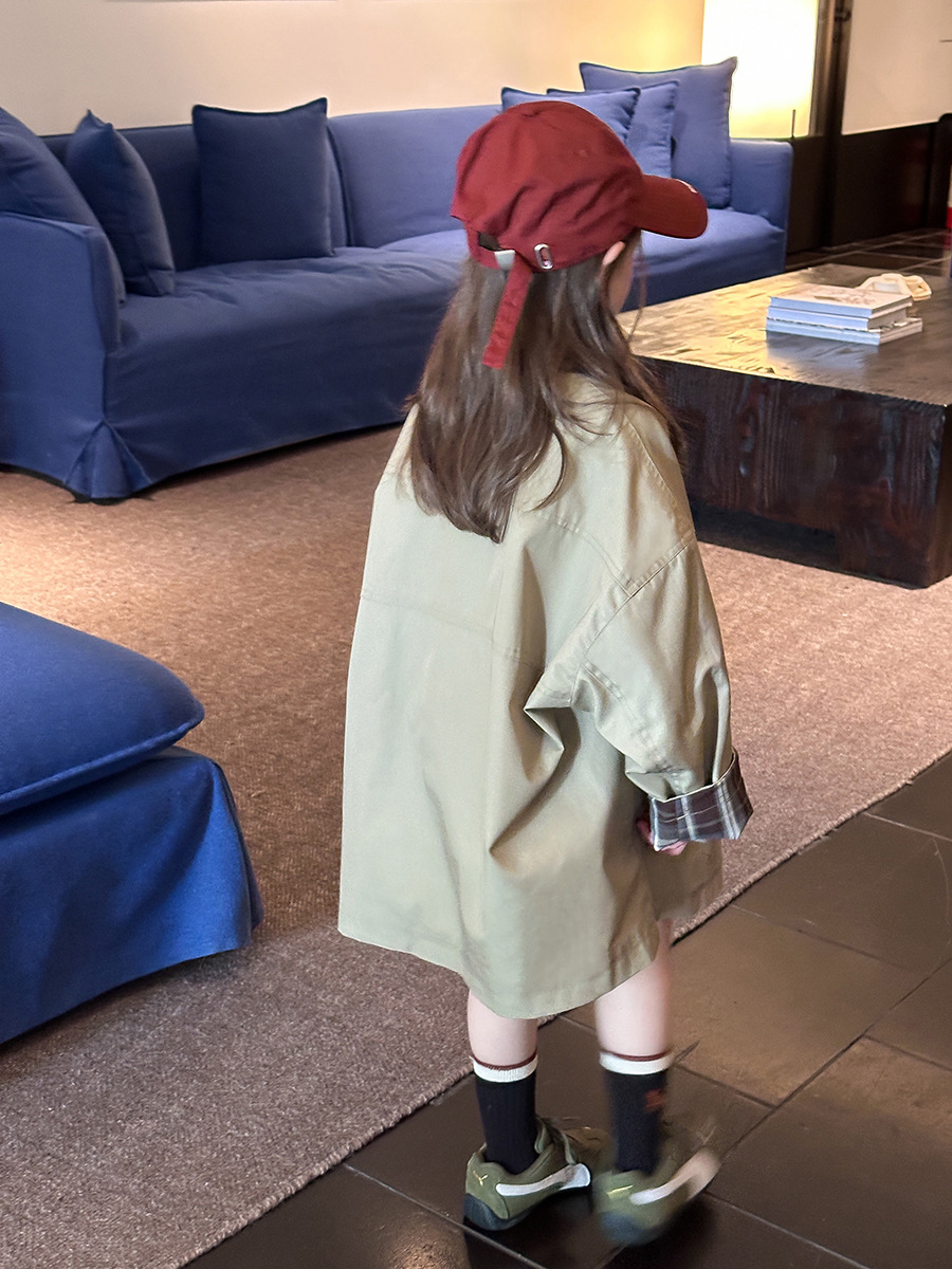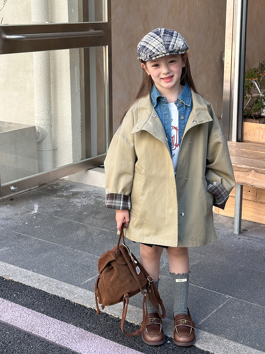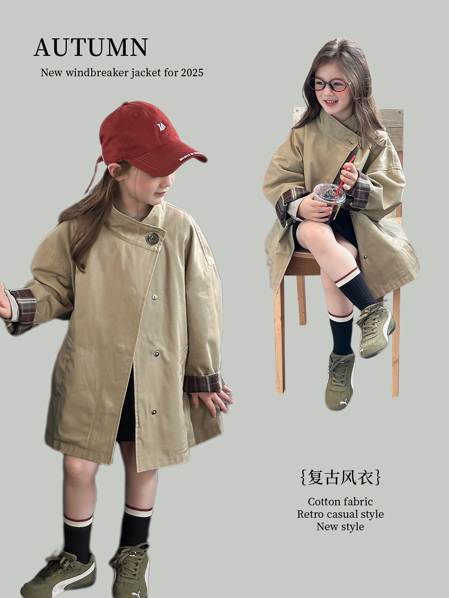 Детское пальто средней длины в корейском стиле Aimobeibei для девочек, высококачественный тренч из высокоплотного чесаного хлопка.