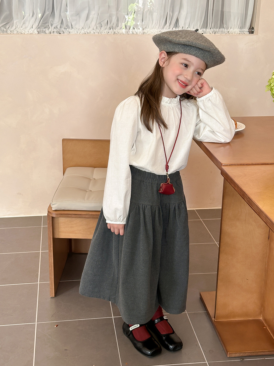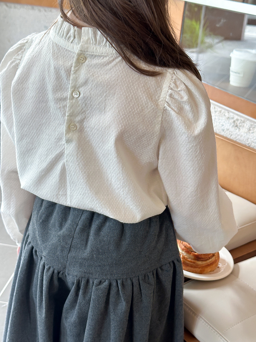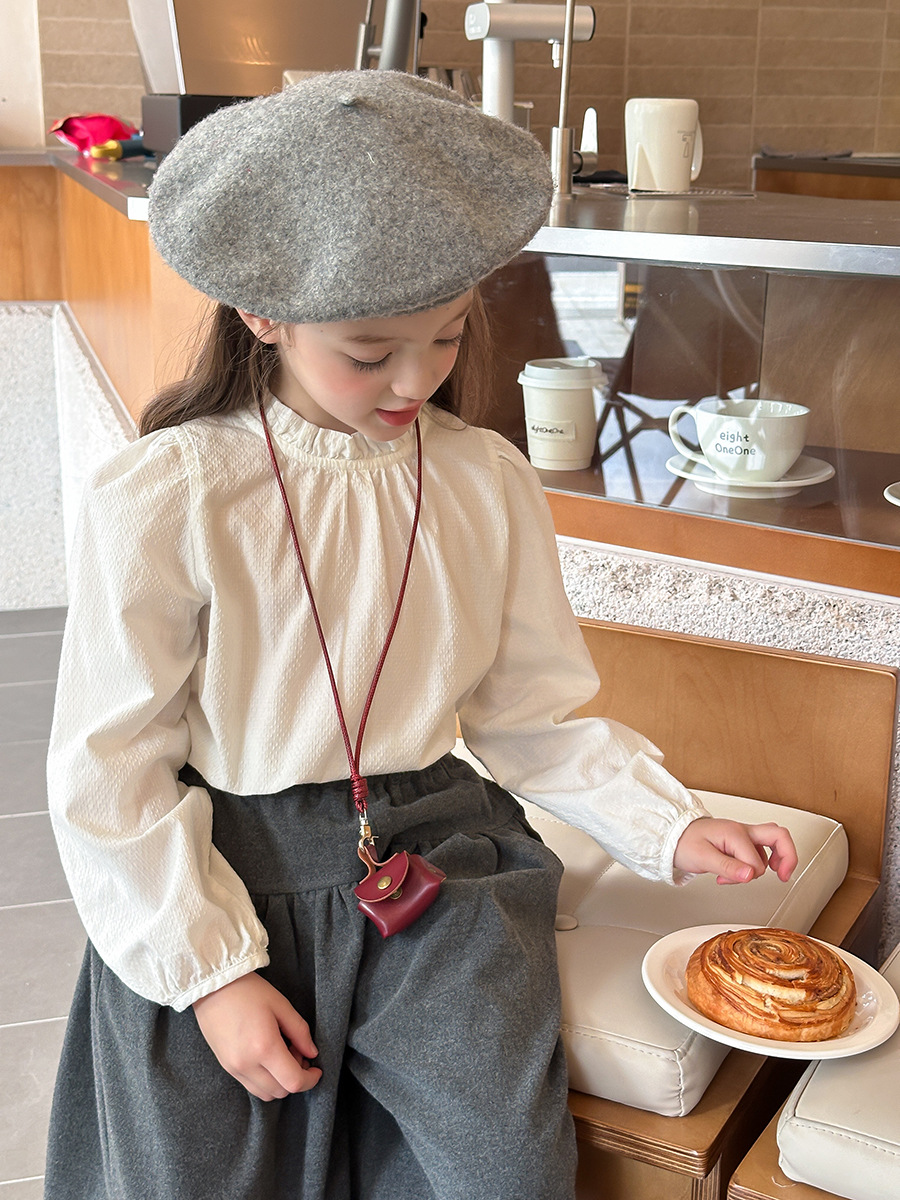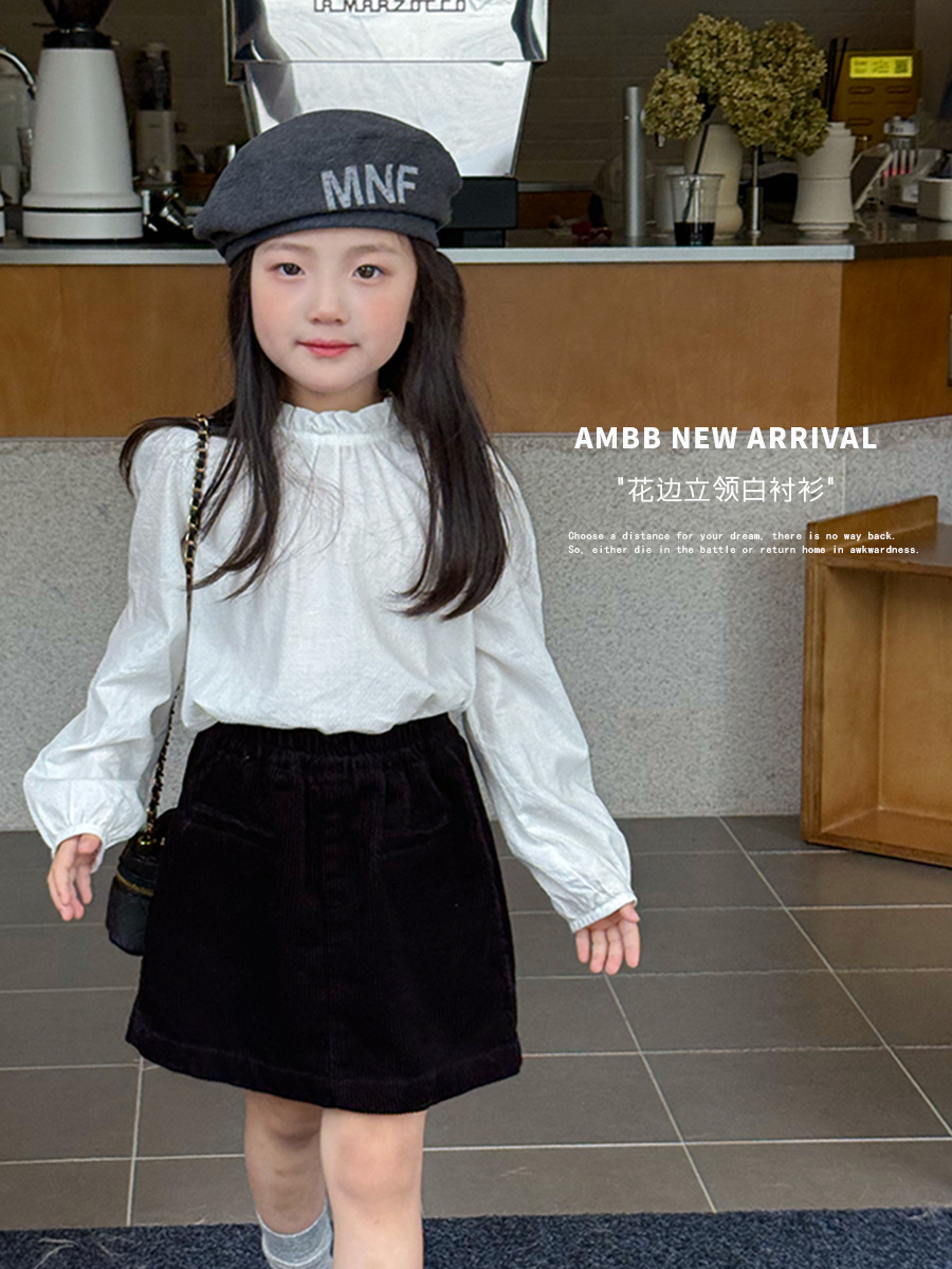 艾摩贝贝女童秋季洋气内搭白色衬衣儿童气质花边立领提花衬衫上衣