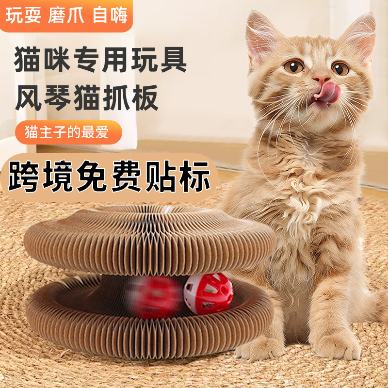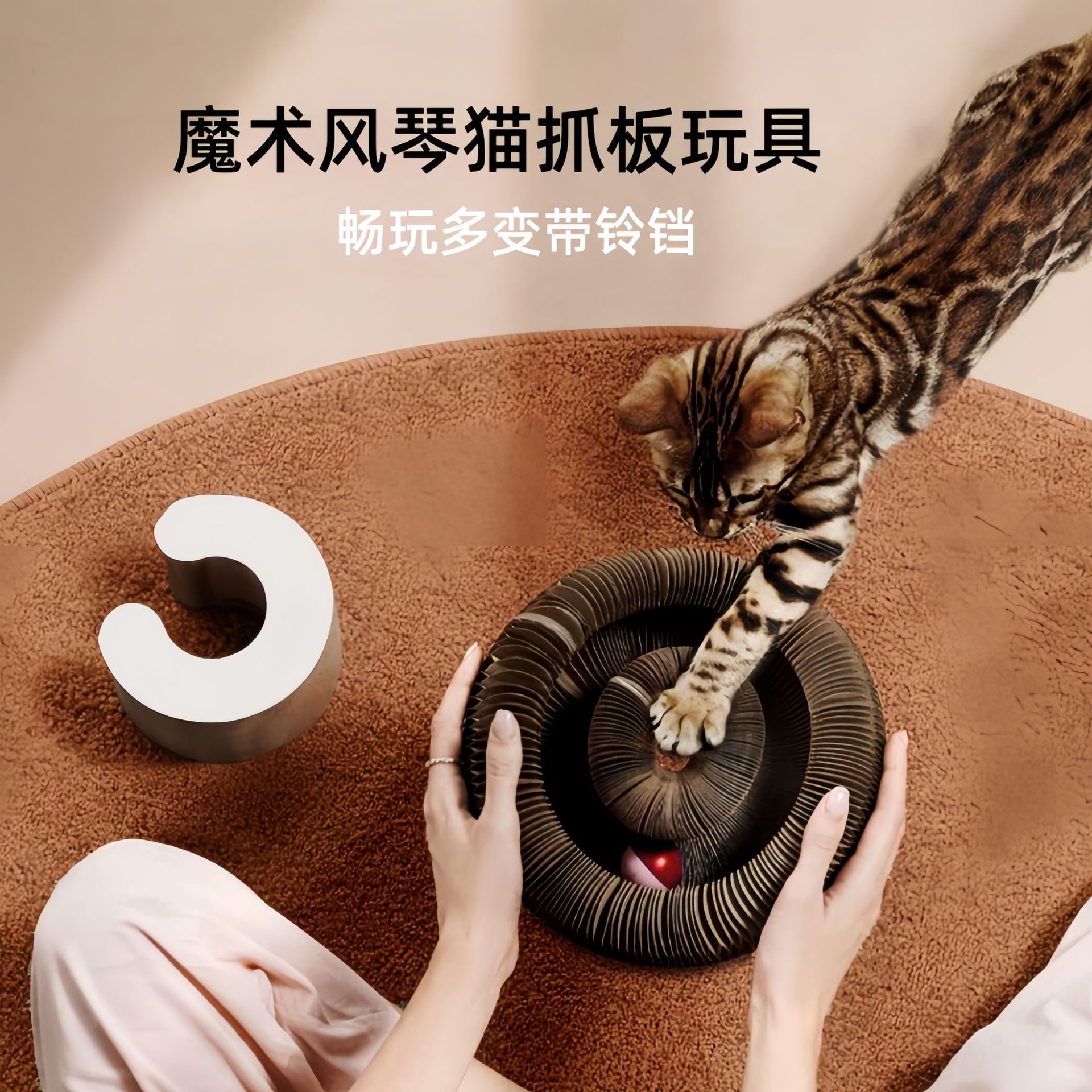 魔术风琴猫抓板猫玩具自嗨解闷带铃铛瓦楞纸耐抓可折叠变换猫玩具