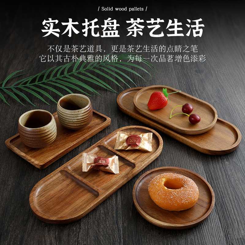 Деревянный поднос с тарелкой для закусок, японский чайный поднос, плита, кипяченая твердая древесина, бытовая деревянная посуда, прямоугольная деревянная тарелка для торта