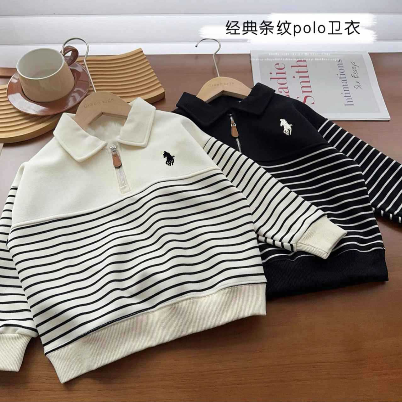 W02条纹拉链衫白; W02条纹拉链衫黑