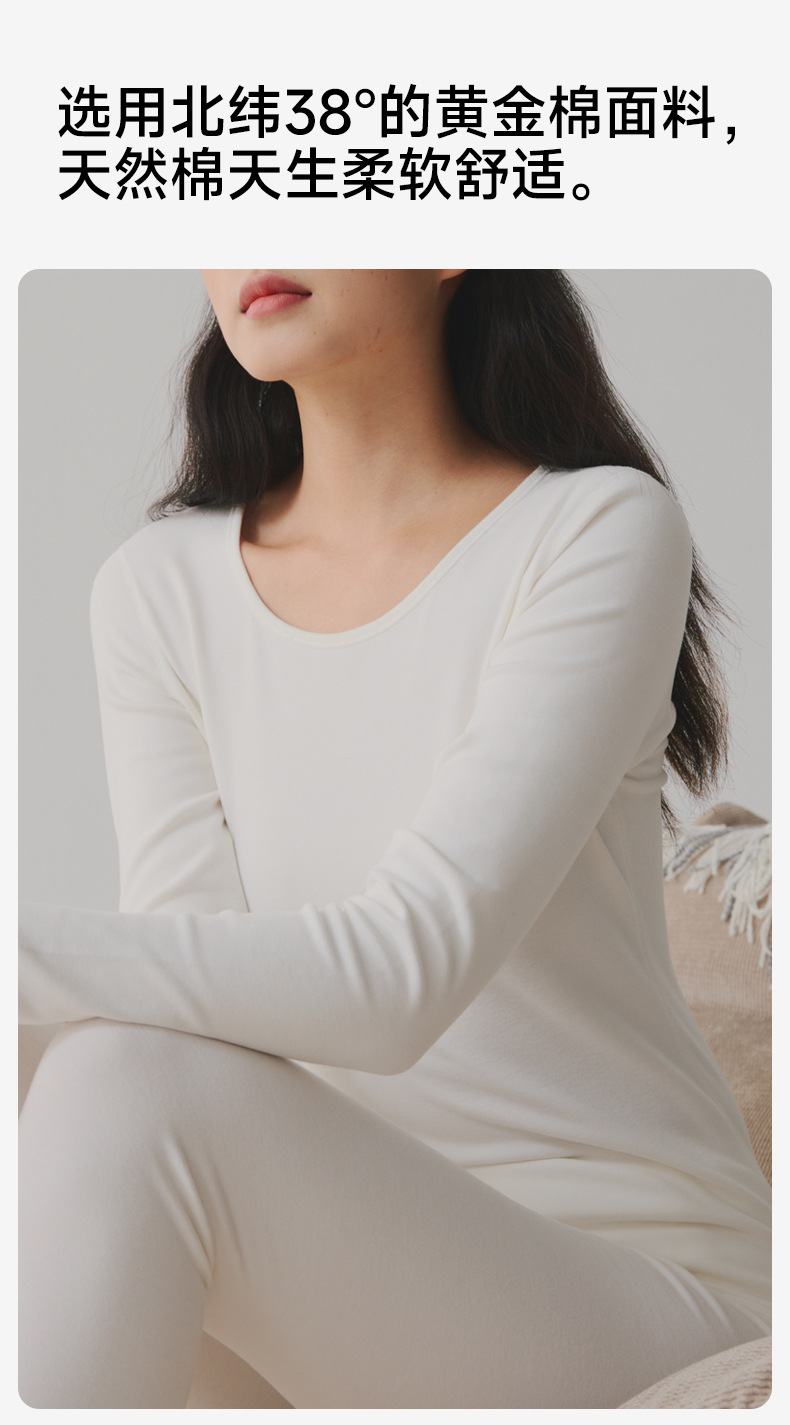 Новый комплект термобелья для женщин, 100% хлопок, утолщенный 280 г, круглый вырез, двусторонняя начесная ткань класса А, осенний комплект базового слоя (топ и брюки).