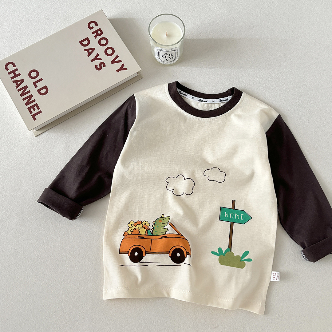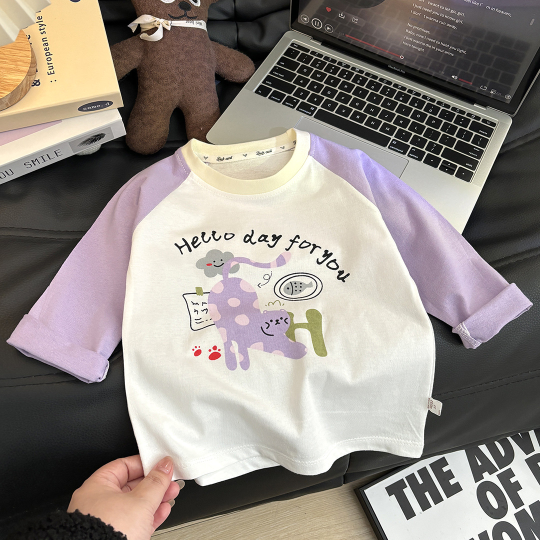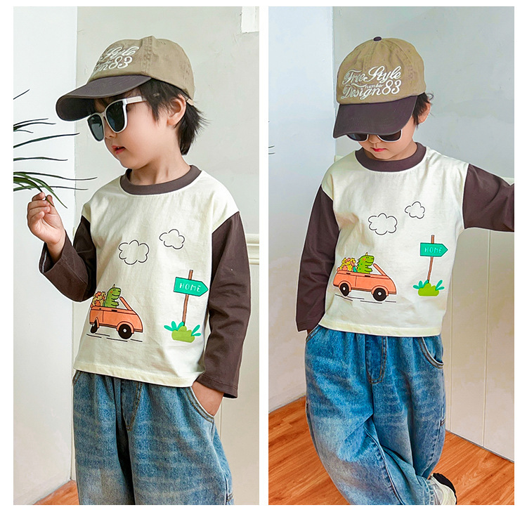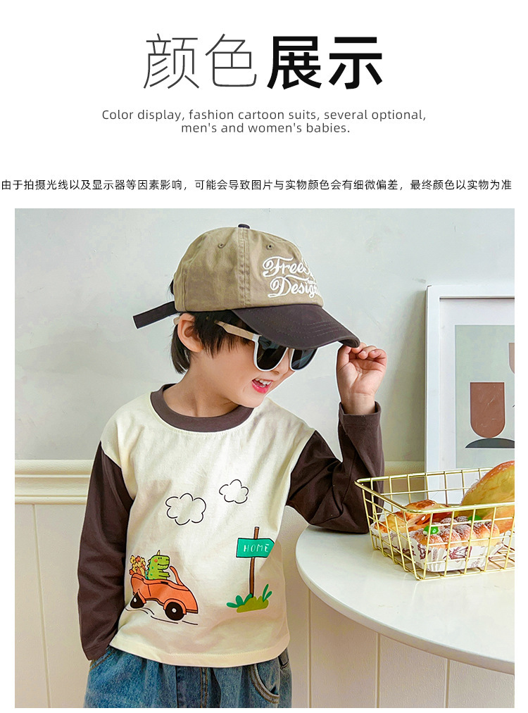 新款长袖单件儿童t恤纯棉棉男童上衣女宝a类纯棉衣服卡通潮童