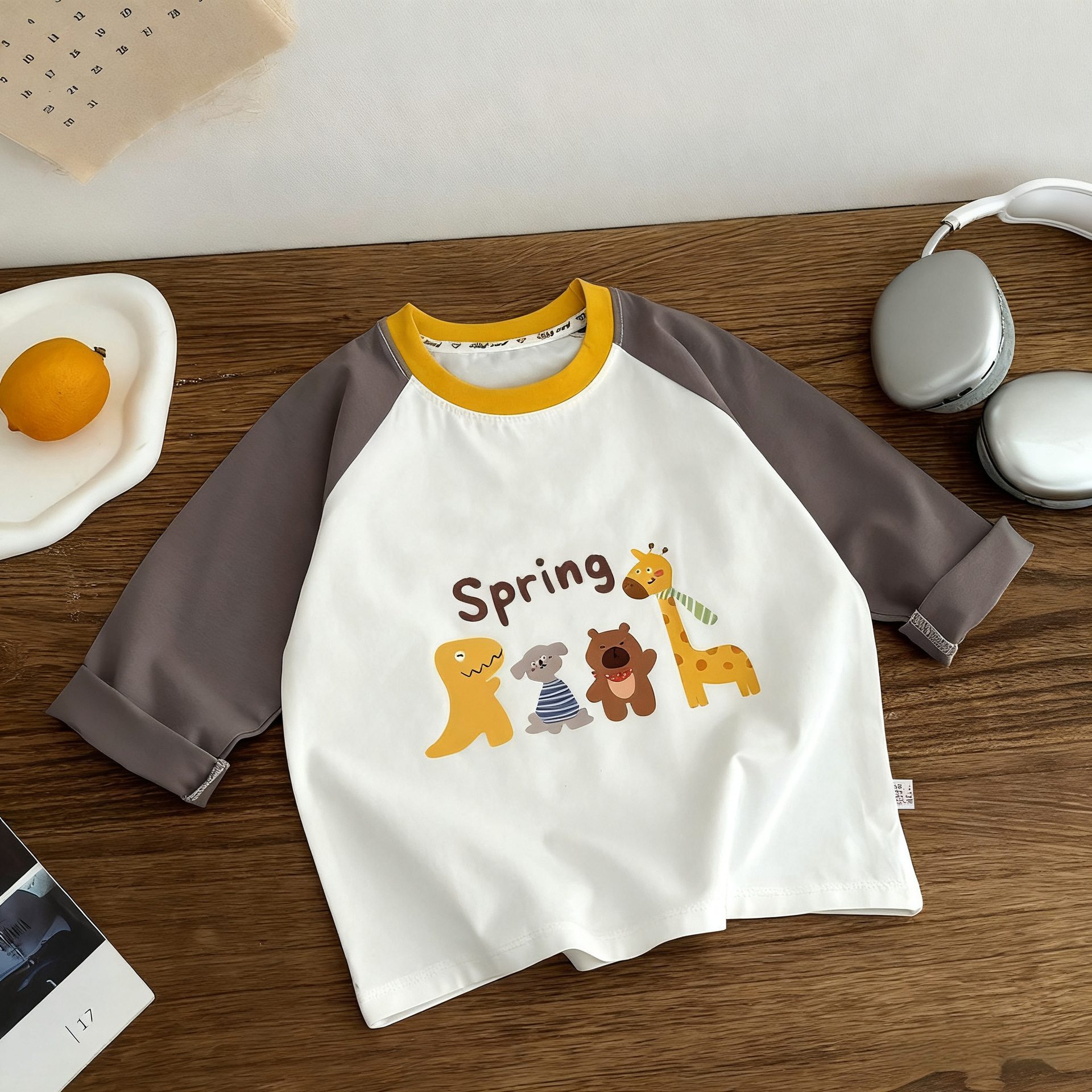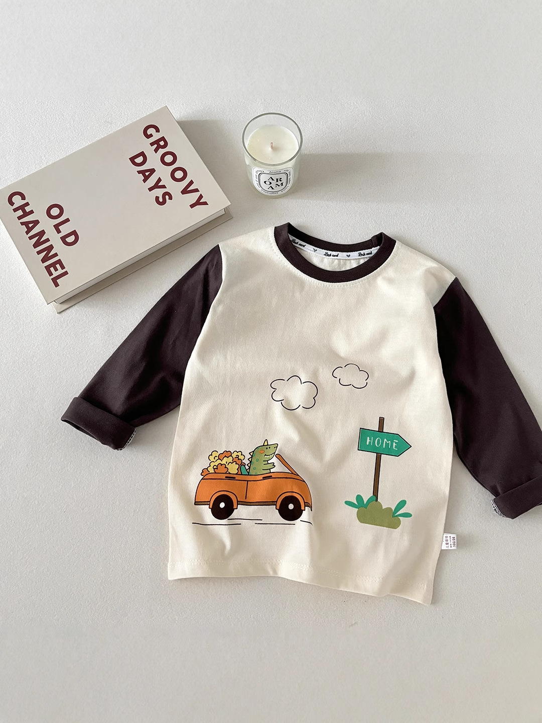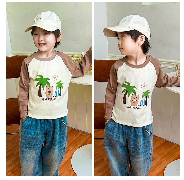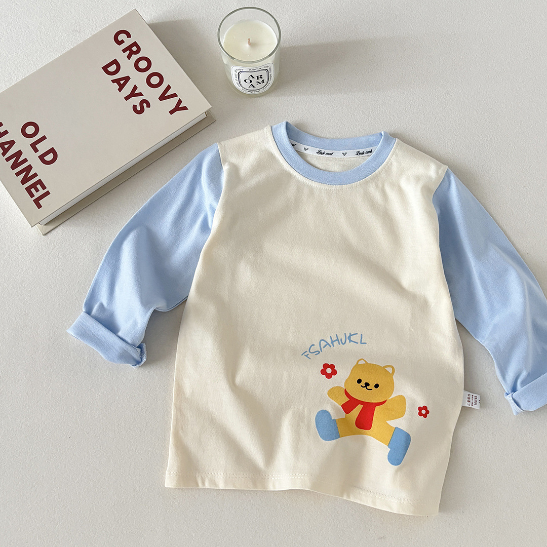 新款长袖单件儿童t恤纯棉棉男童上衣女宝a类纯棉衣服卡通潮童