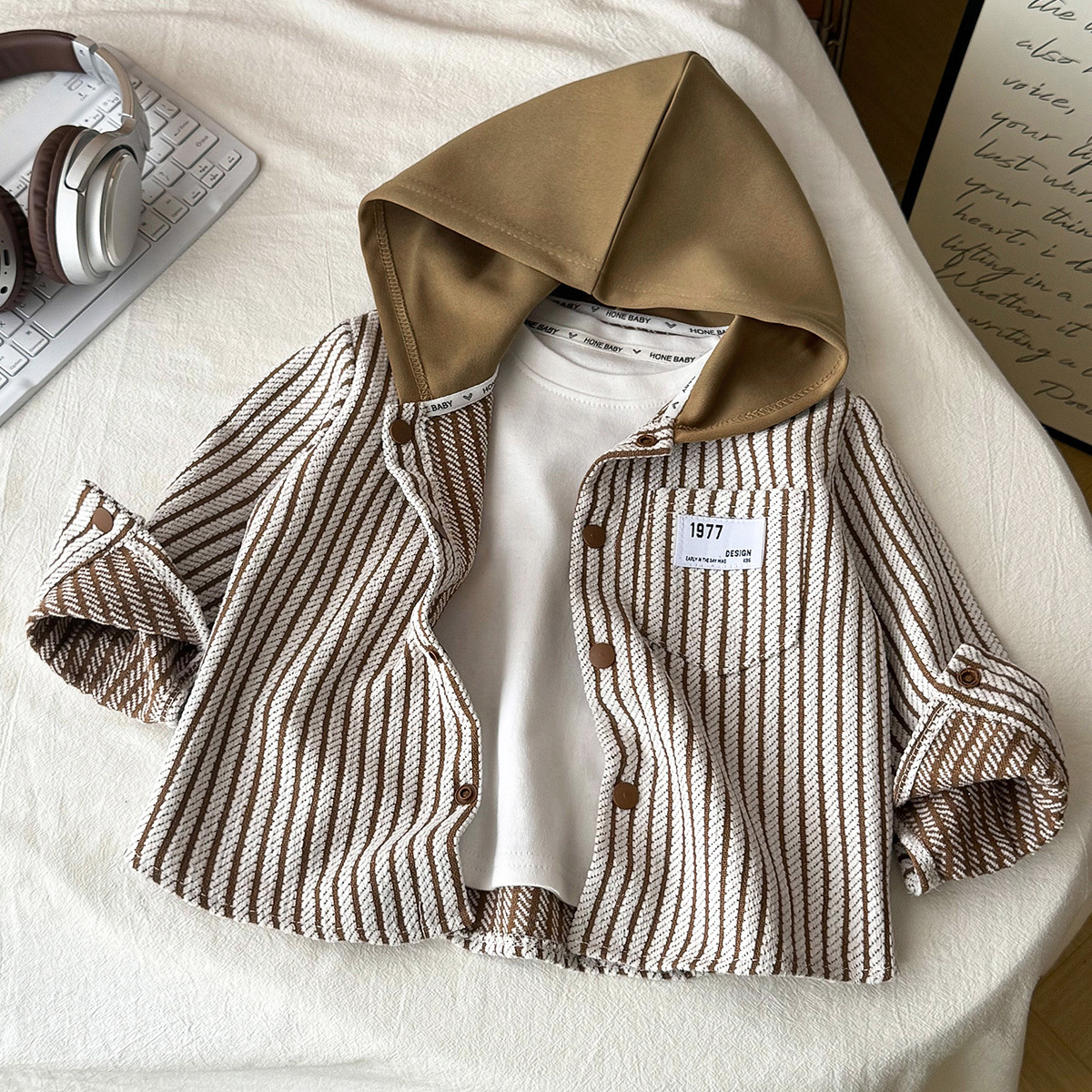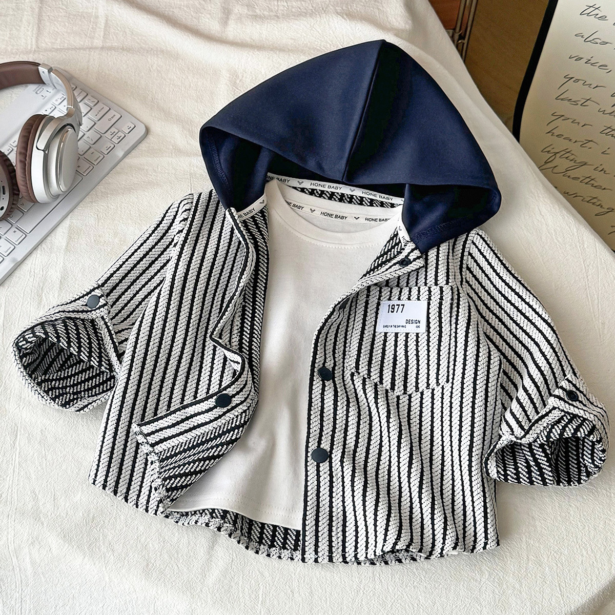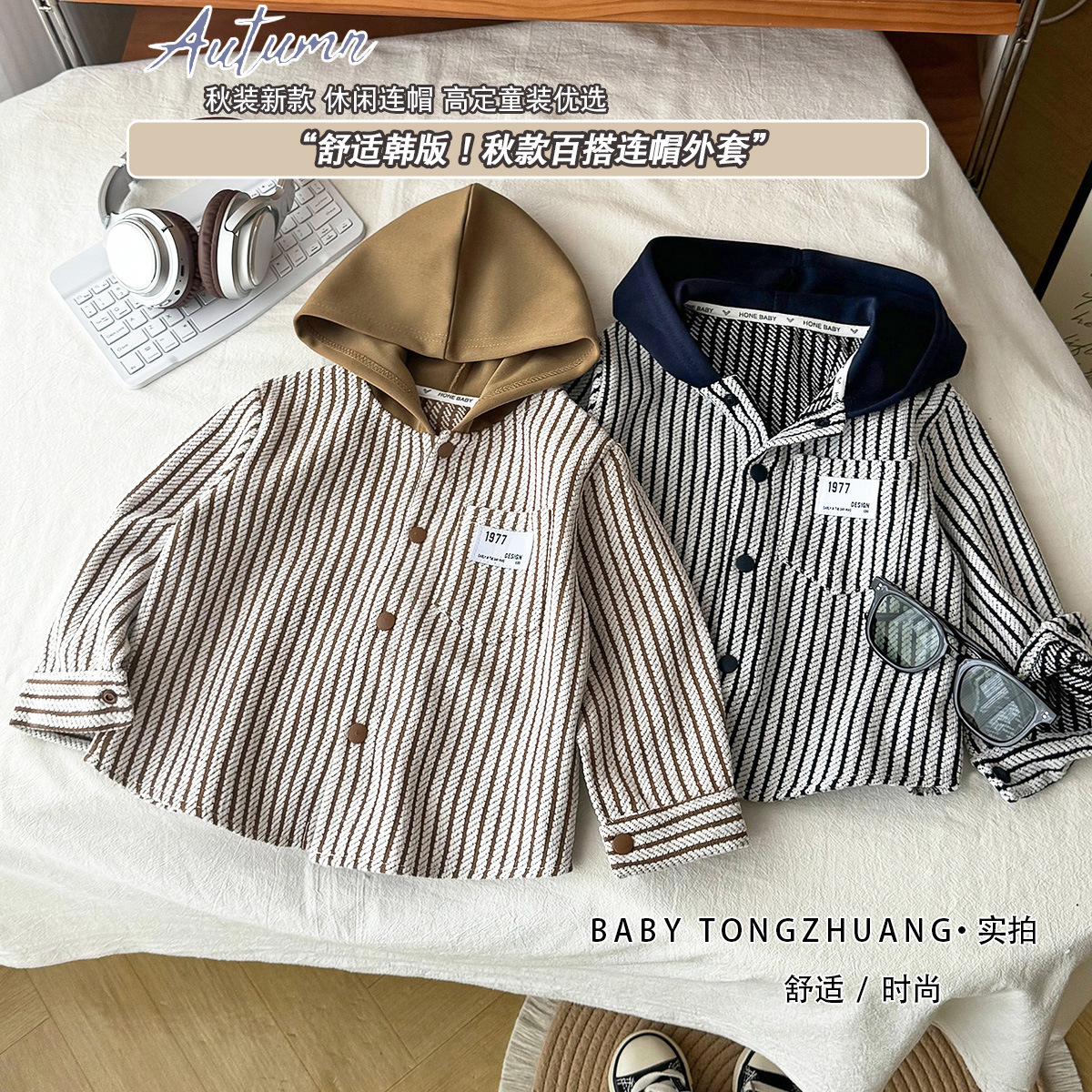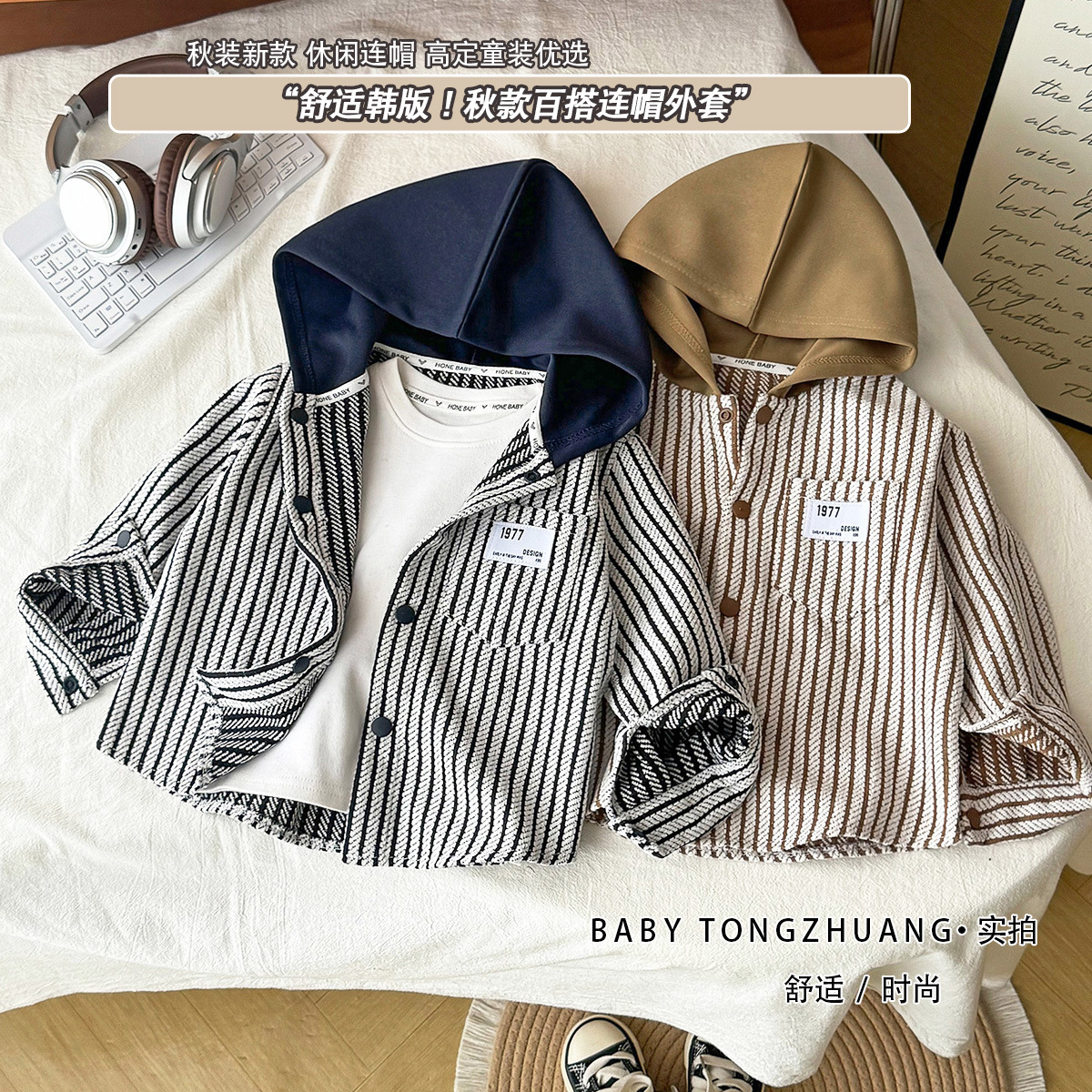 Новая универсальная детская осенняя толстовка в корейском стиле 2026 года с мультяшным граффити, пэчворком и полосками, имитирующая двухслойную футболку