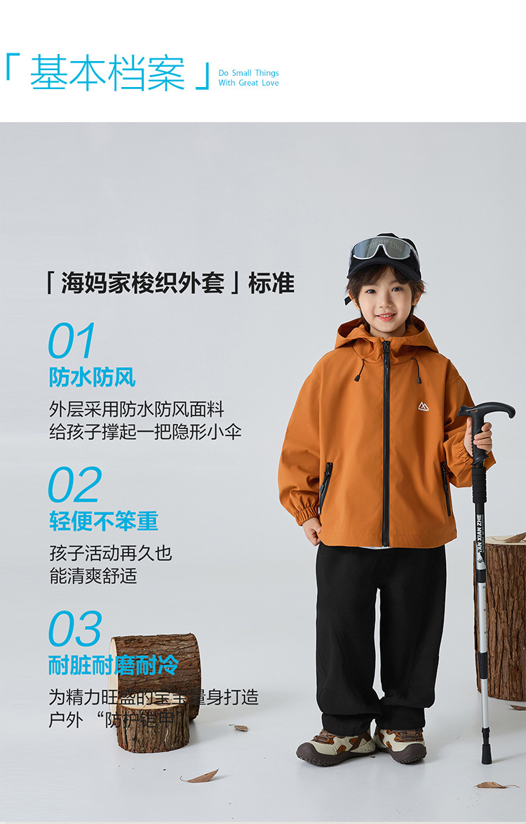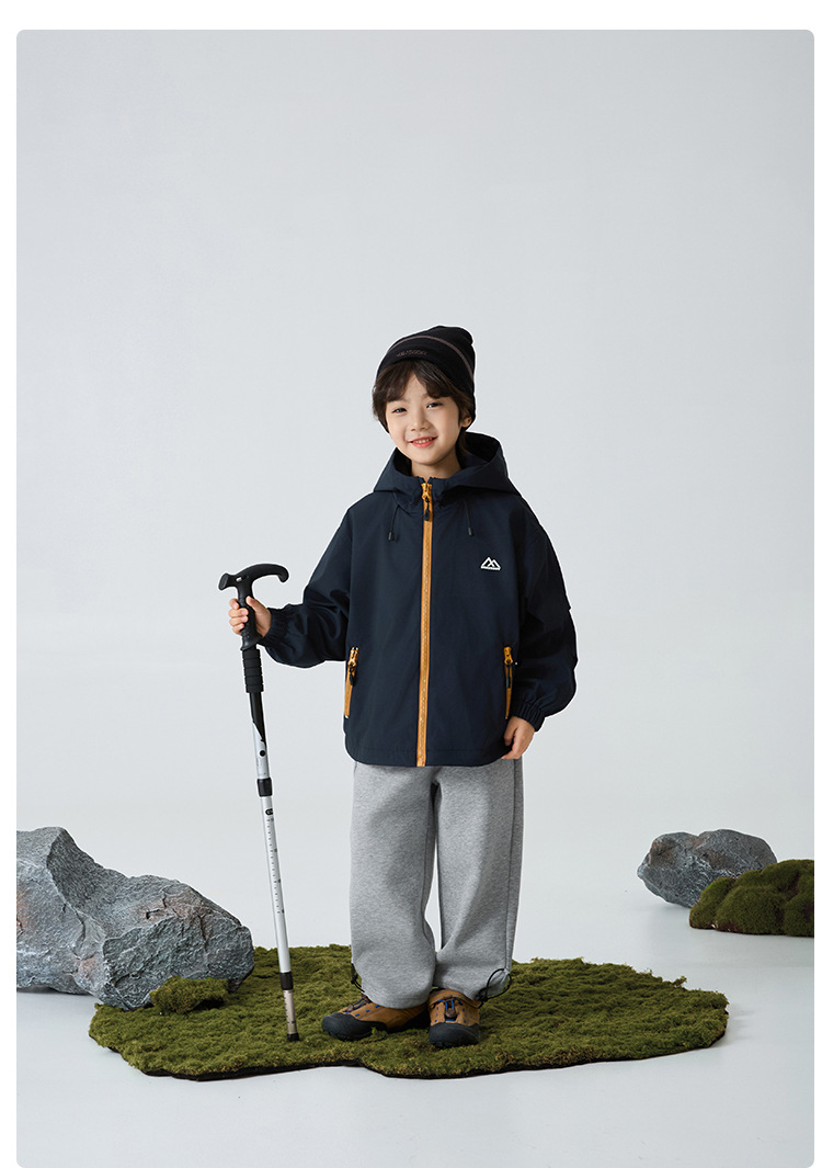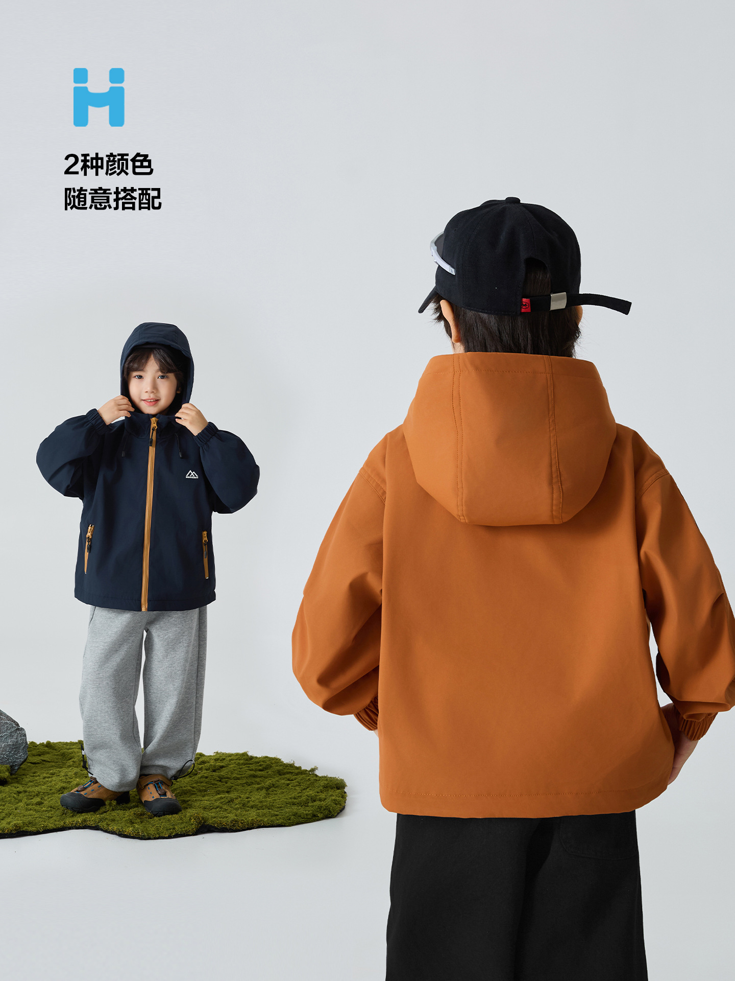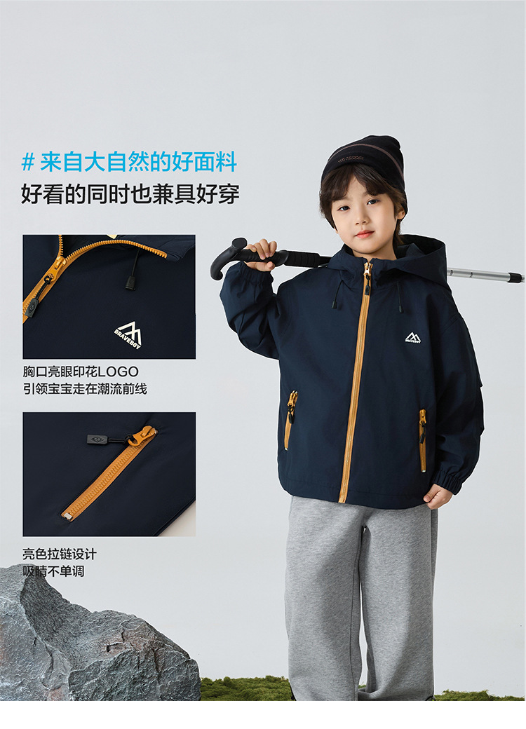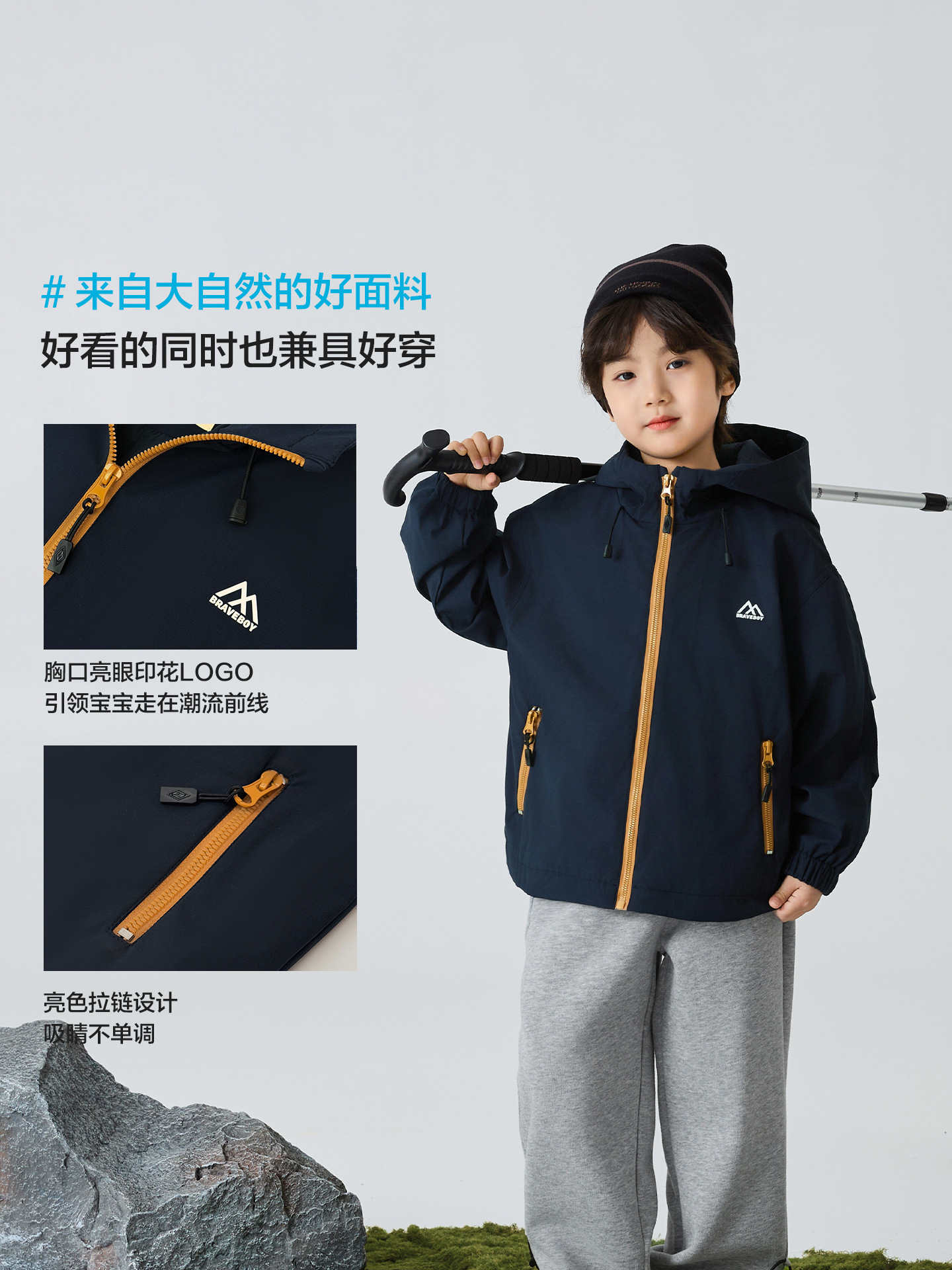 海妈家童装2025春秋新款男童秋转三防连帽外套冲锋衣儿童户外衣服