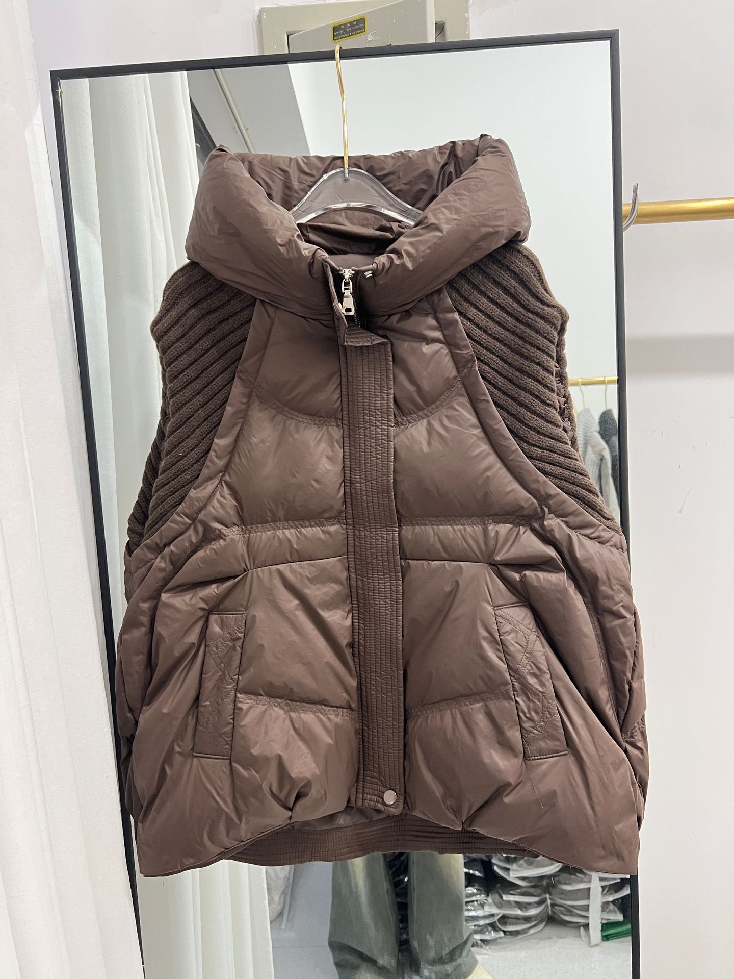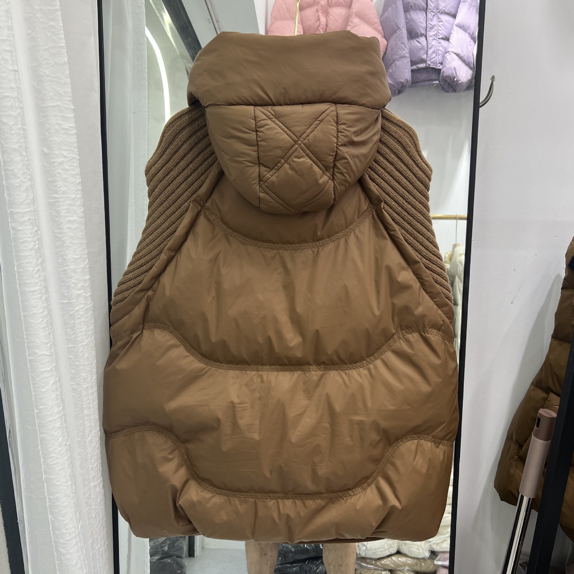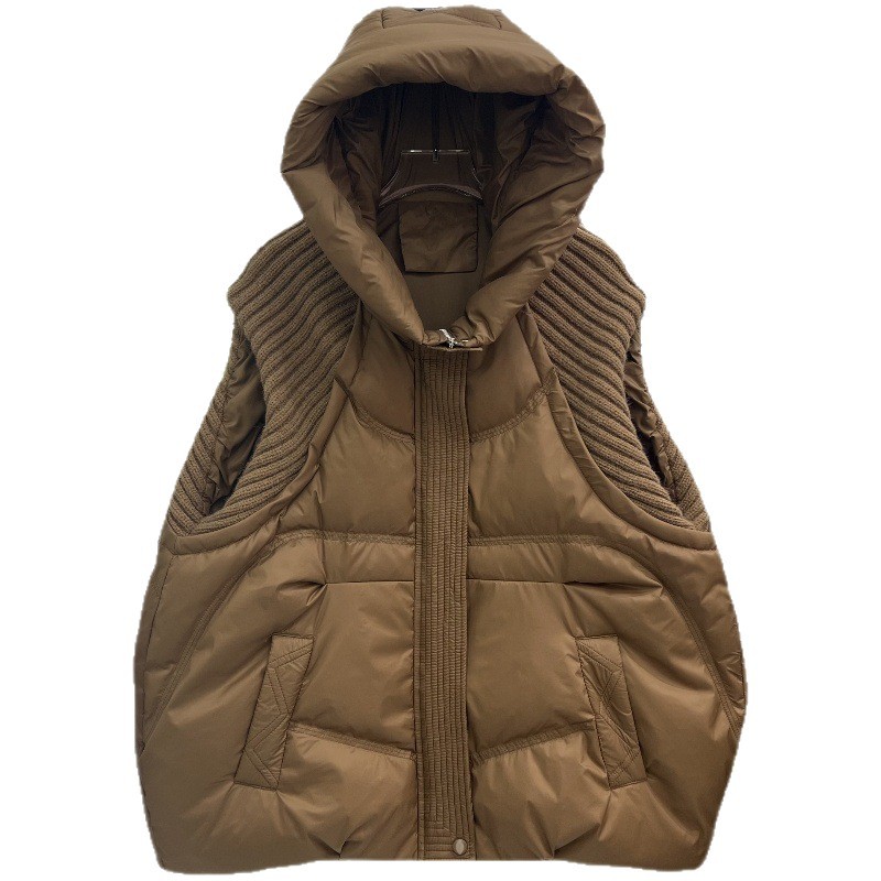 Новый осенне-зимний пуховик, женский жилет, короткий утолщенный вязаный шерстяной жилет с капюшоном, модная куртка в корейском стиле с белым утиным пухом