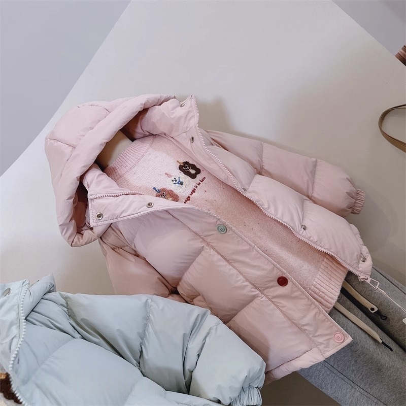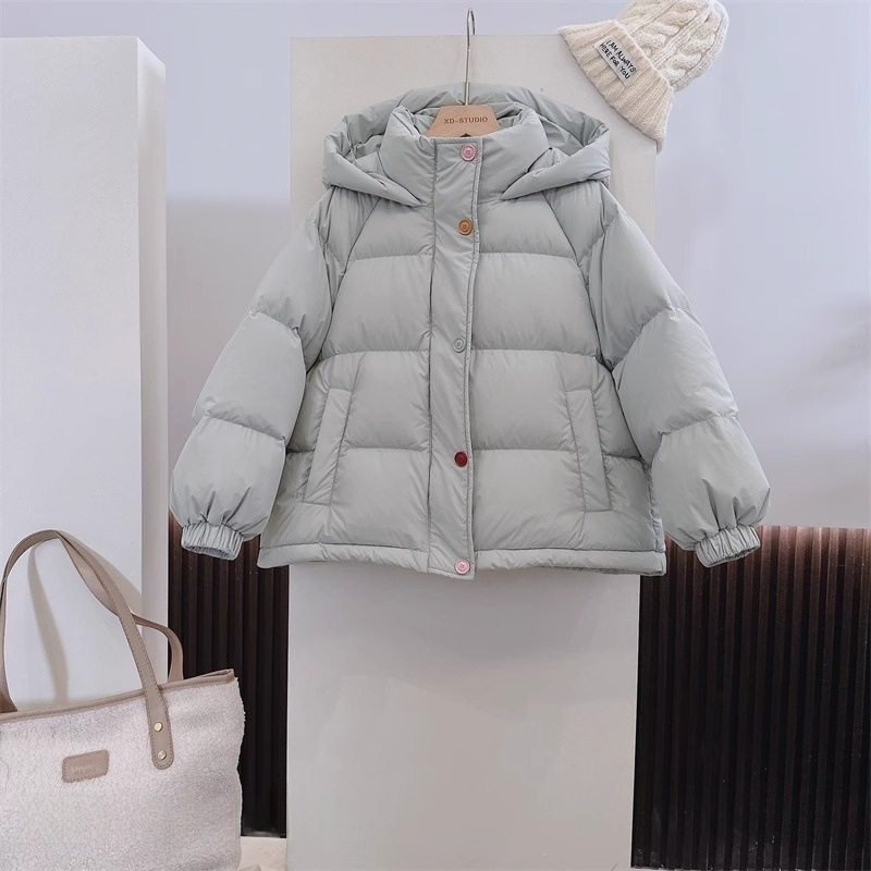 秋冬季新品女童中大童韩版2025时尚连帽彩色纽扣宽松保暖羽绒棉服