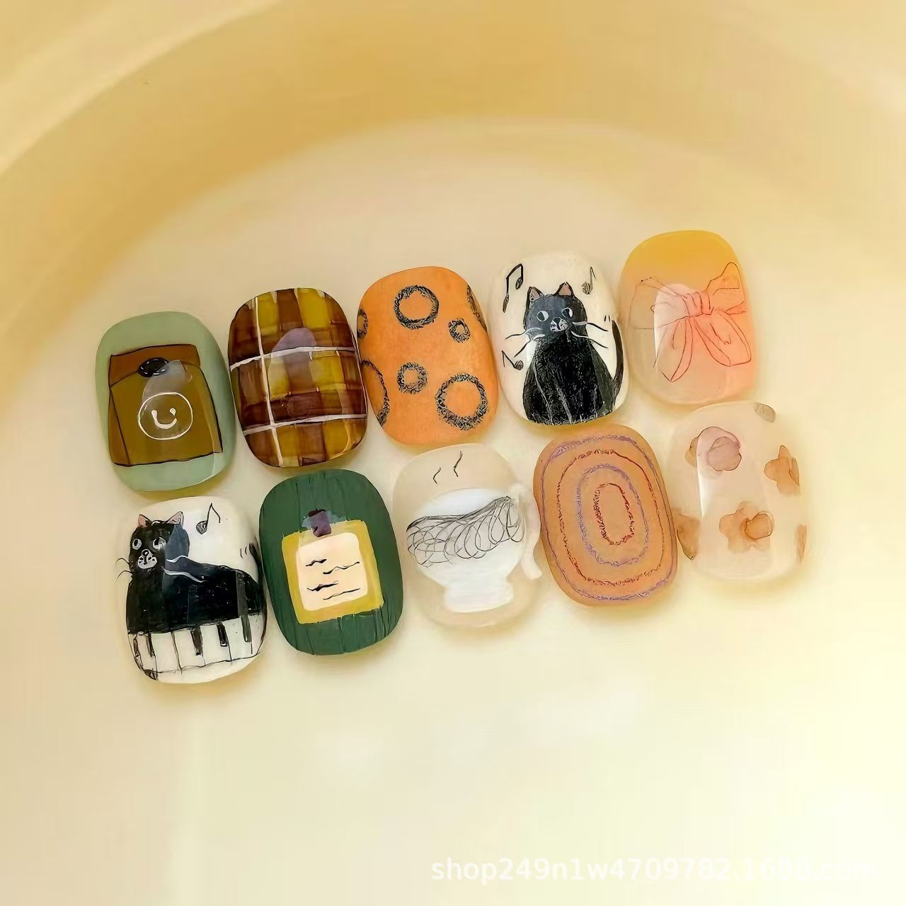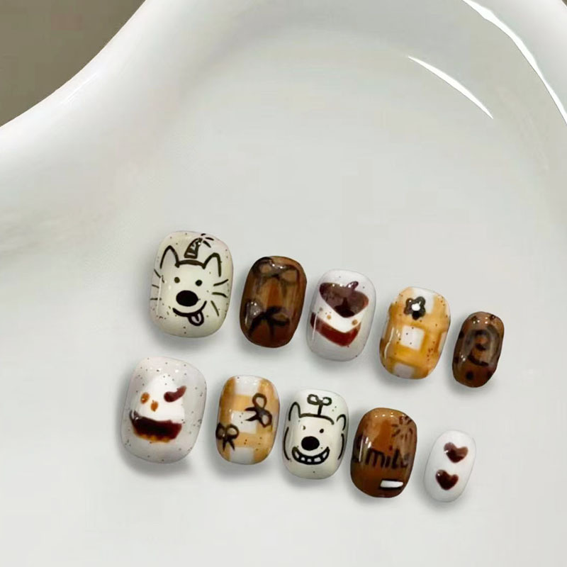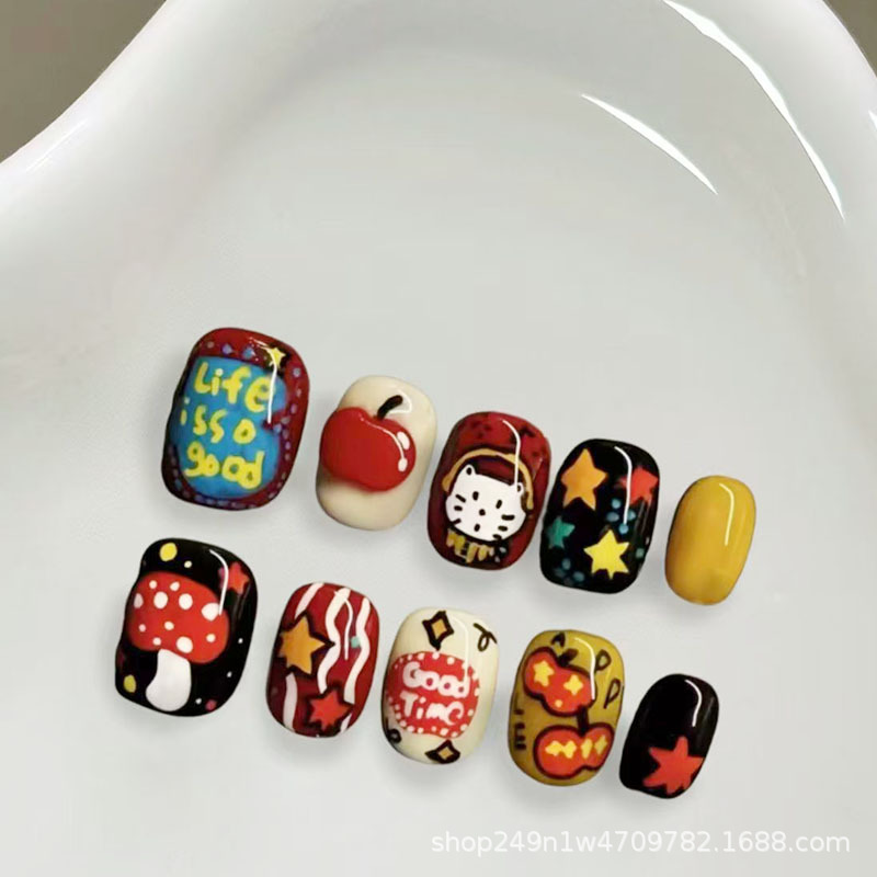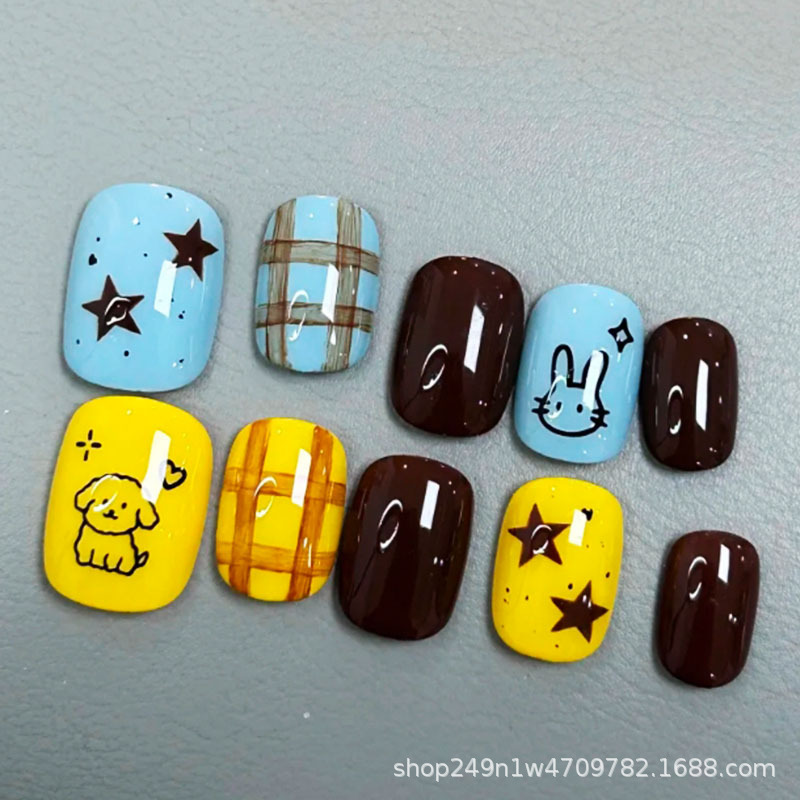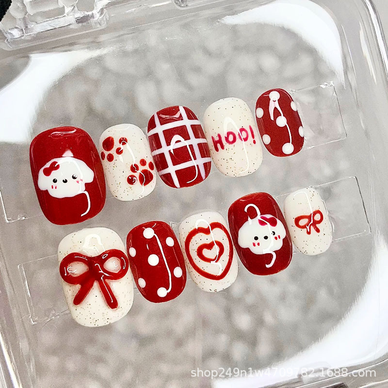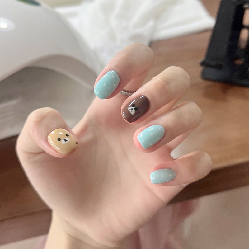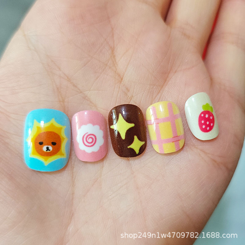 Осенне-зимние новые популярные милые мультяшные отбеливающие накладные ногти нишевого дизайна, короткие ногти-бобы, оптовая продажа с фабрики