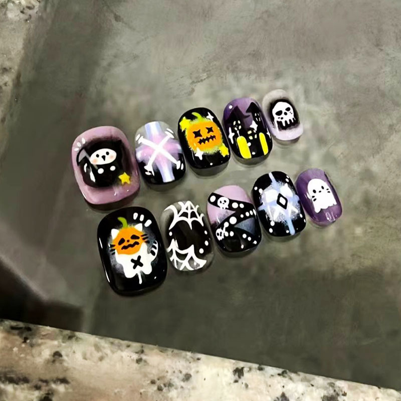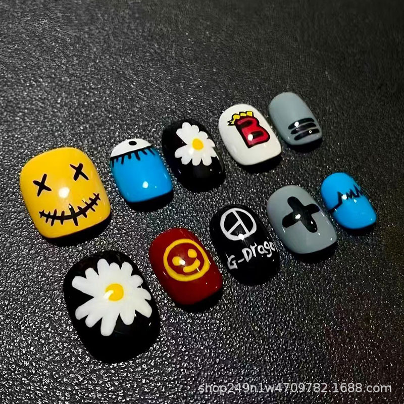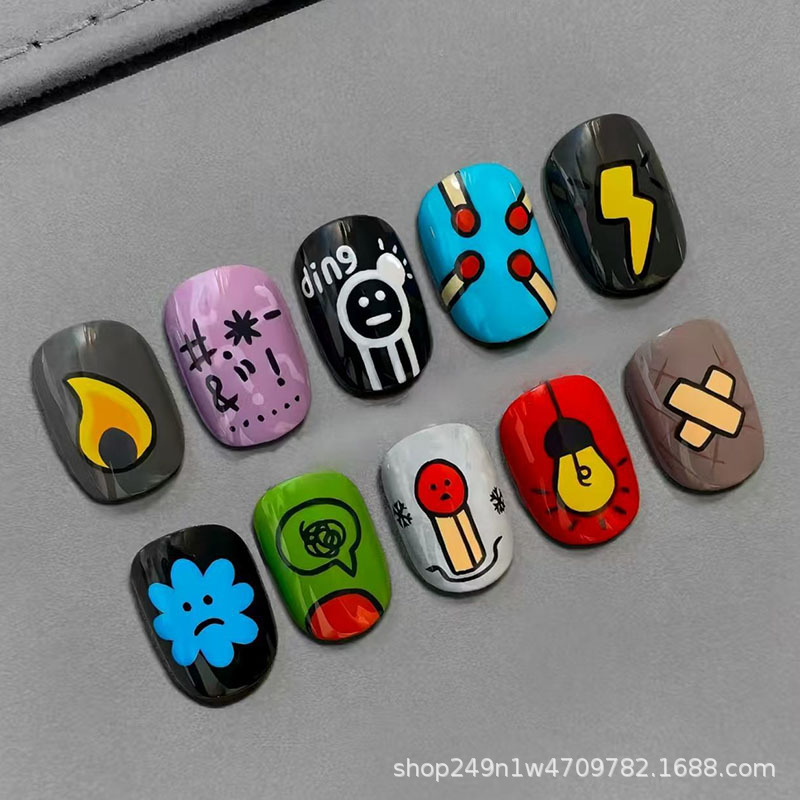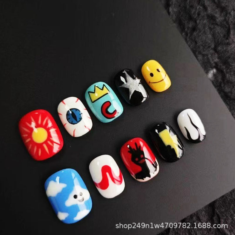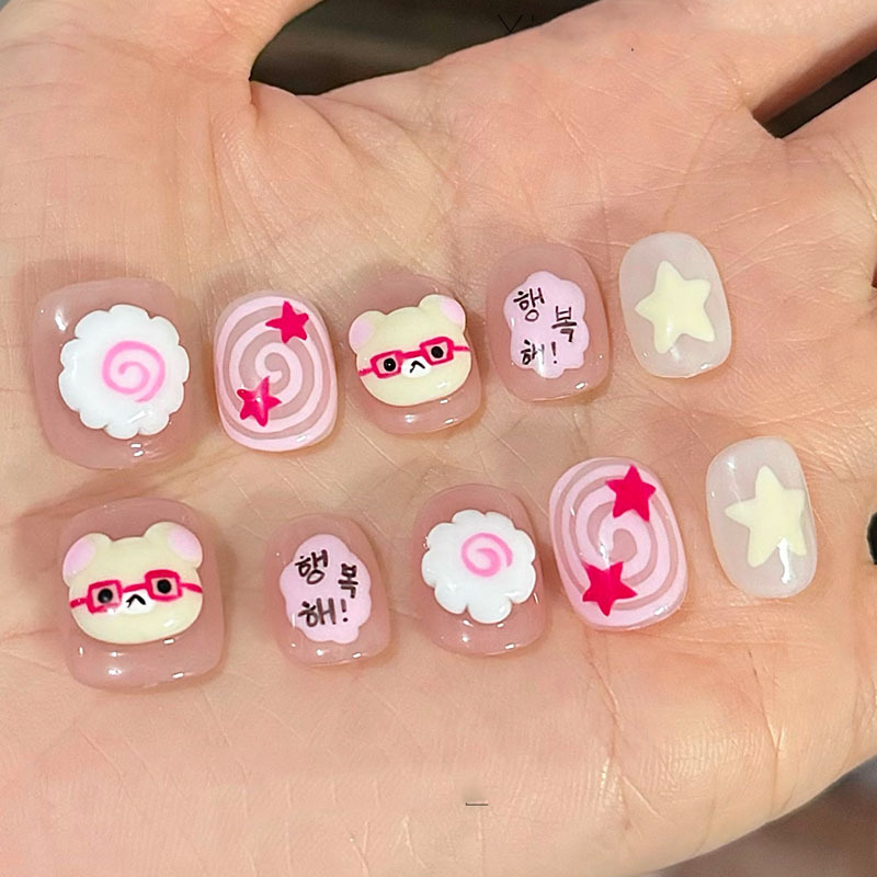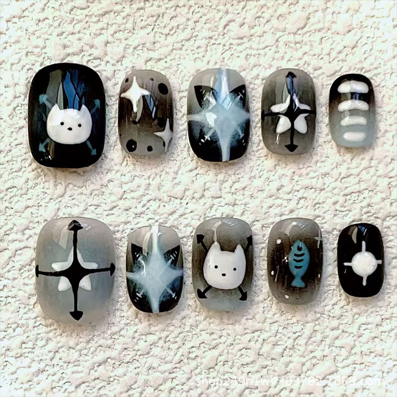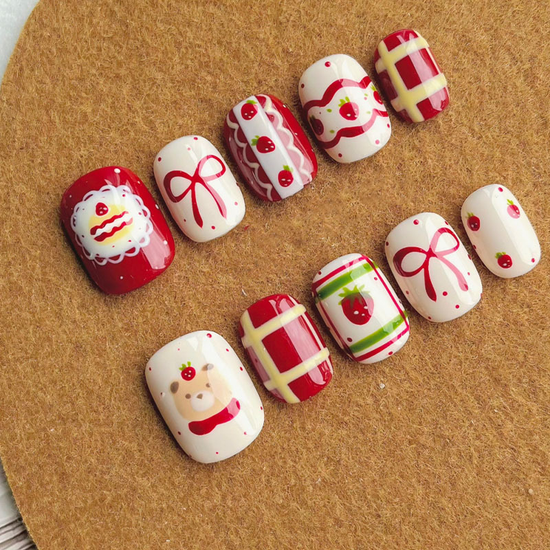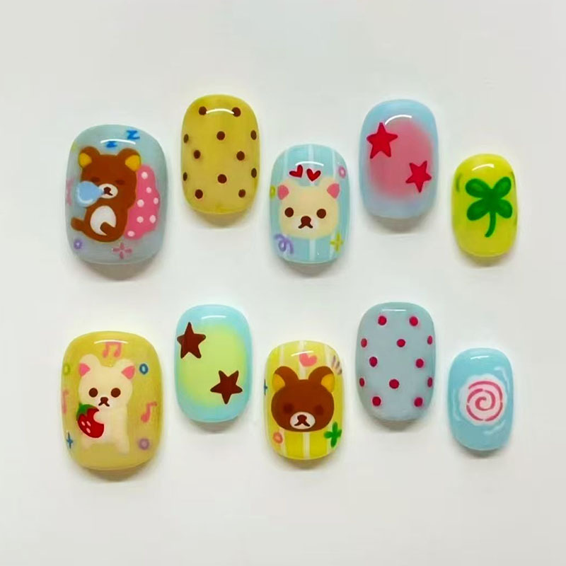 Осенне-зимние новые популярные милые мультяшные отбеливающие накладные ногти нишевого дизайна, короткие ногти-бобы, оптовая продажа с фабрики