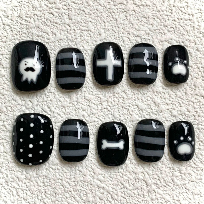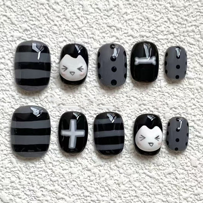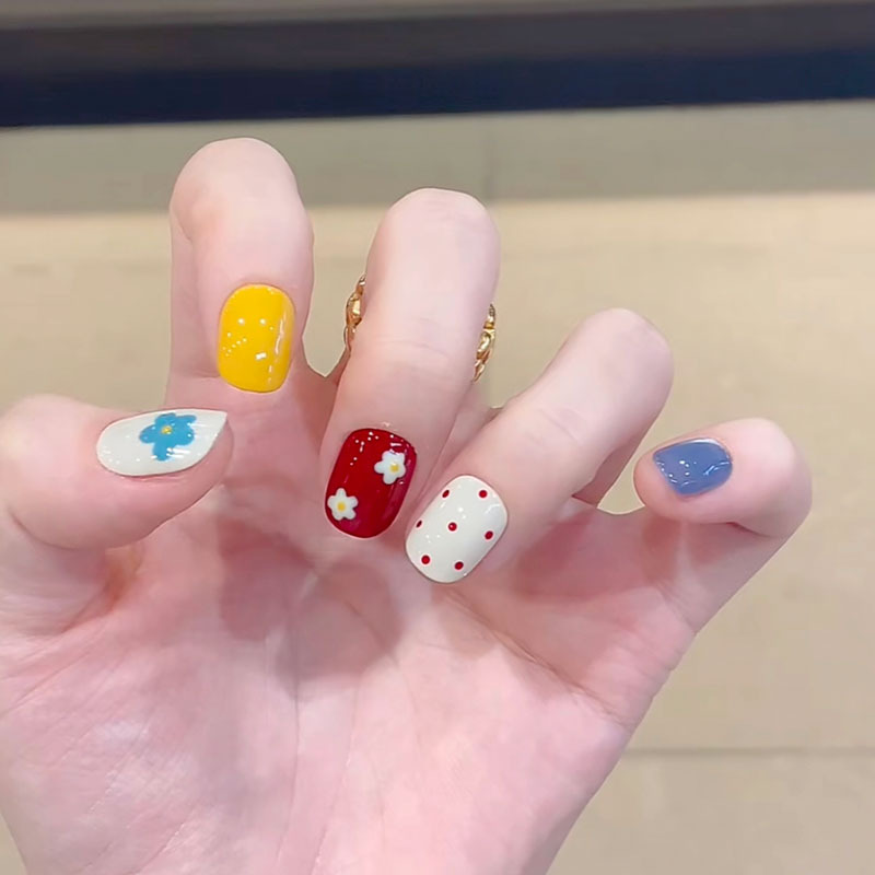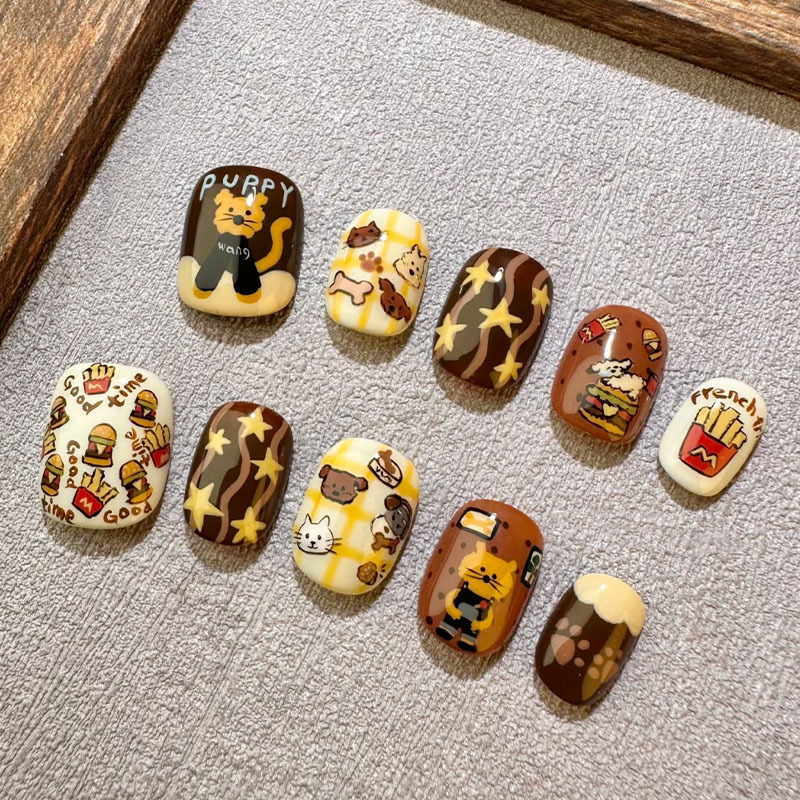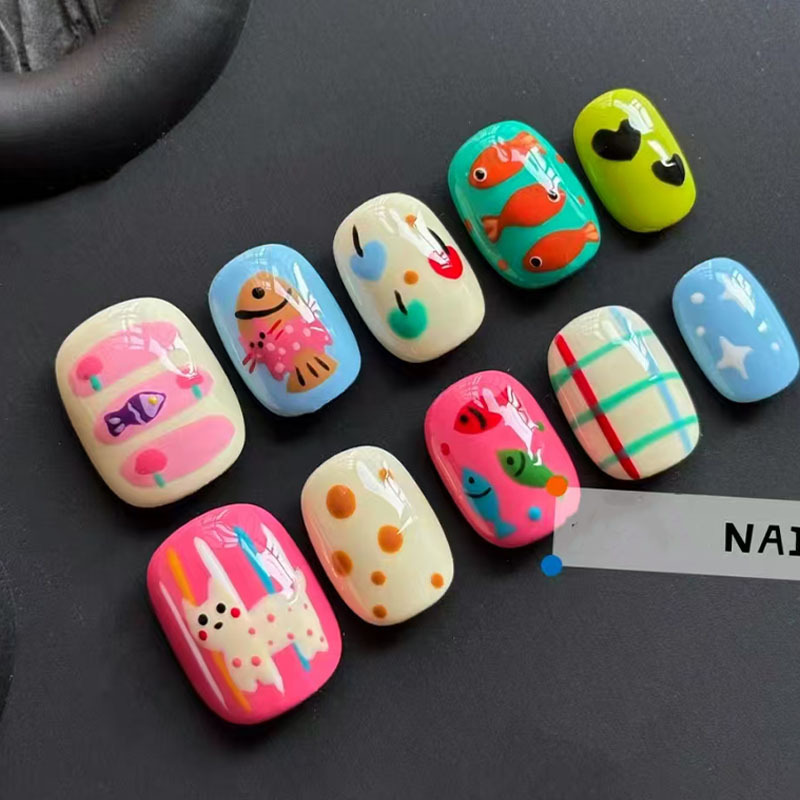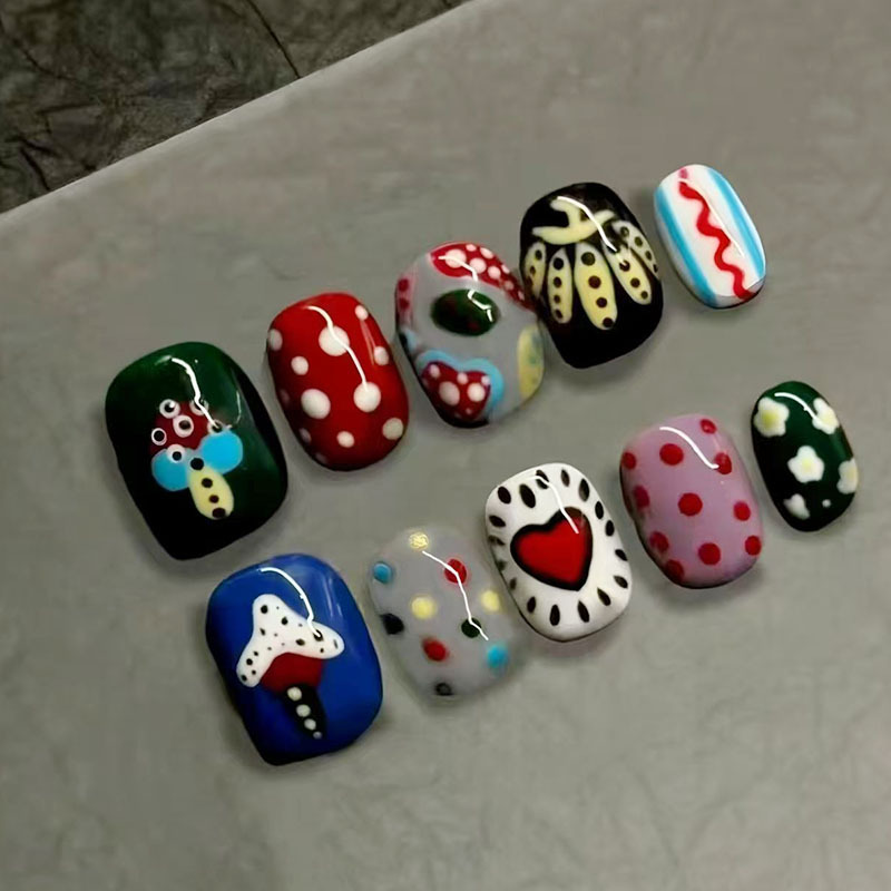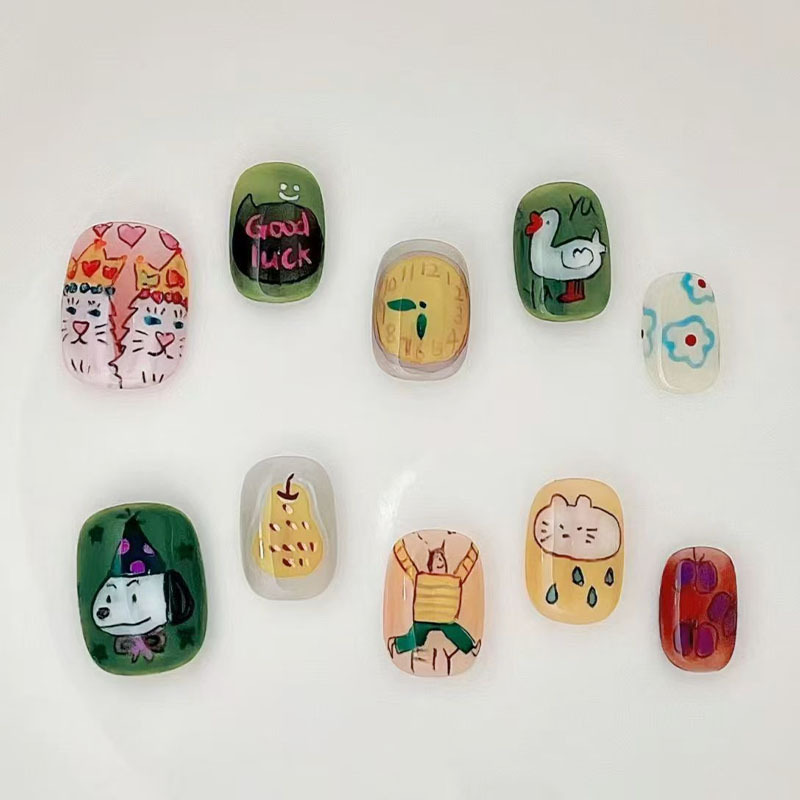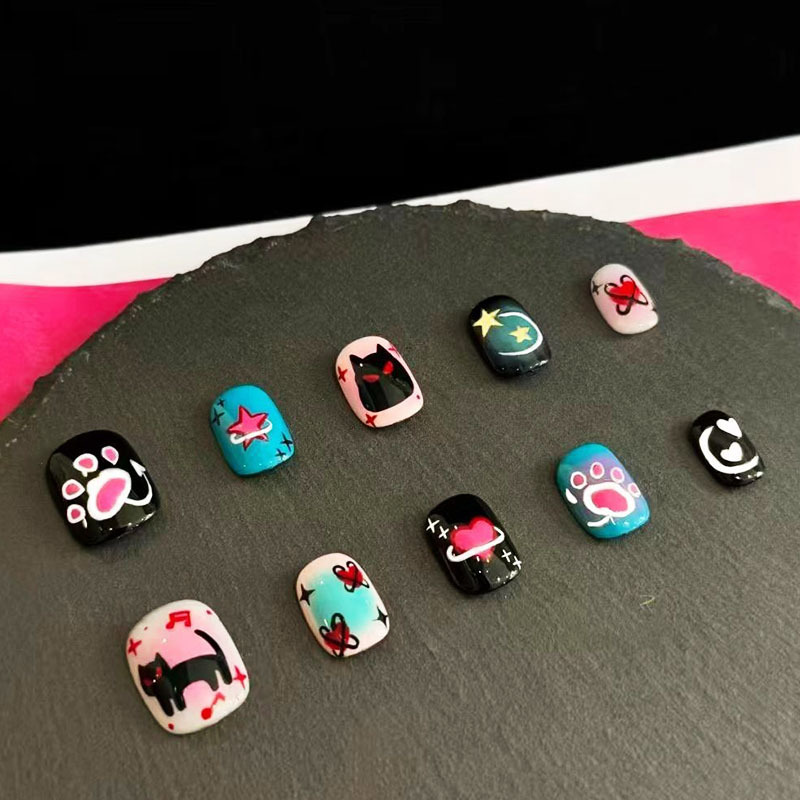 Осенне-зимние новые популярные милые мультяшные отбеливающие накладные ногти нишевого дизайна, короткие ногти-бобы, оптовая продажа с фабрики