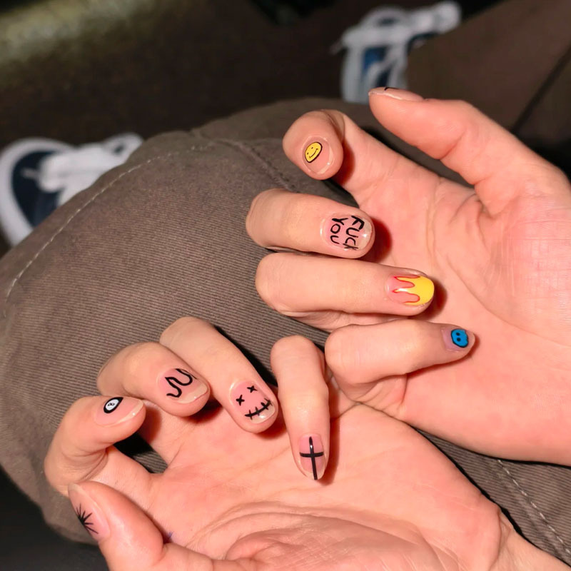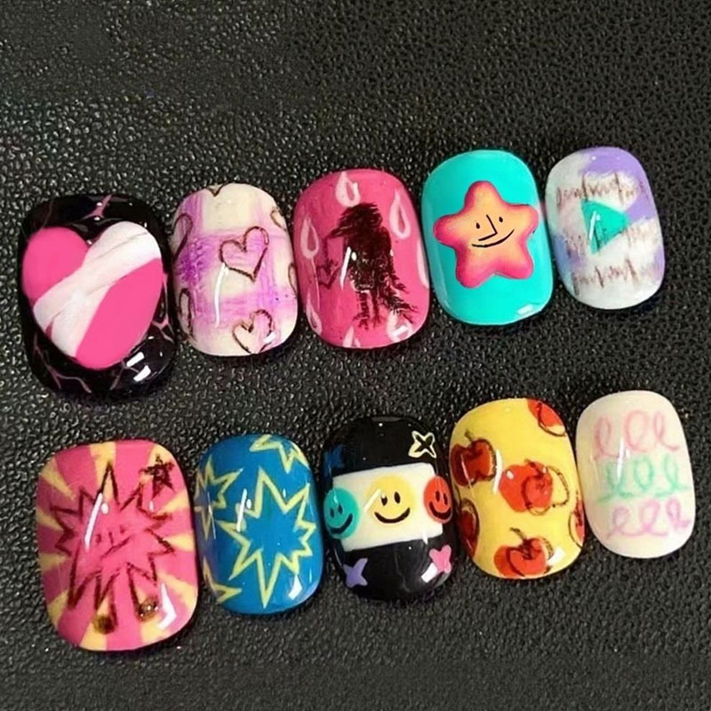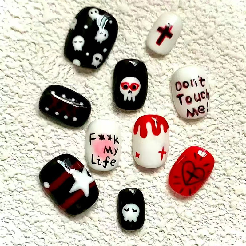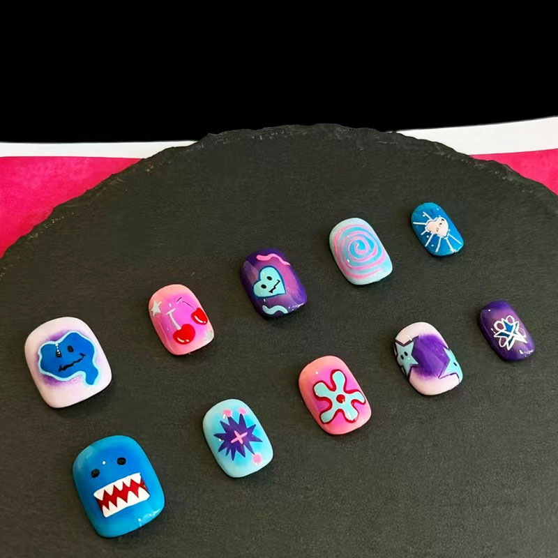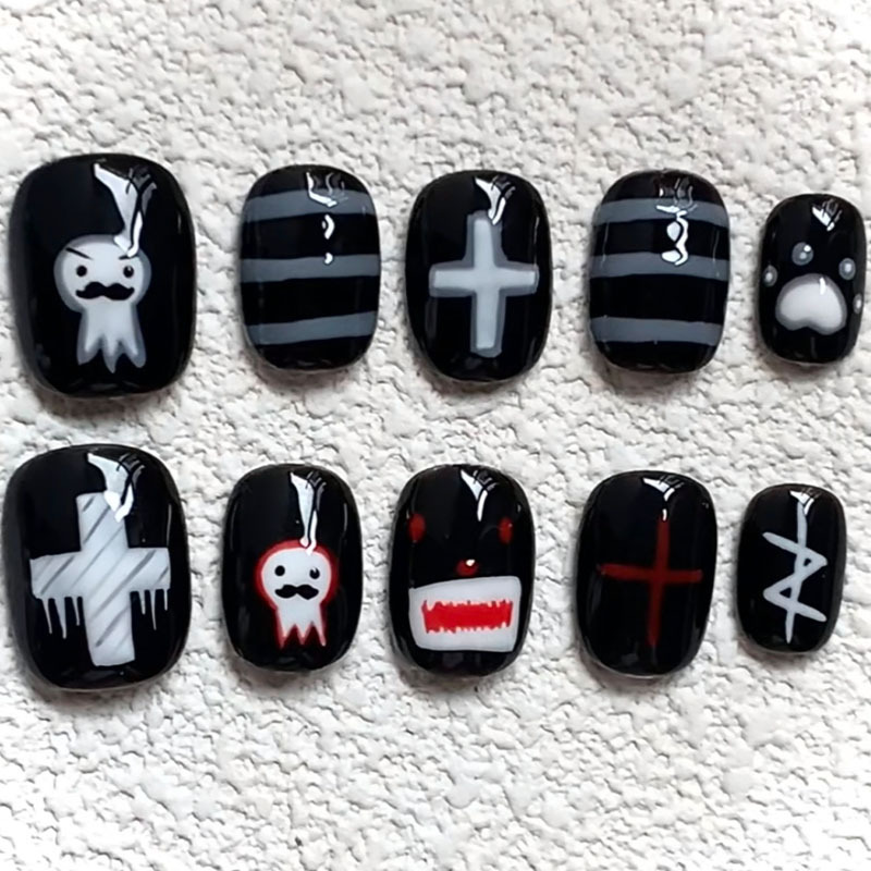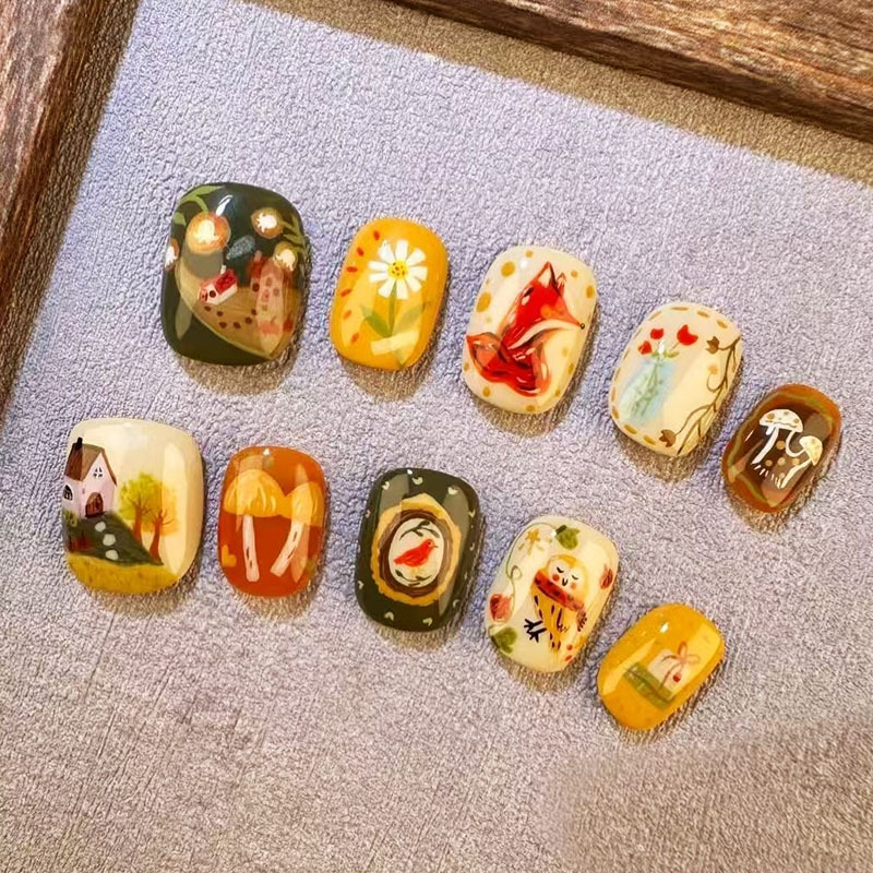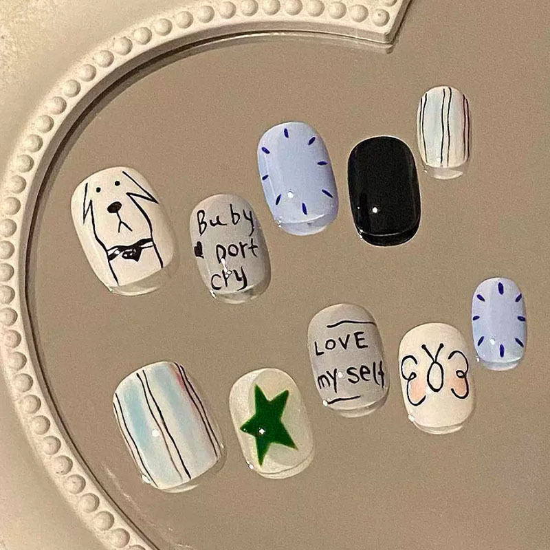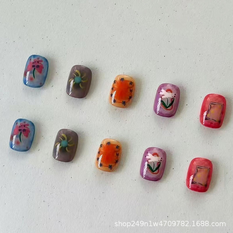 Осенне-зимние новые популярные милые мультяшные отбеливающие накладные ногти нишевого дизайна, короткие ногти-бобы, оптовая продажа с фабрики