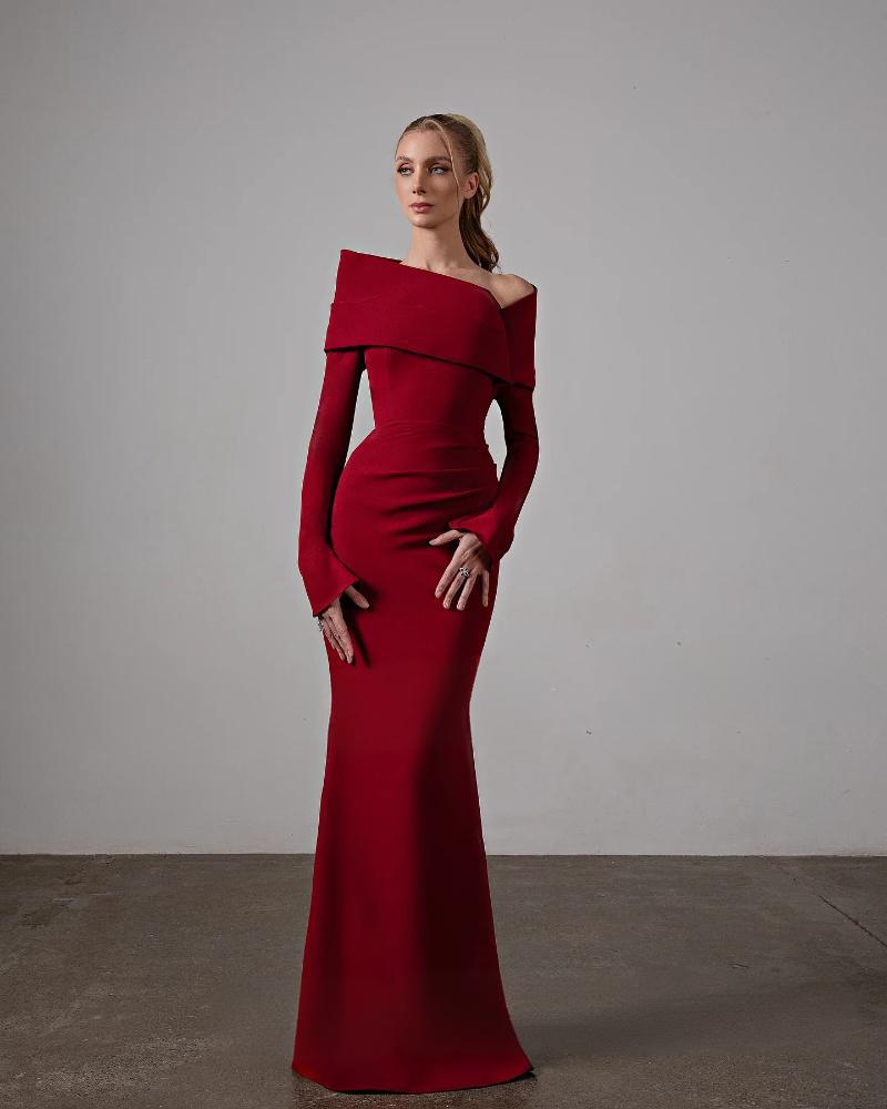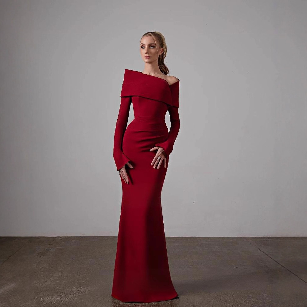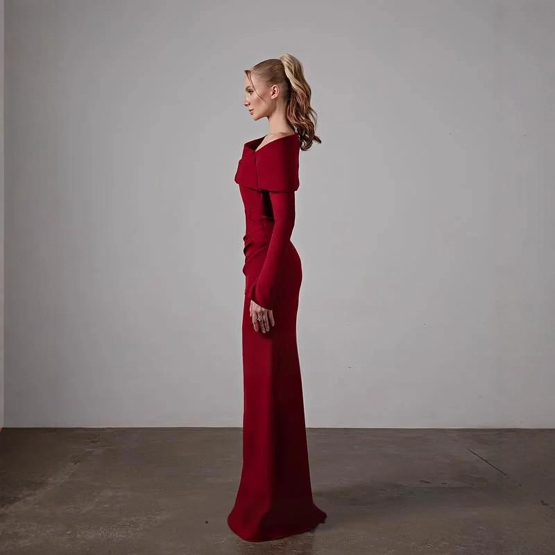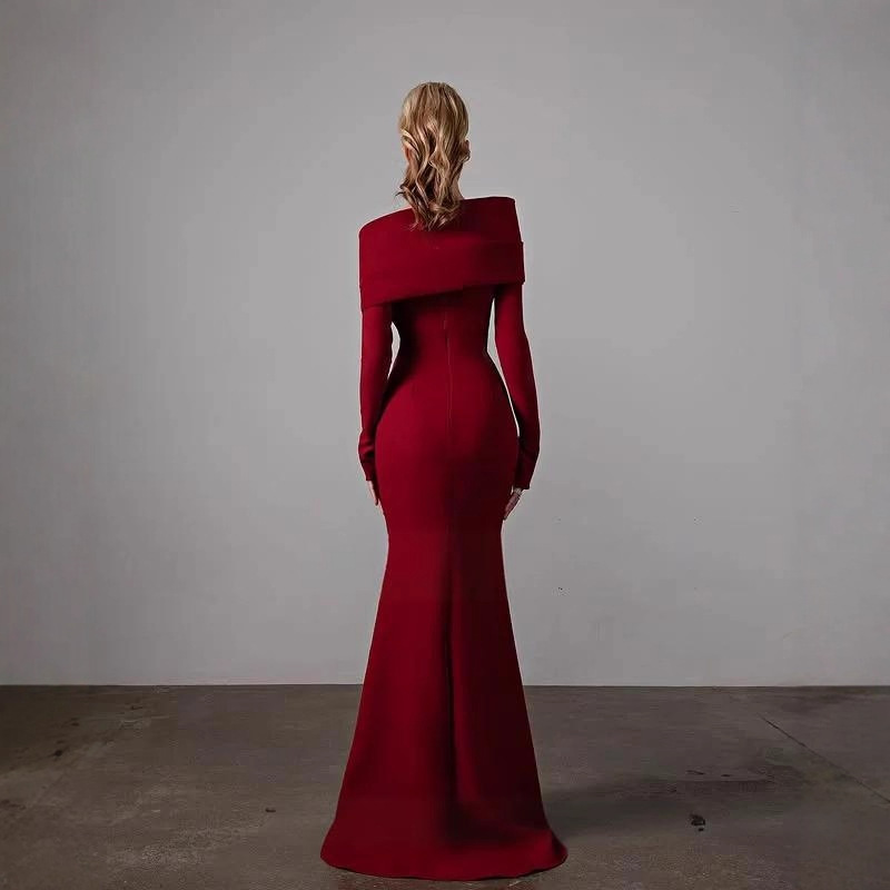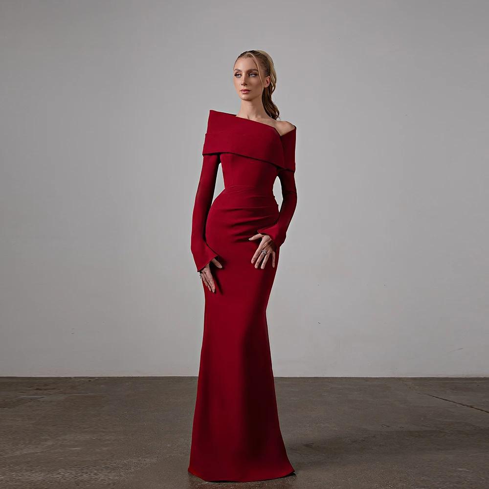 Новое длинное вечернее платье с длинными рукавами, облегающее, в стиле «русалка», простое и элегантное, для торжественных мероприятий и банкетов.