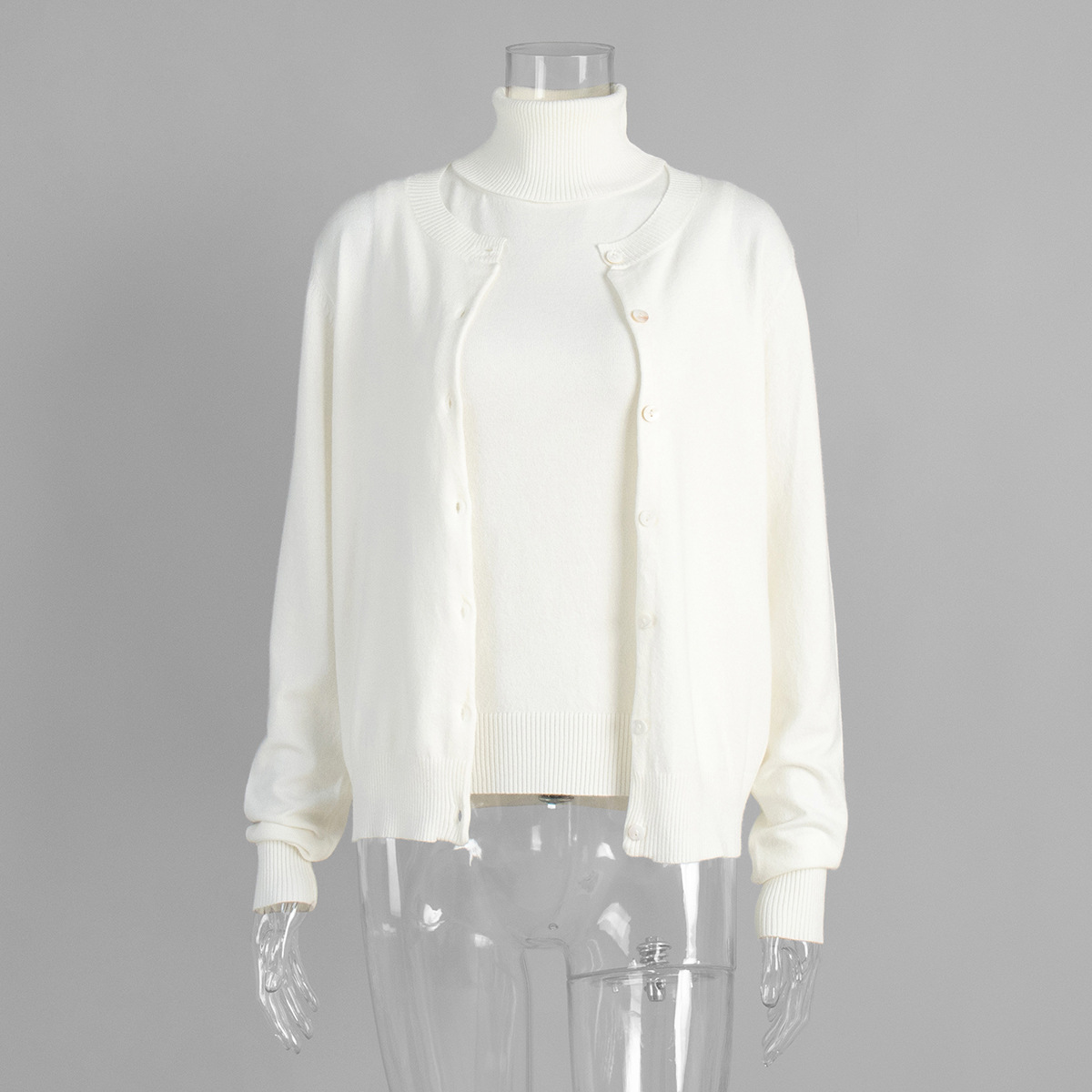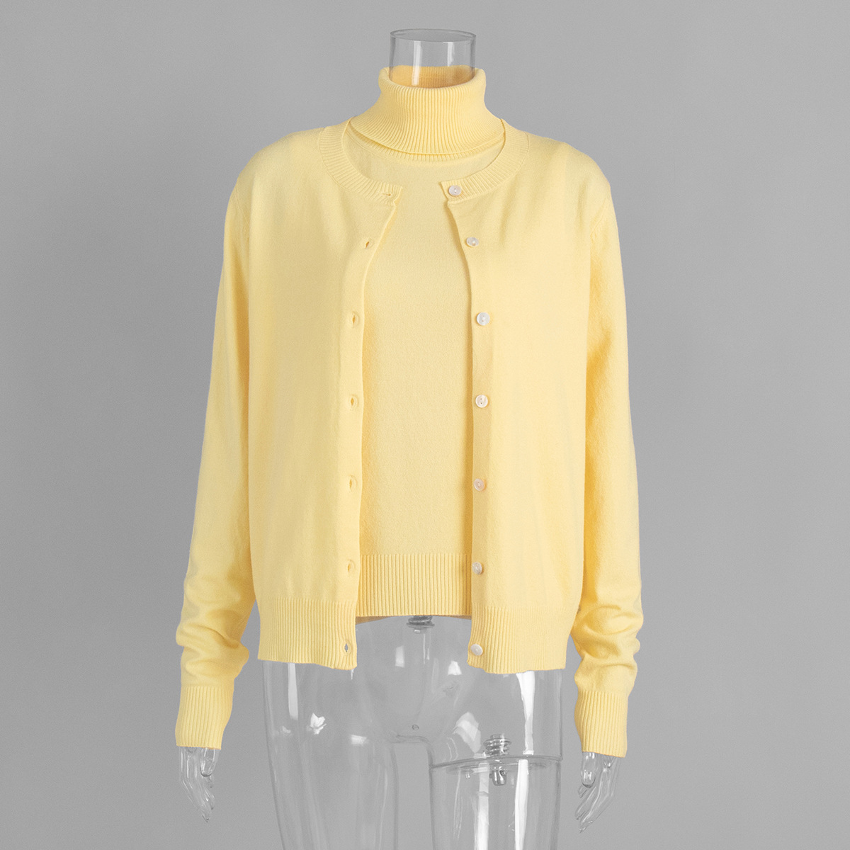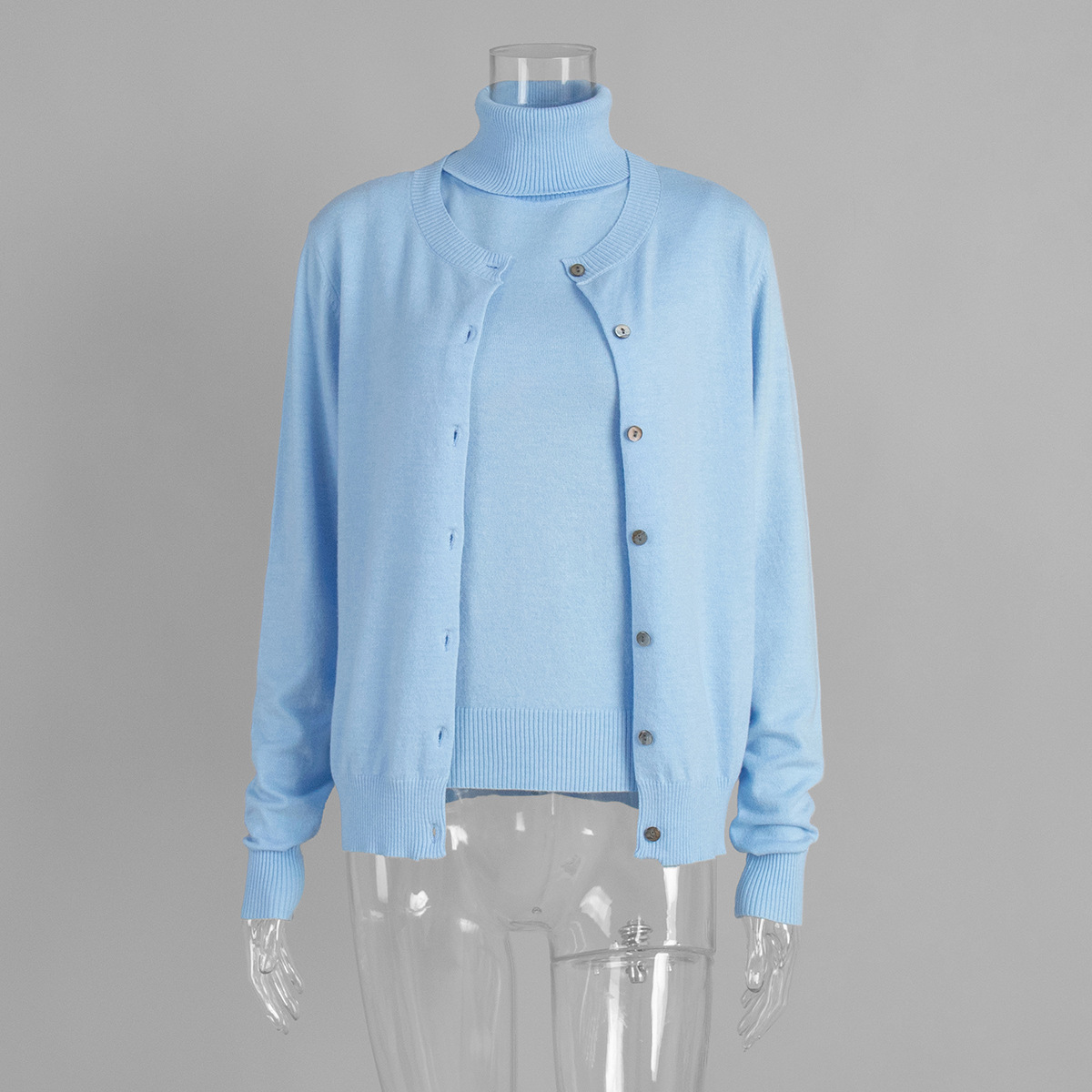 Комплект трикотажной одежды для женщин: топ без рукавов с высоким воротом и кардиган в европейском и американском стиле, коллекция ранняя осень 2025