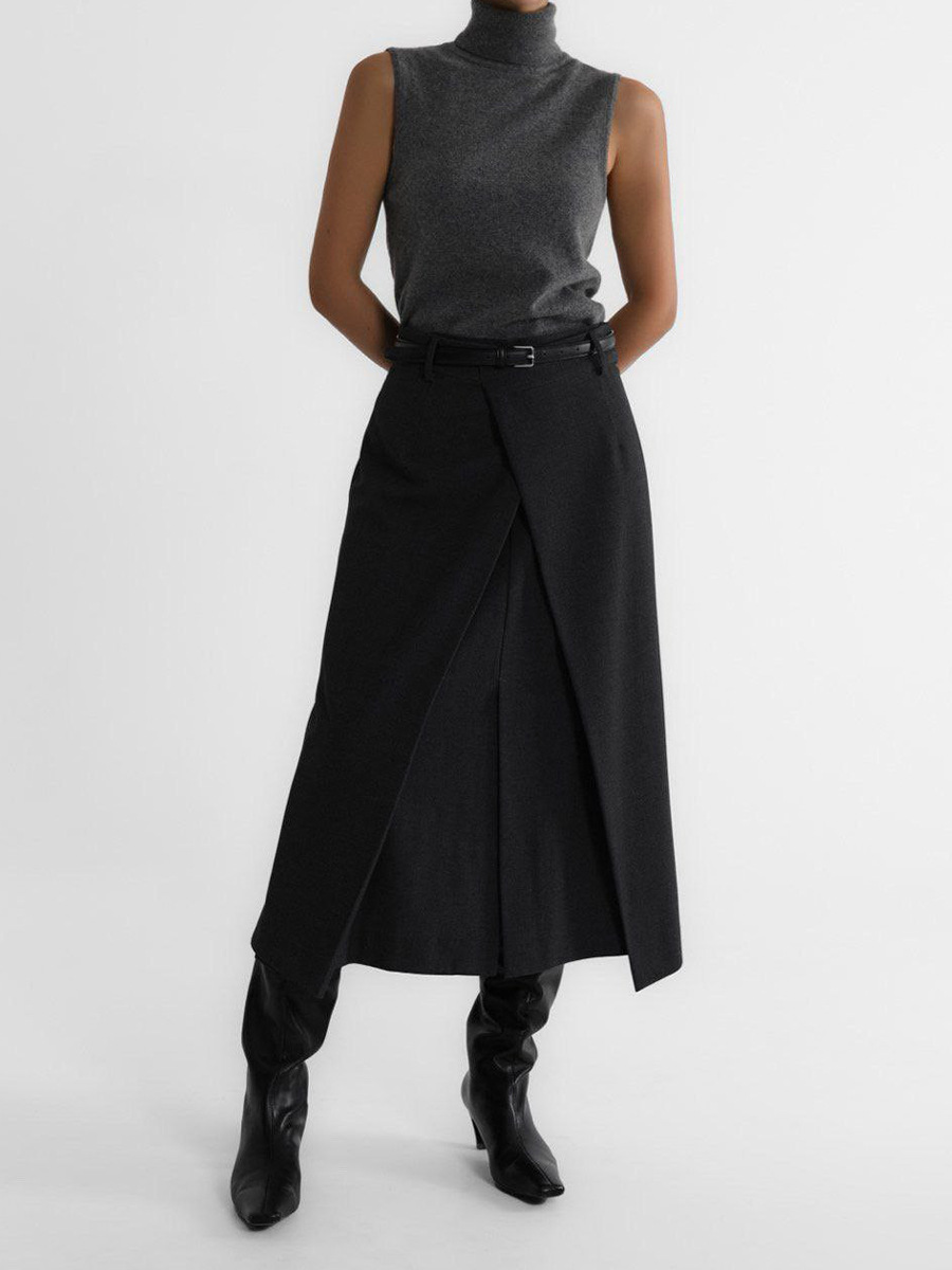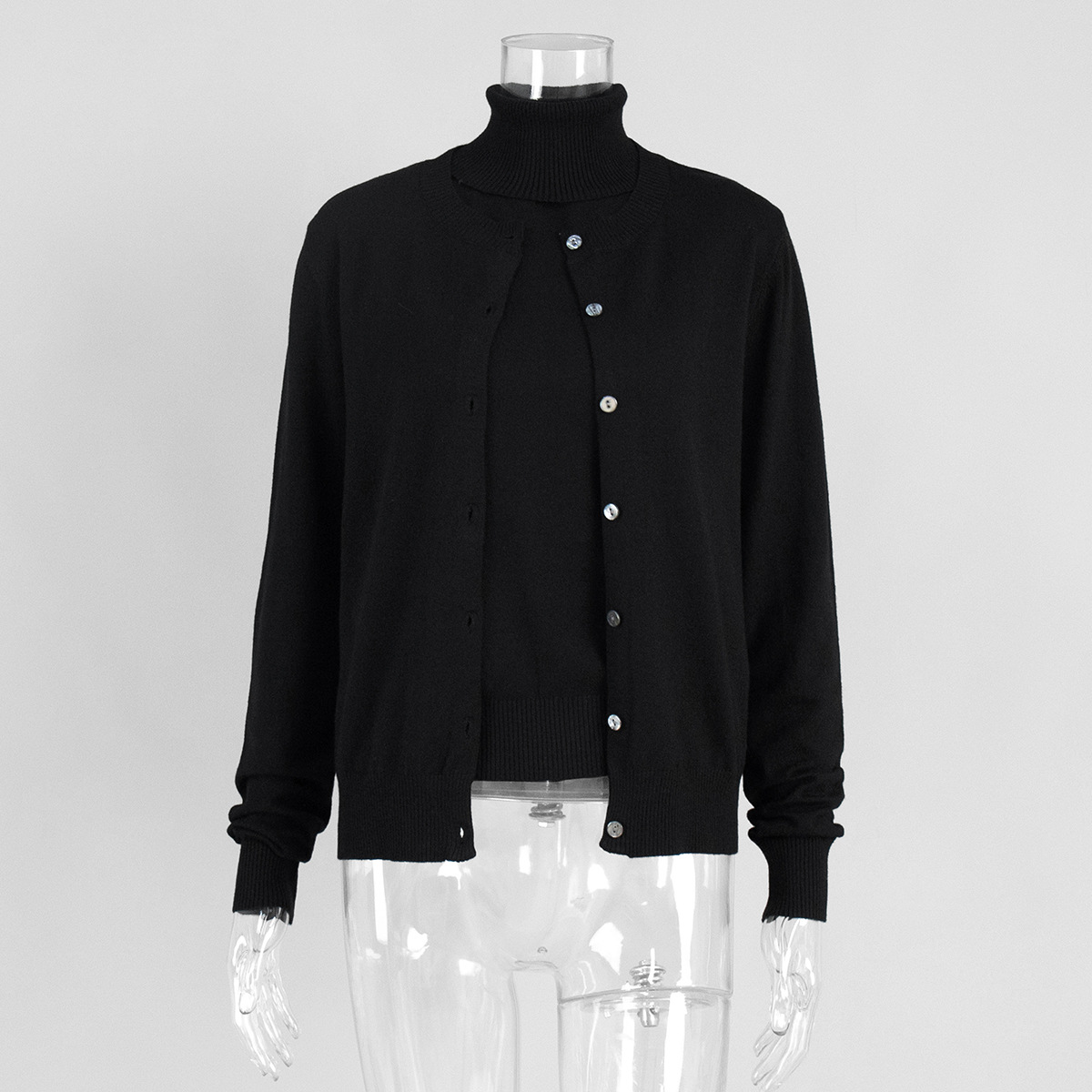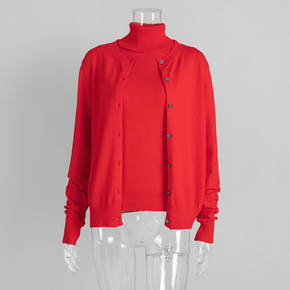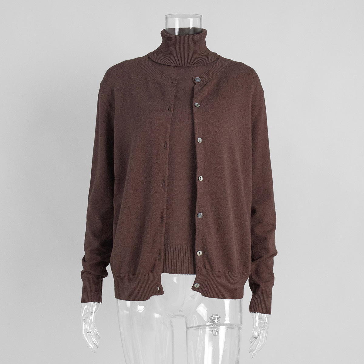 Комплект трикотажной одежды для женщин: топ без рукавов с высоким воротом и кардиган в европейском и американском стиле, коллекция ранняя осень 2025