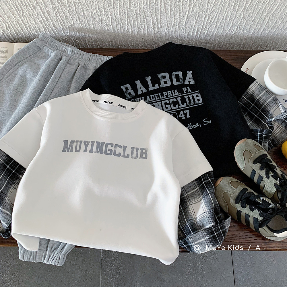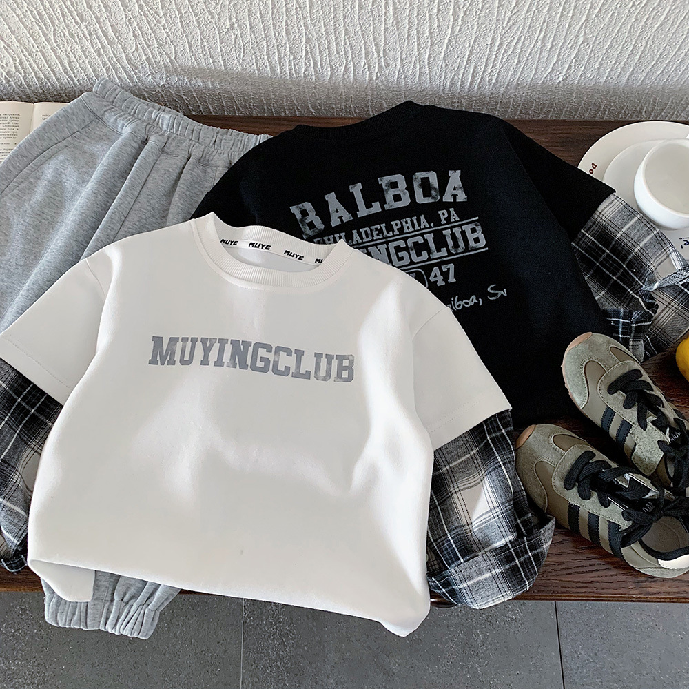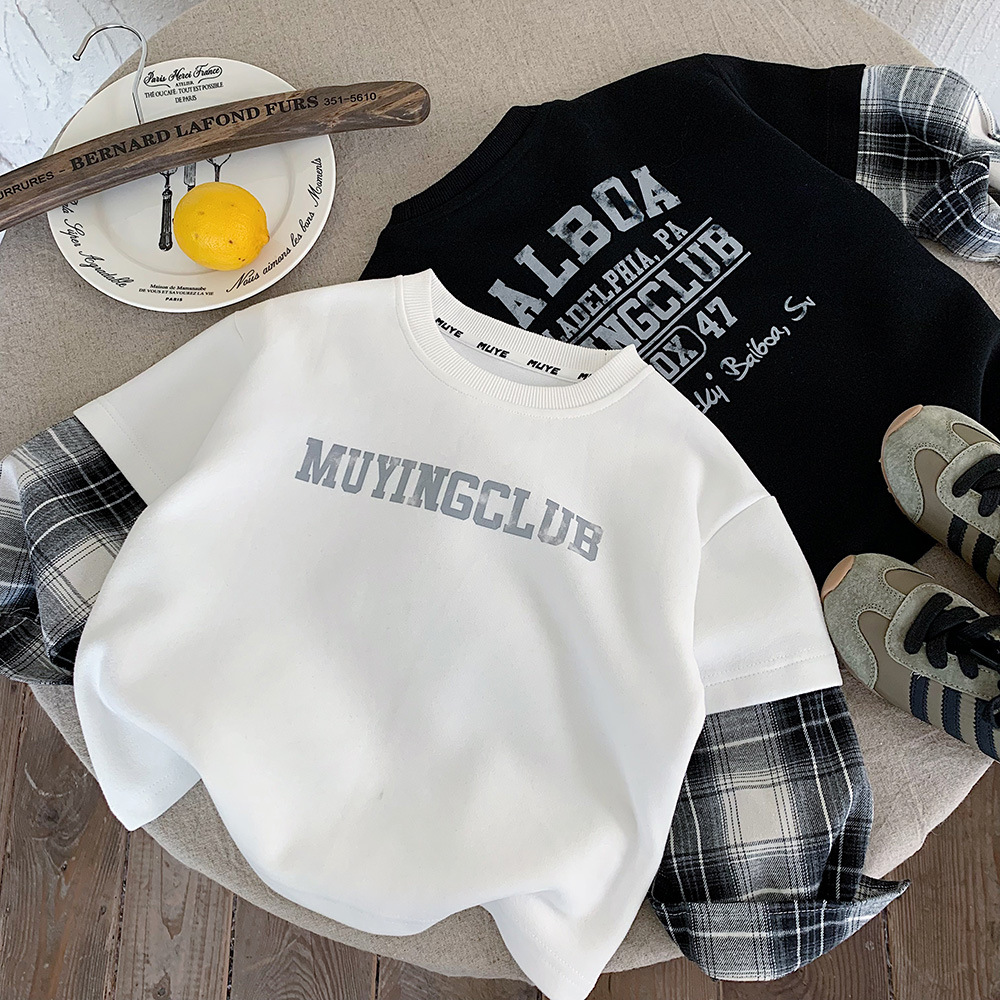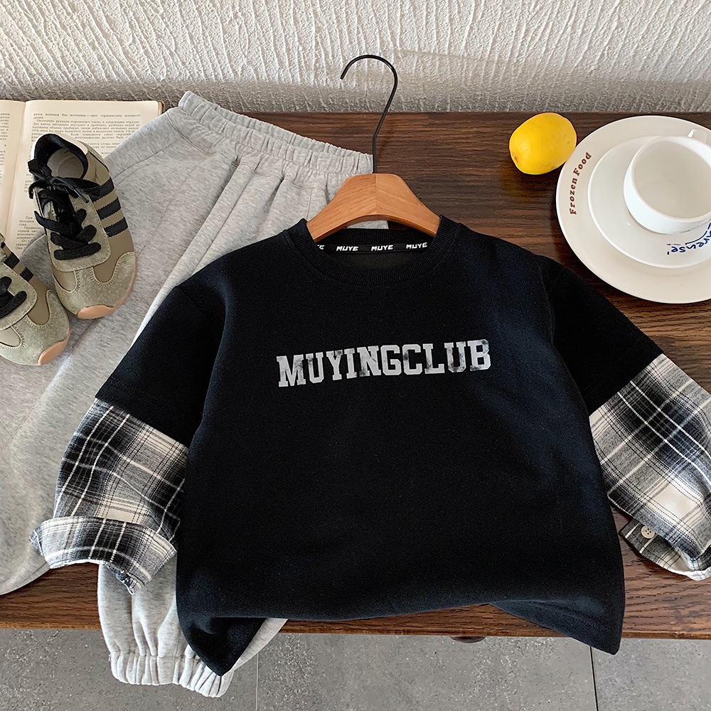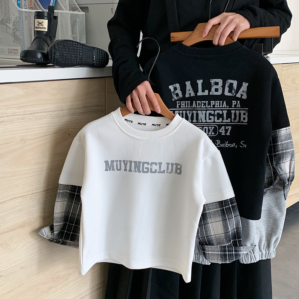 Свитшот Muye Spring Huzhou Zhili для мальчиков, в корейском стиле, с эффектом двухслойности, лоскутный, с длинным рукавом, повседневный, модный.