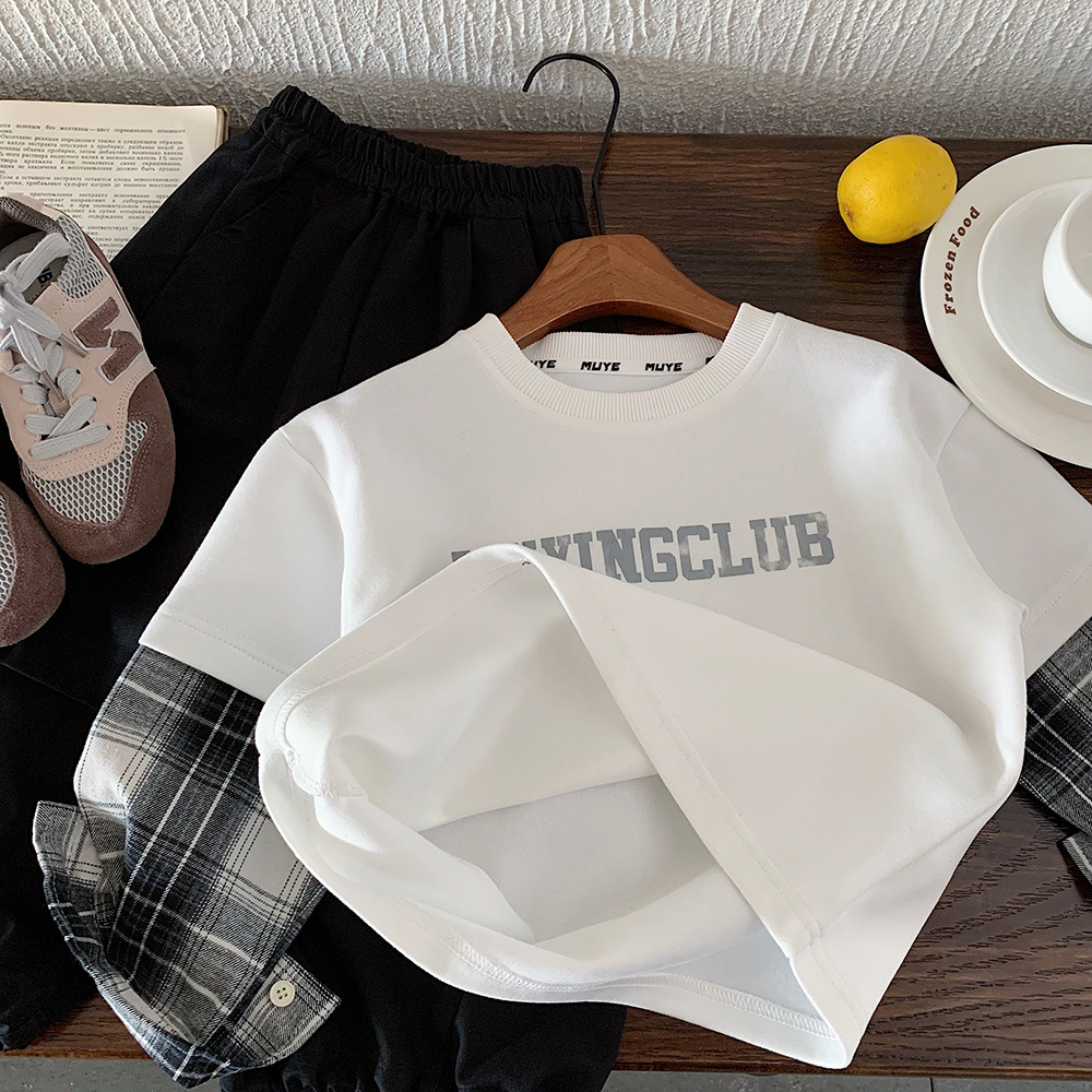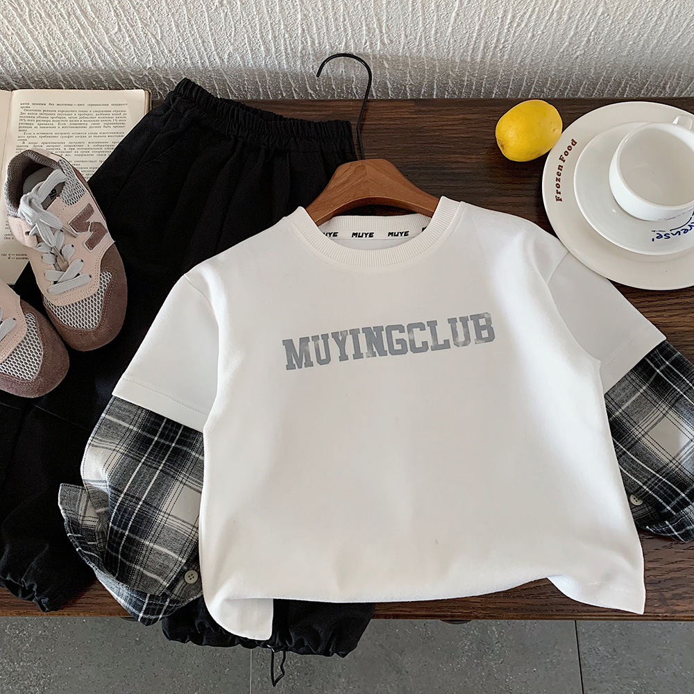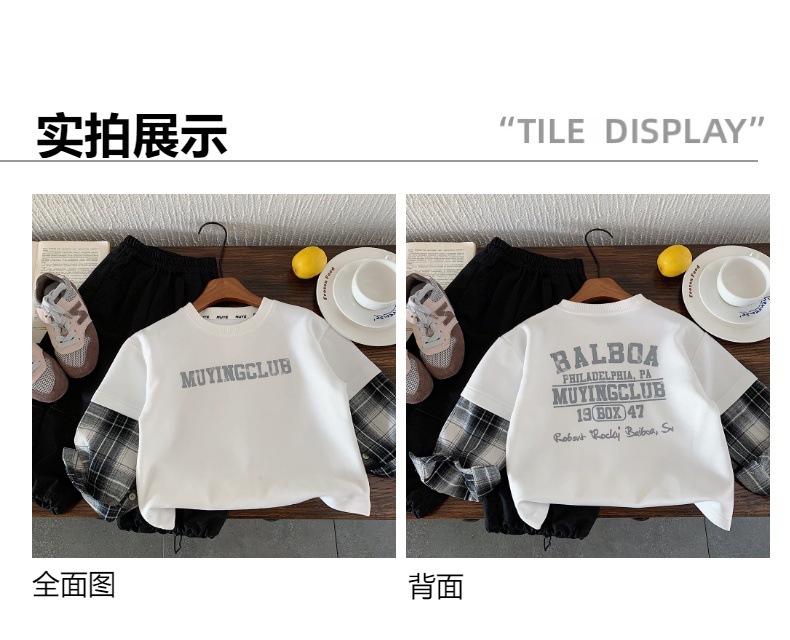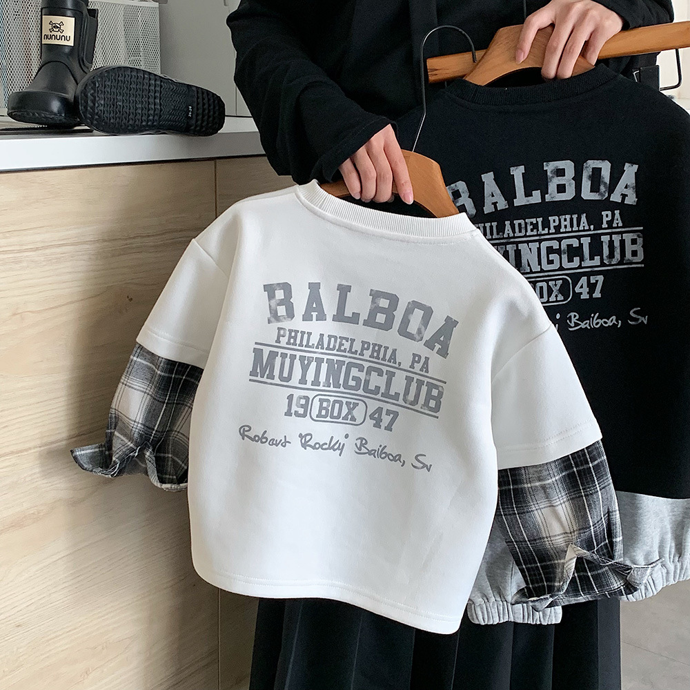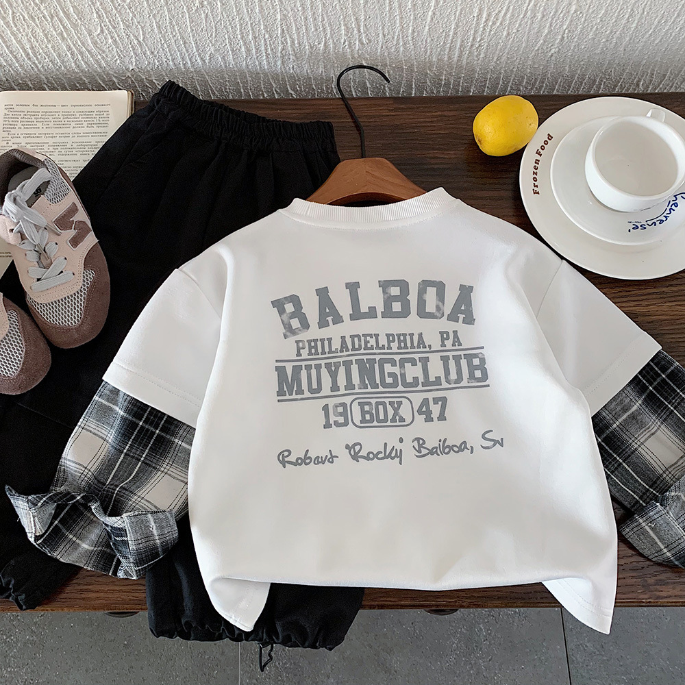 Свитшот Muye Spring Huzhou Zhili для мальчиков, в корейском стиле, с эффектом двухслойности, лоскутный, с длинным рукавом, повседневный, модный.