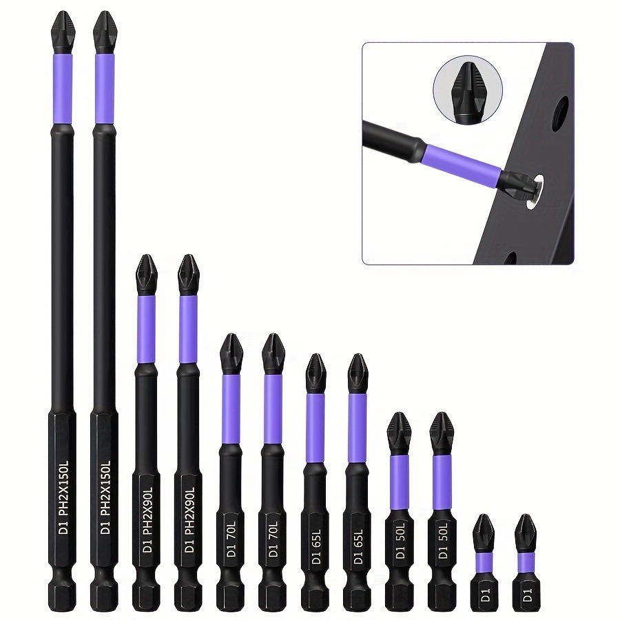 12 шт., сильный магнитный крест PH2, ударная электрическая отвертка, головка S2, сталь, комбинированный набор бит высокой твердости, инструмент