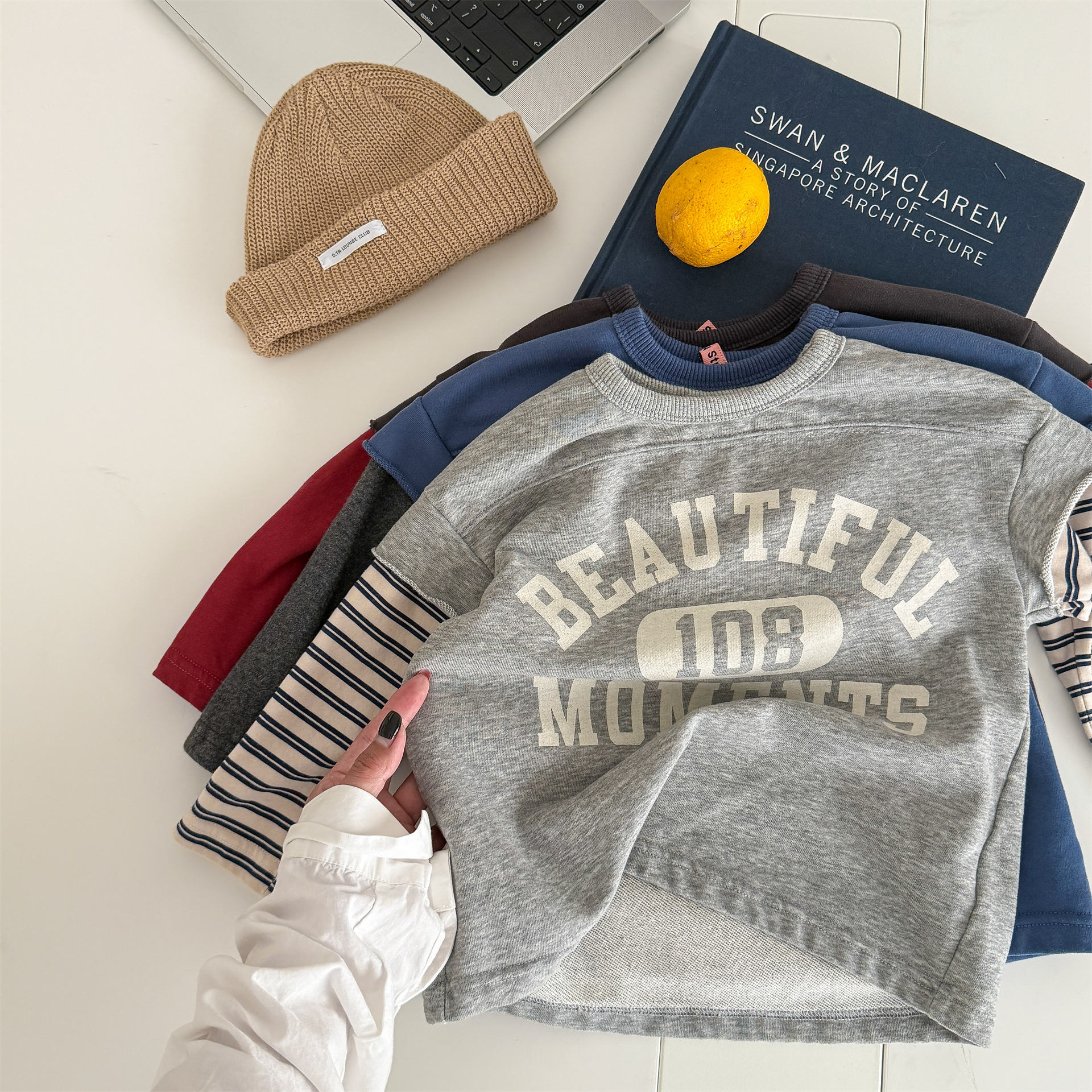 Детская одежда весна 2026: Футболка-свитшот в корейском стиле с длинным рукавом для мальчиков и девочек, базовая модель весна-осень 6525