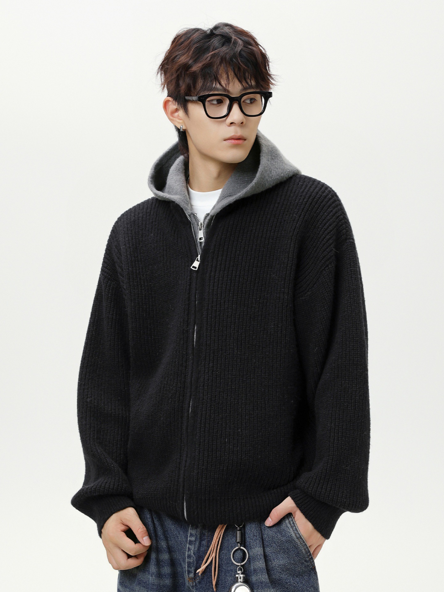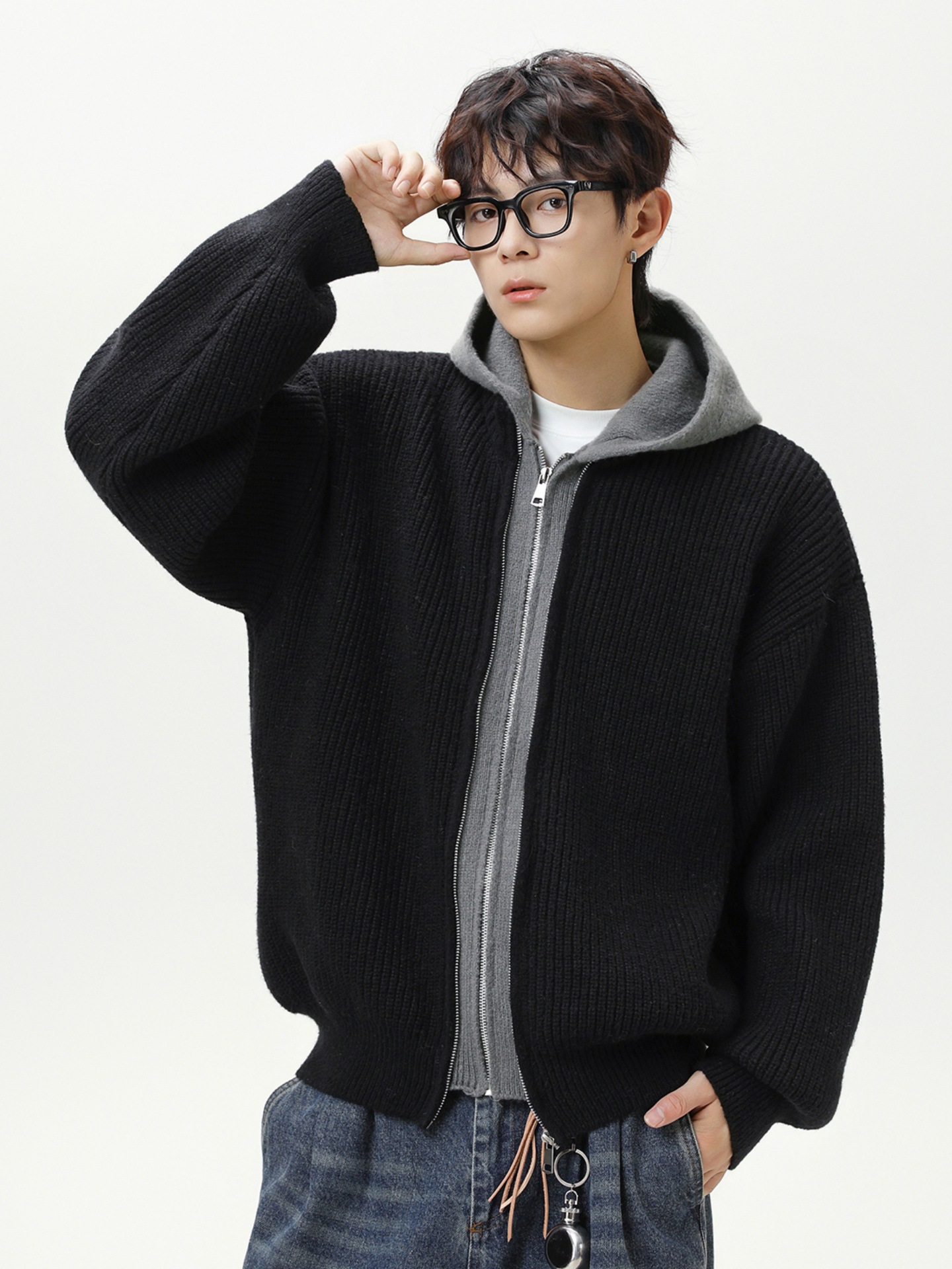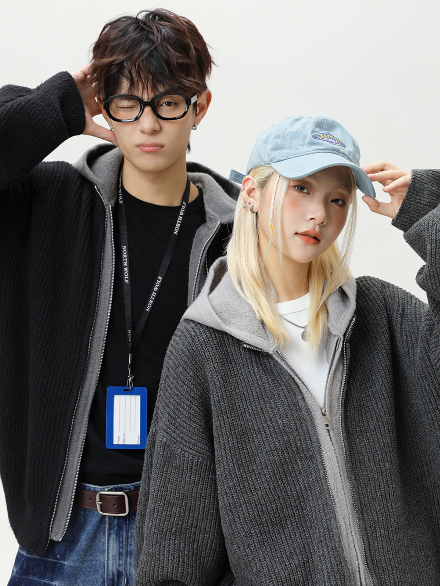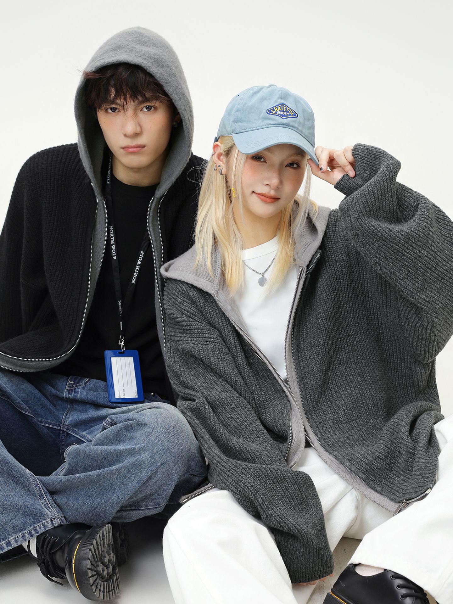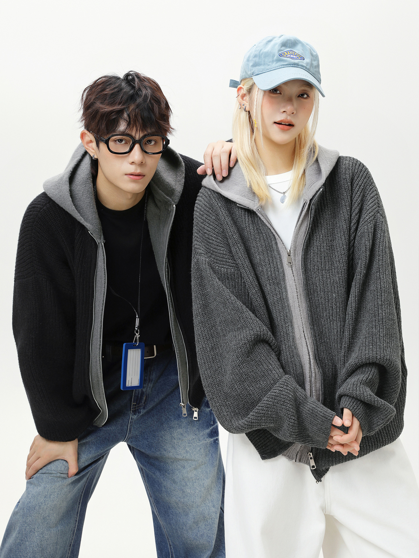 Текстурированный кардиган из искусственного меха оленя, состоящий из двух частей, с капюшоном, осенне-зимний, винтажный, модный, брендовый, для пар, вязаный жакет q