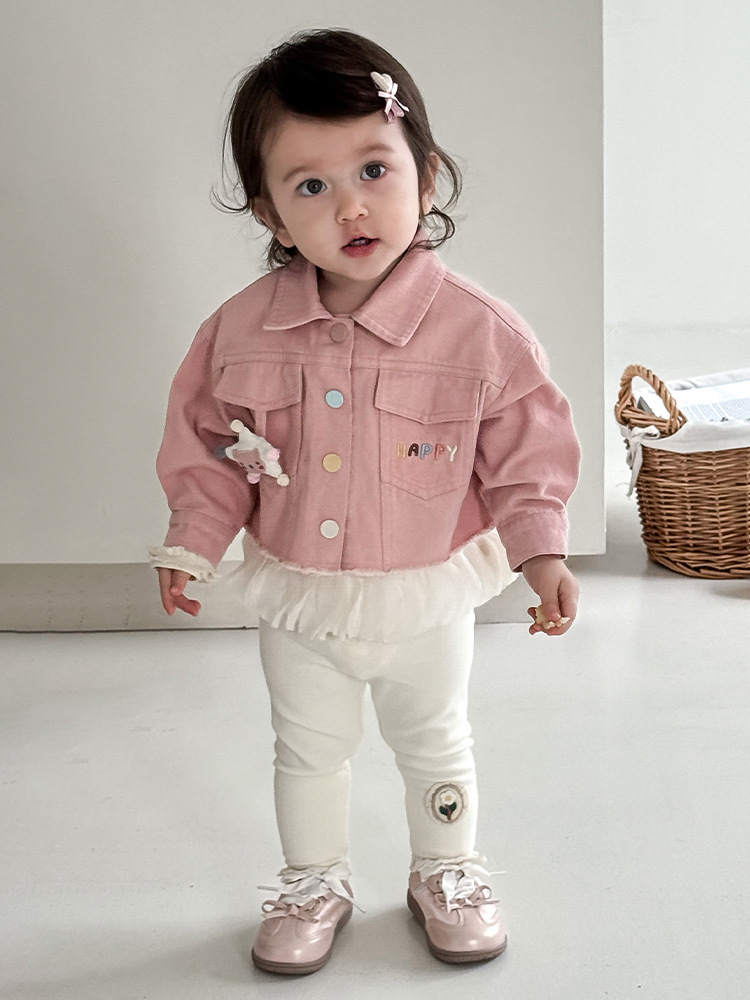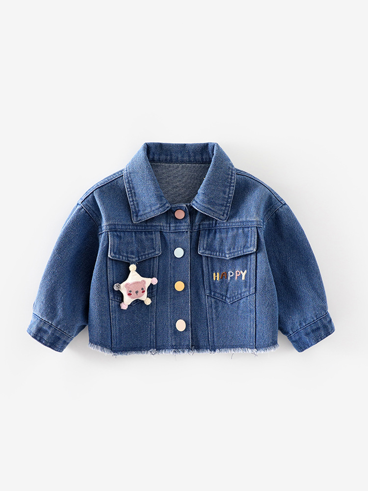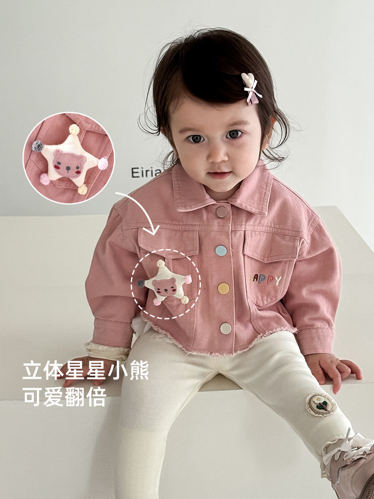 儿童时尚牛仔服2025新款秋季女童洋气玩偶外套宝宝字母彩扣秋装潮