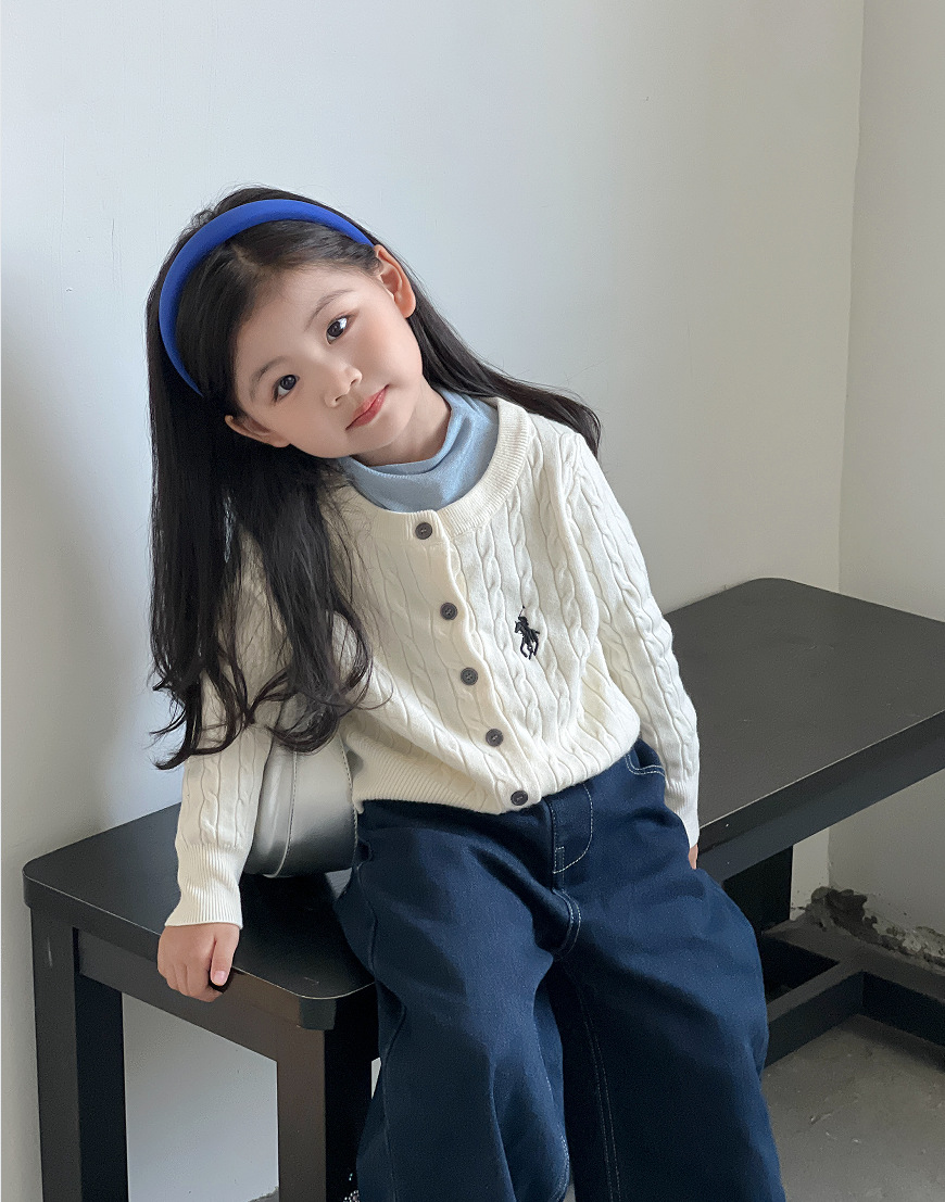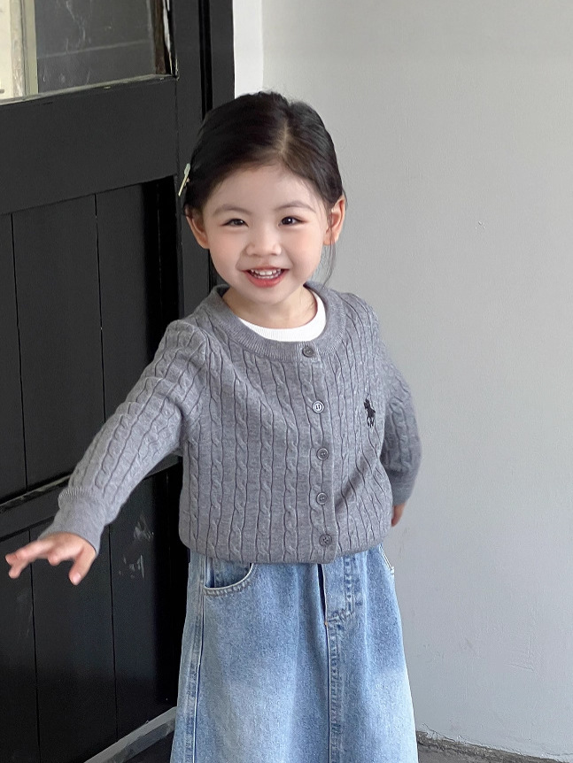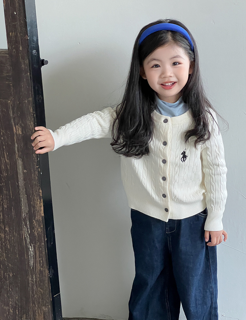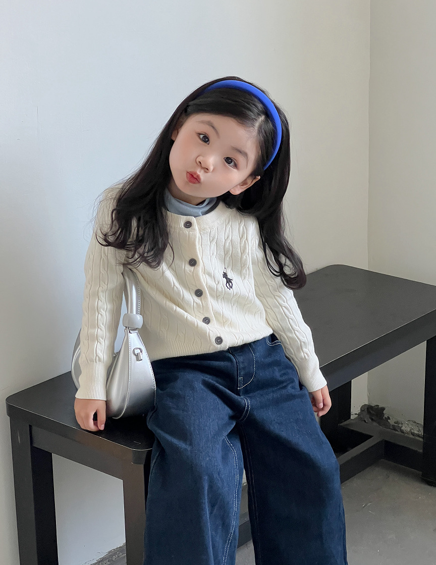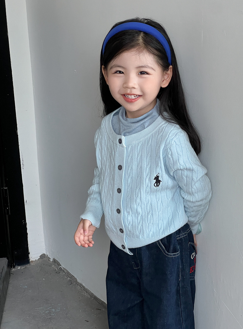女童针织开衫2025新款秋装韩版女宝宝麻花刺绣外衣儿童长袖毛衣