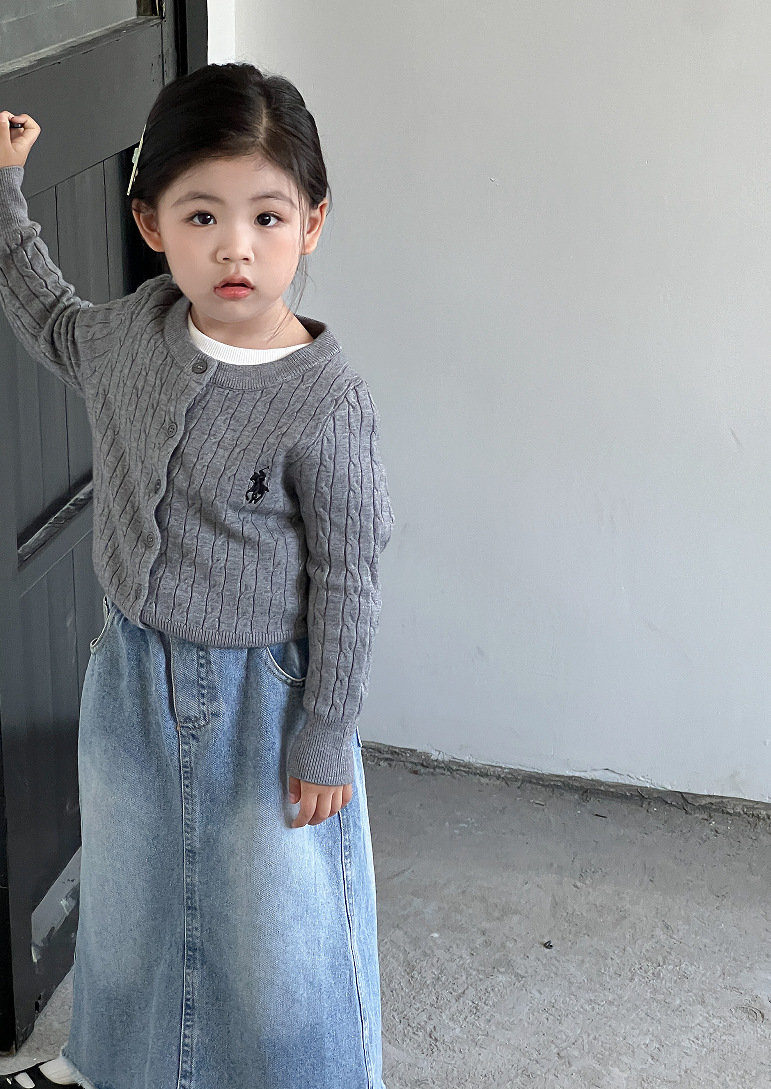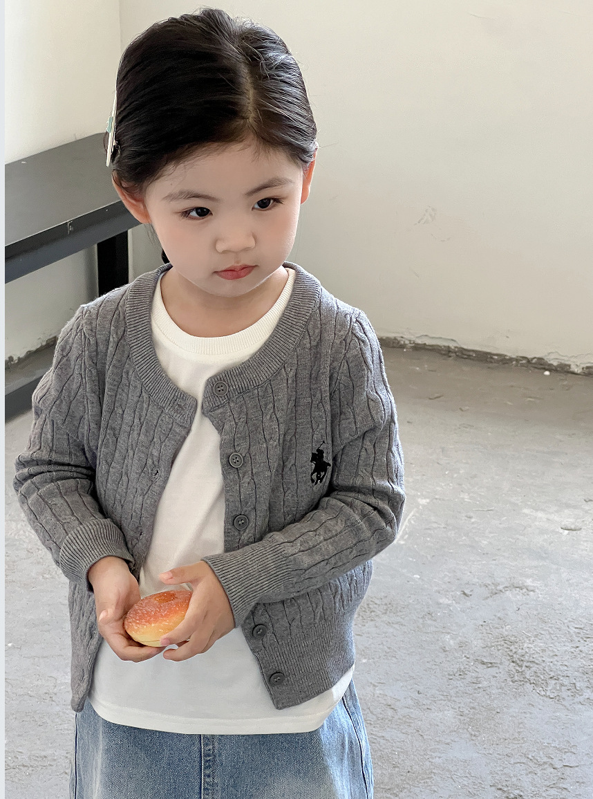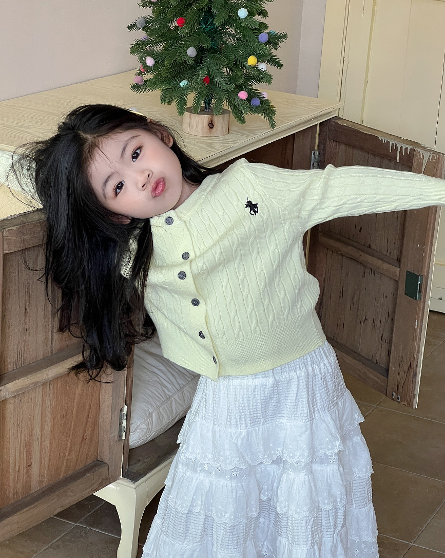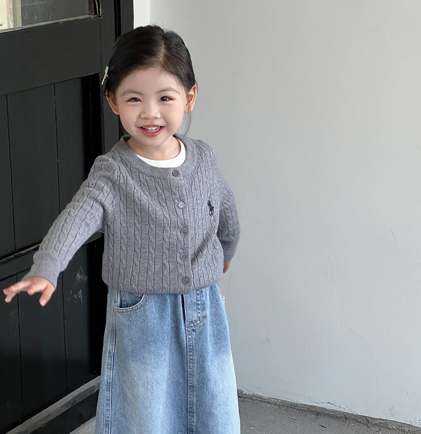 女童针织开衫2025新款秋装韩版女宝宝麻花刺绣外衣儿童长袖毛衣