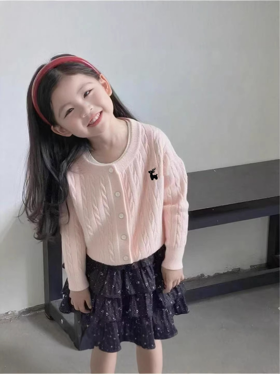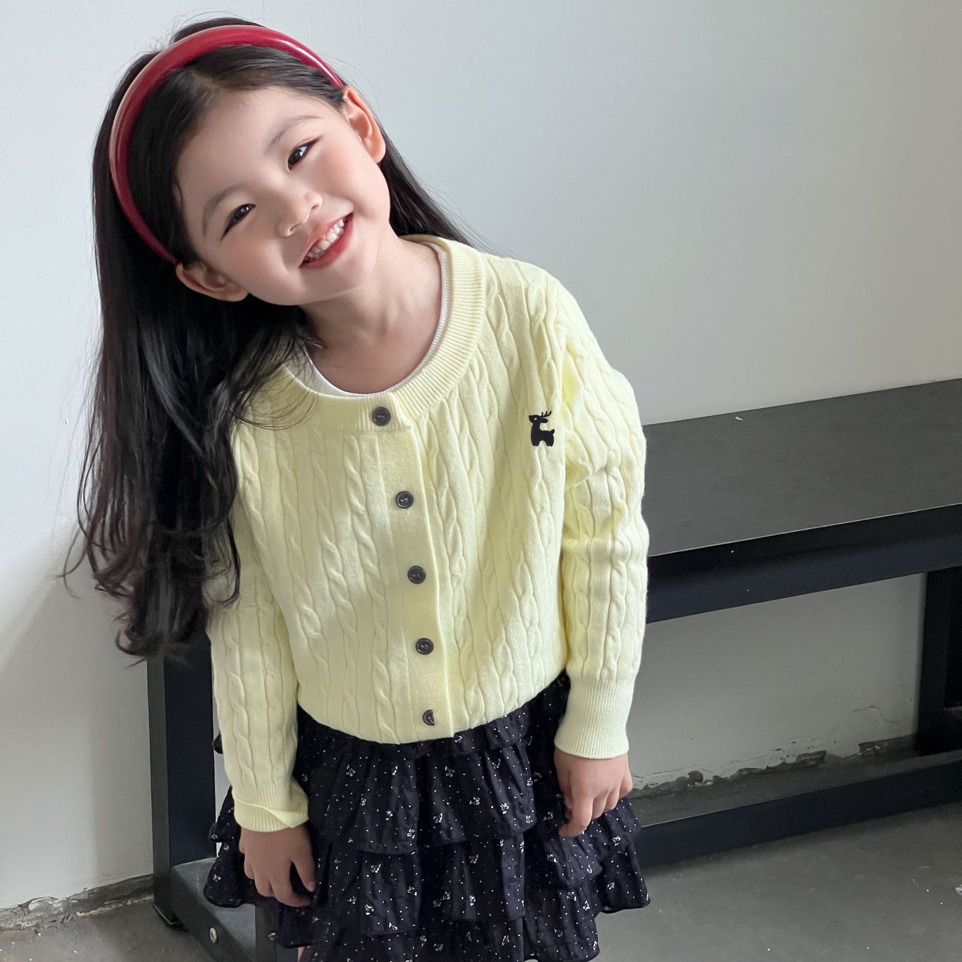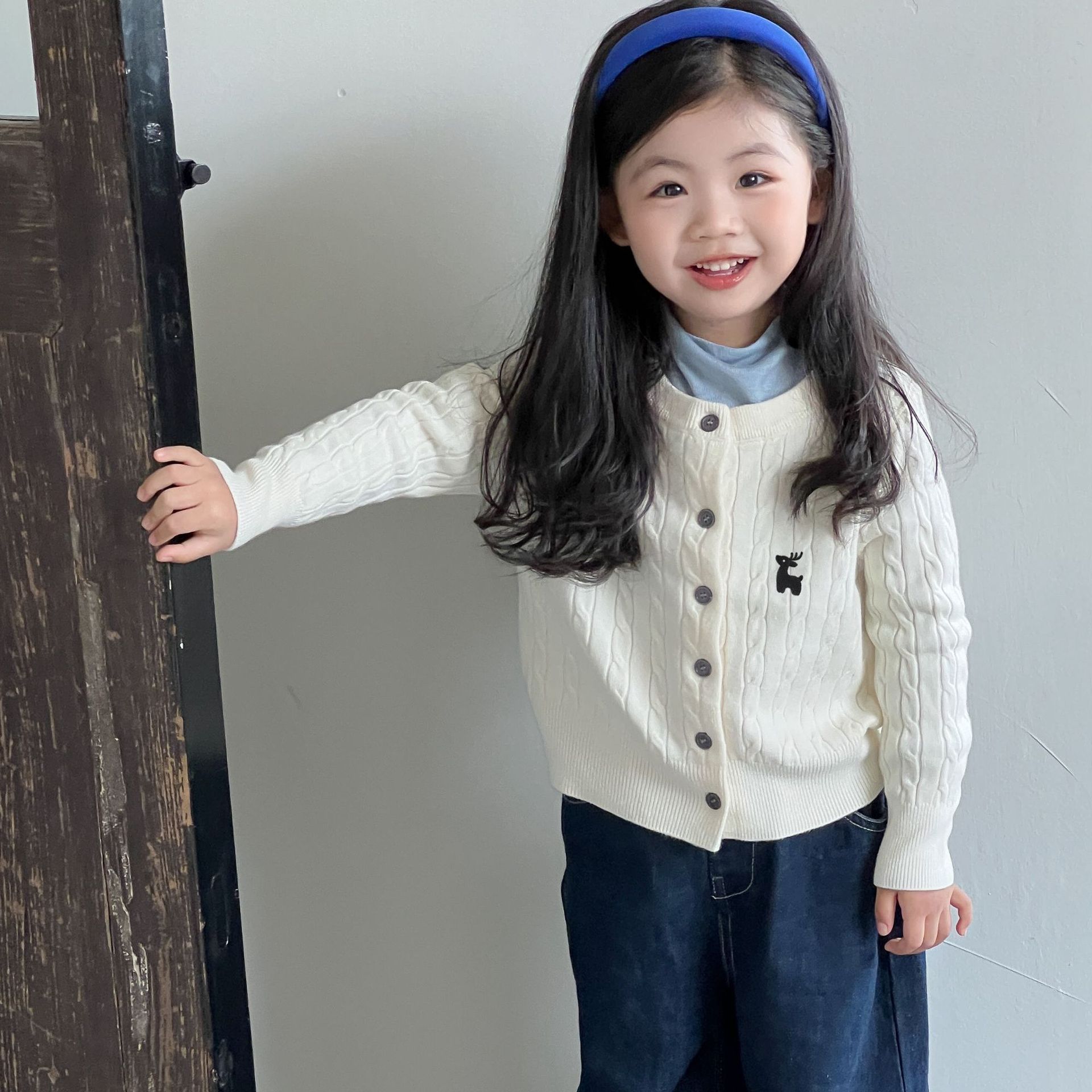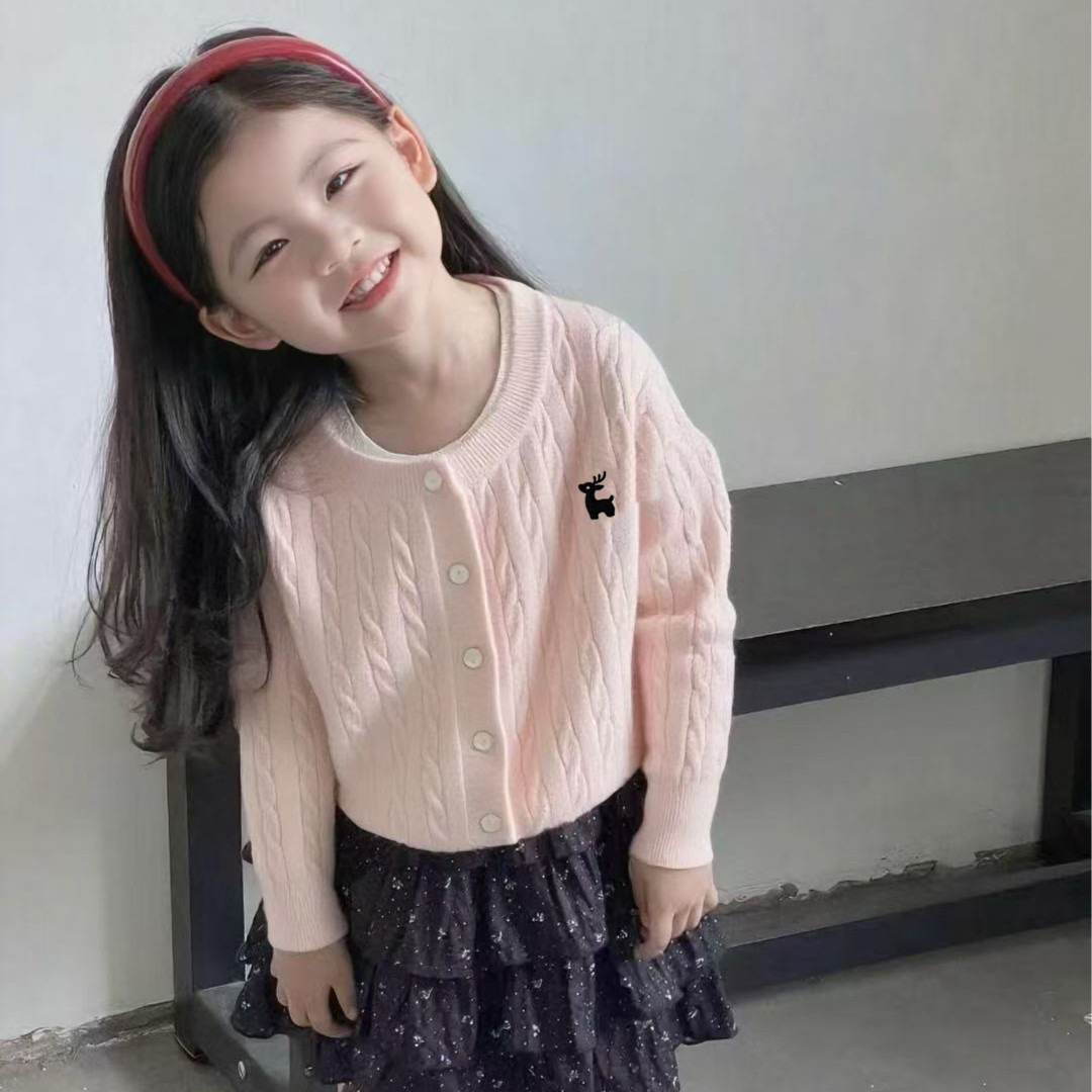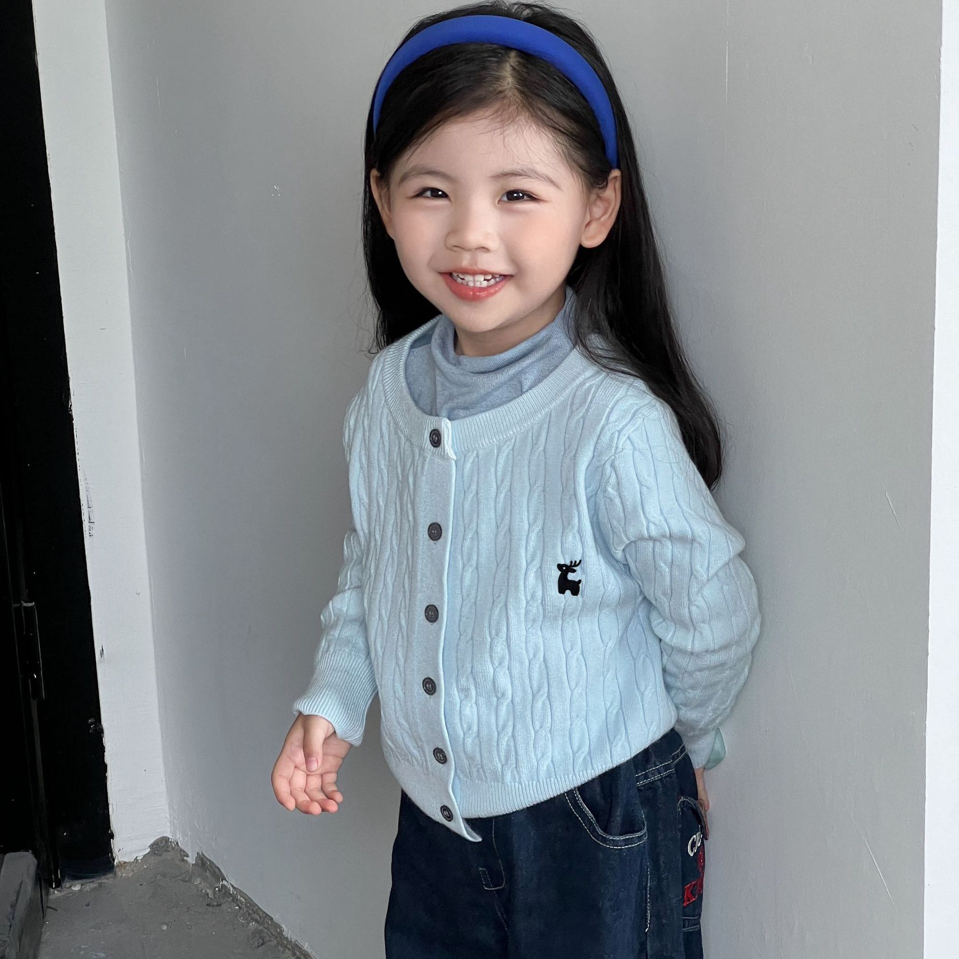 Детский вязаный кардиган для девочек, осень 2025, корейский стиль, с вышивкой, длинный рукав