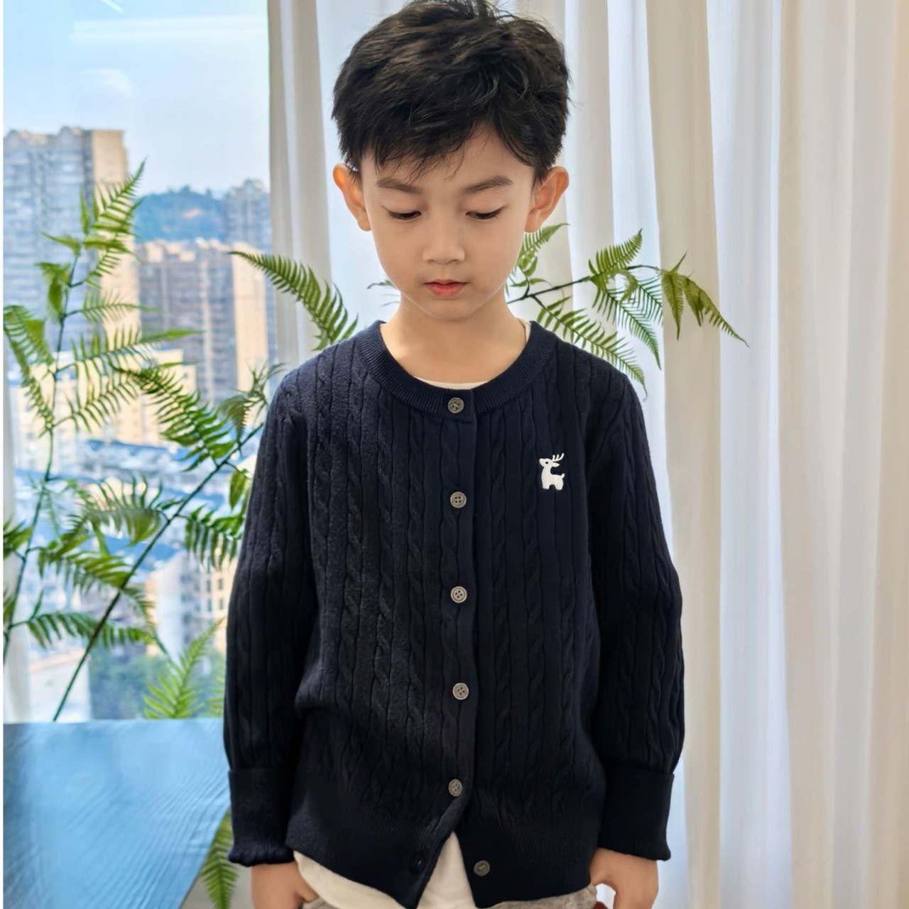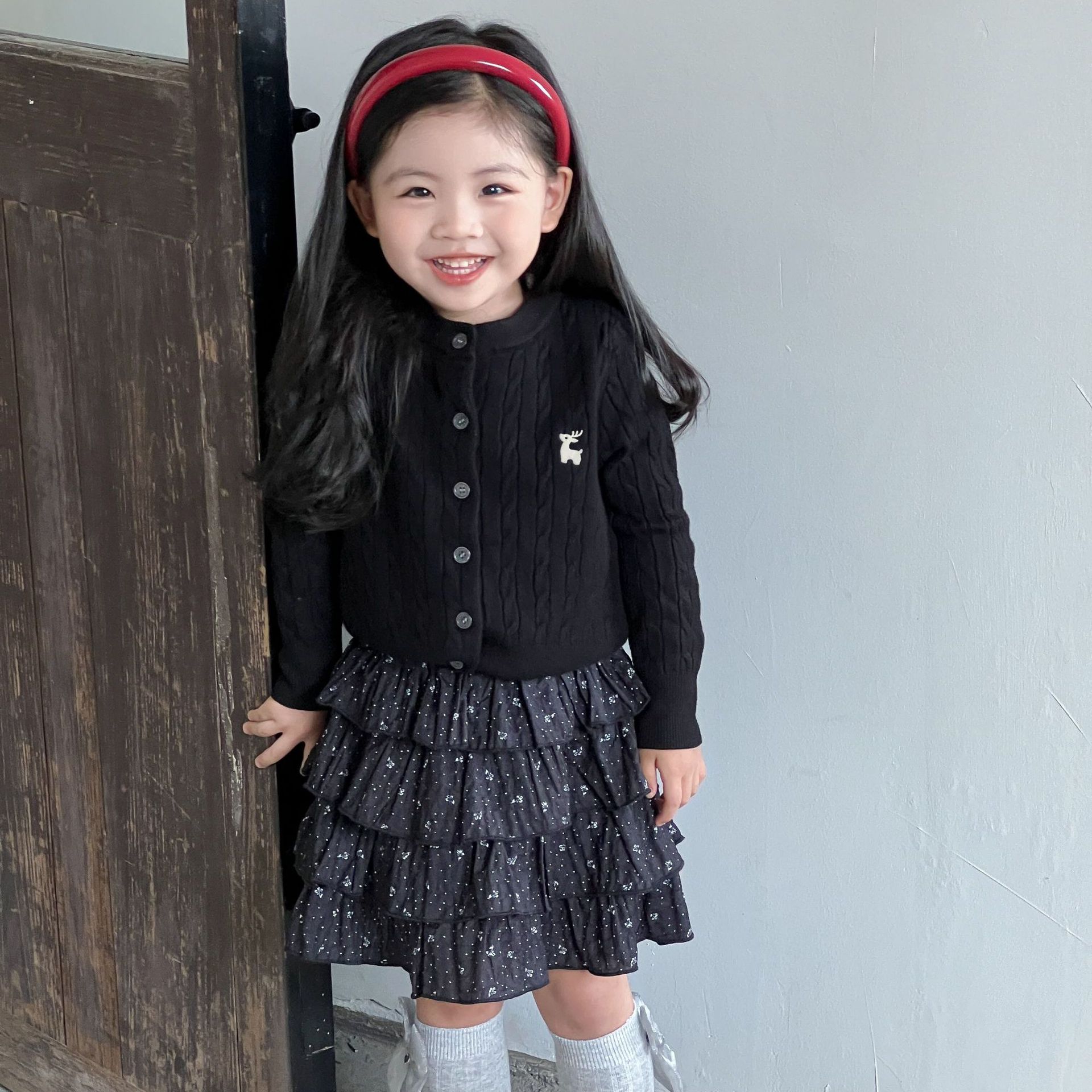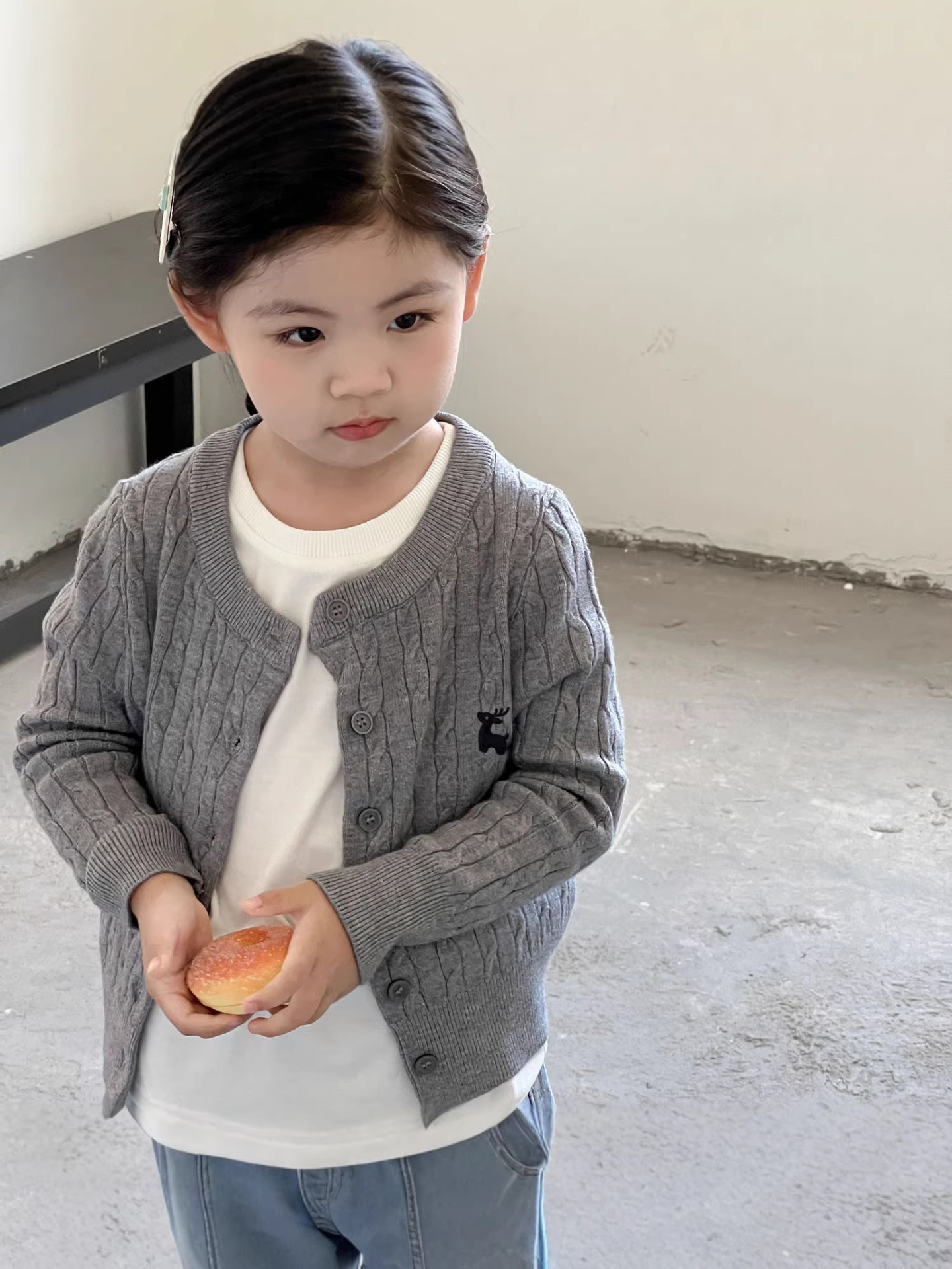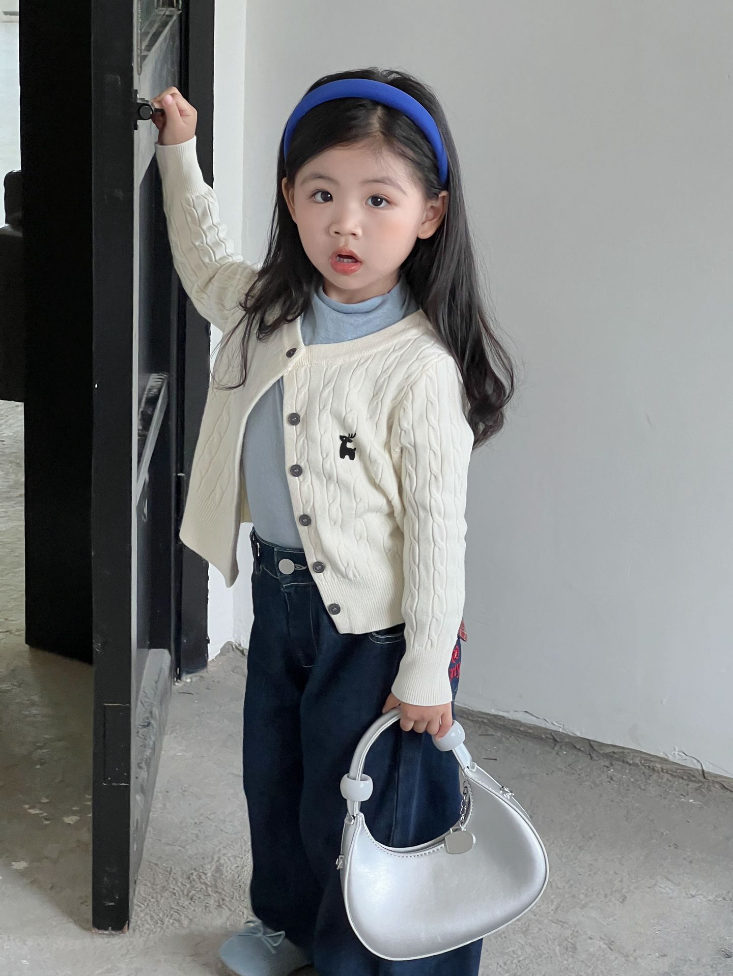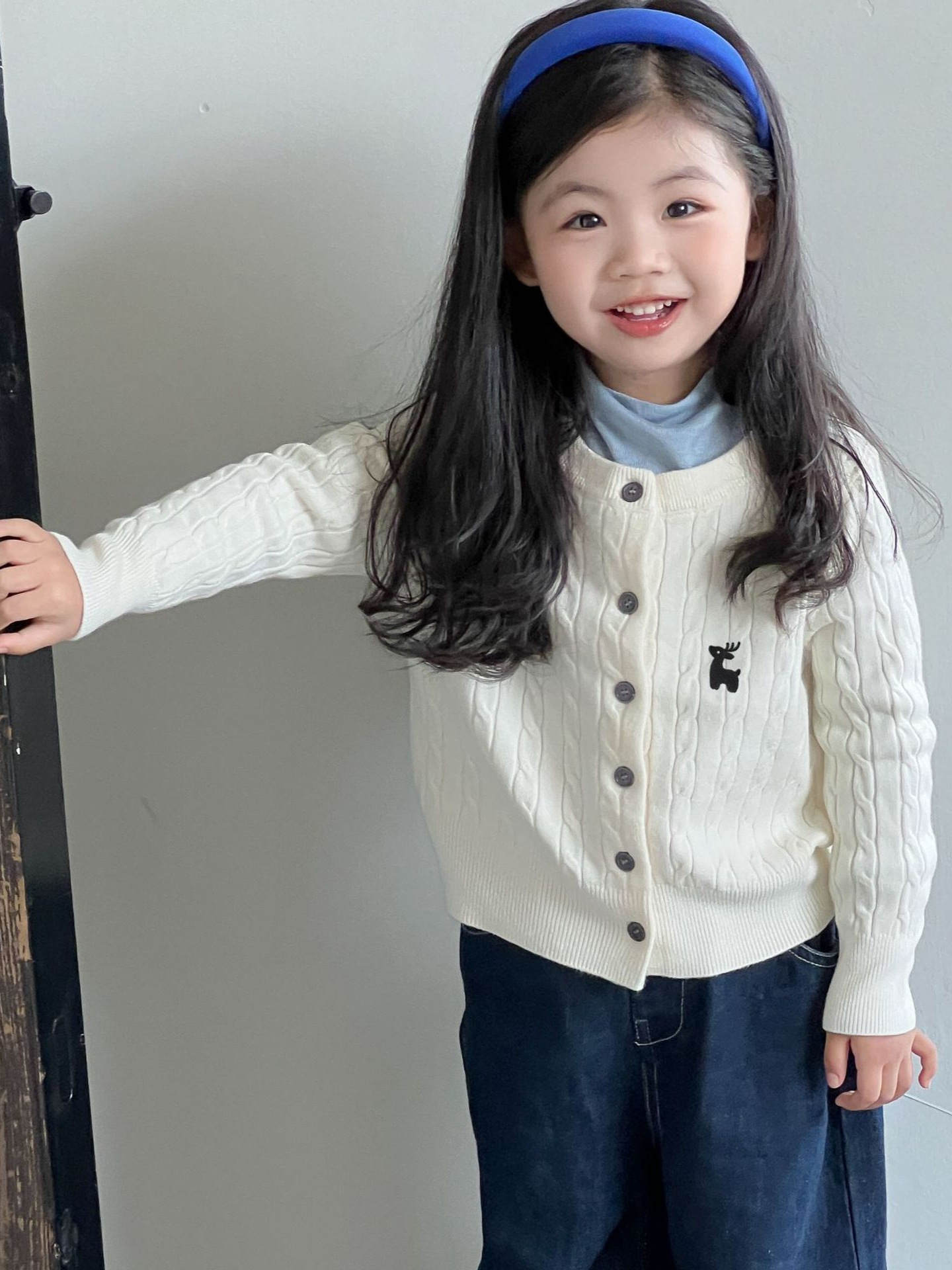 Детский вязаный кардиган для девочек, осень 2025, корейский стиль, с вышивкой, длинный рукав
