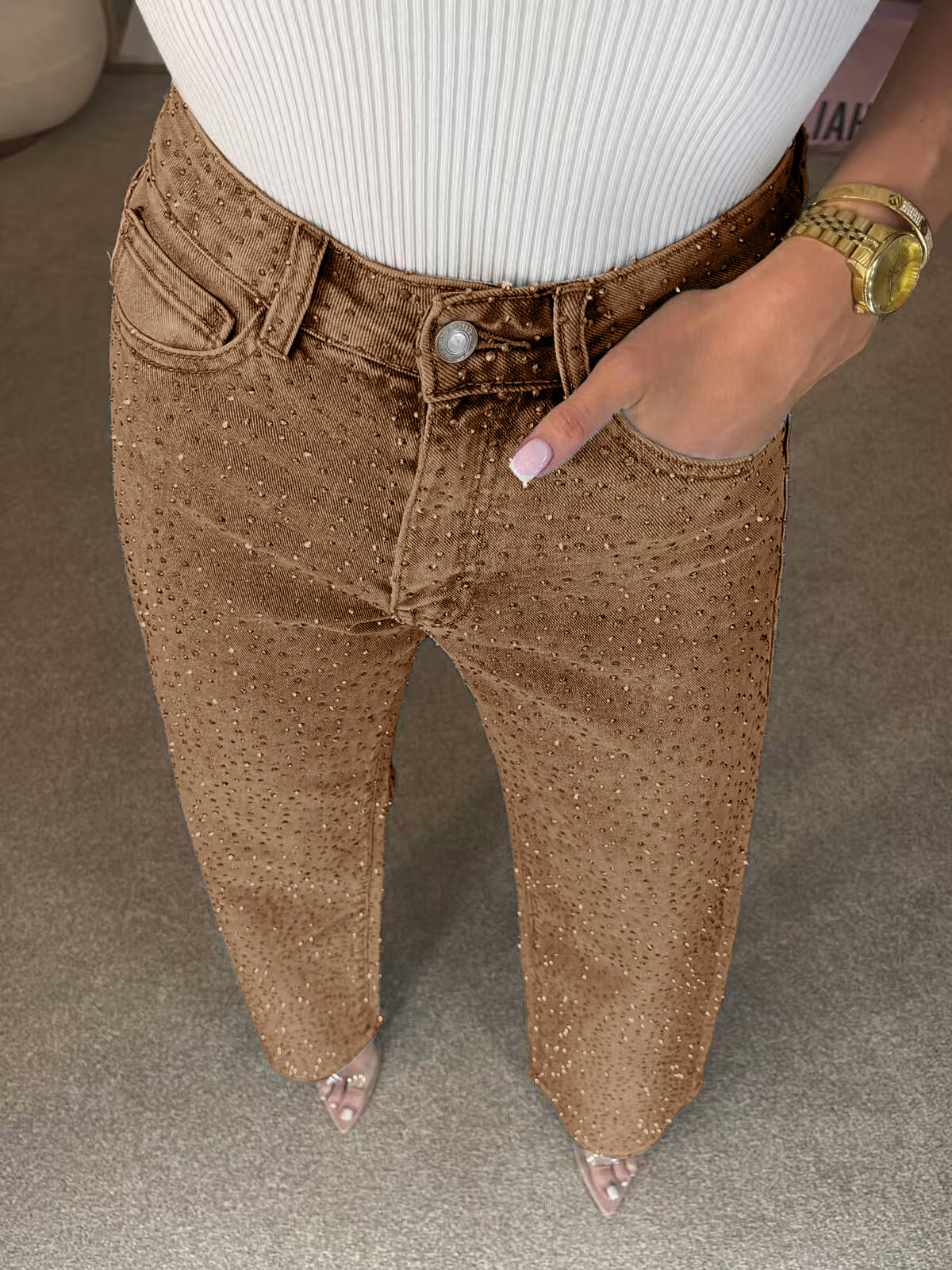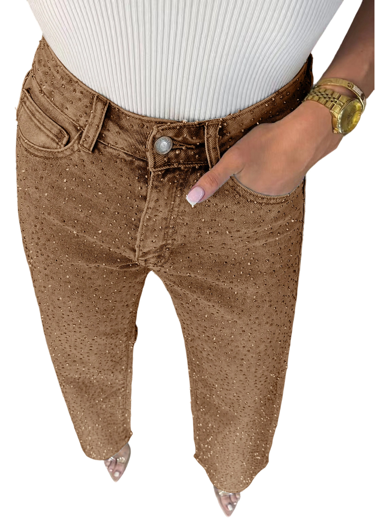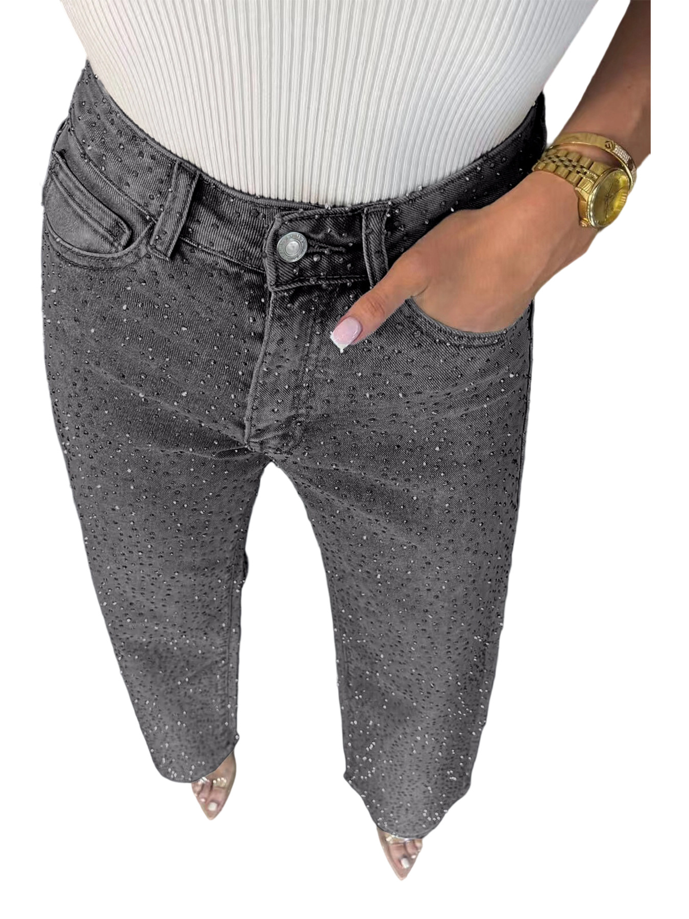 D8751 Женские джинсы с полной стразовой отделкой, высокая талия, прямые брюки, сексуальные штаны для женщин, европейский и американский стиль, для Amazon.