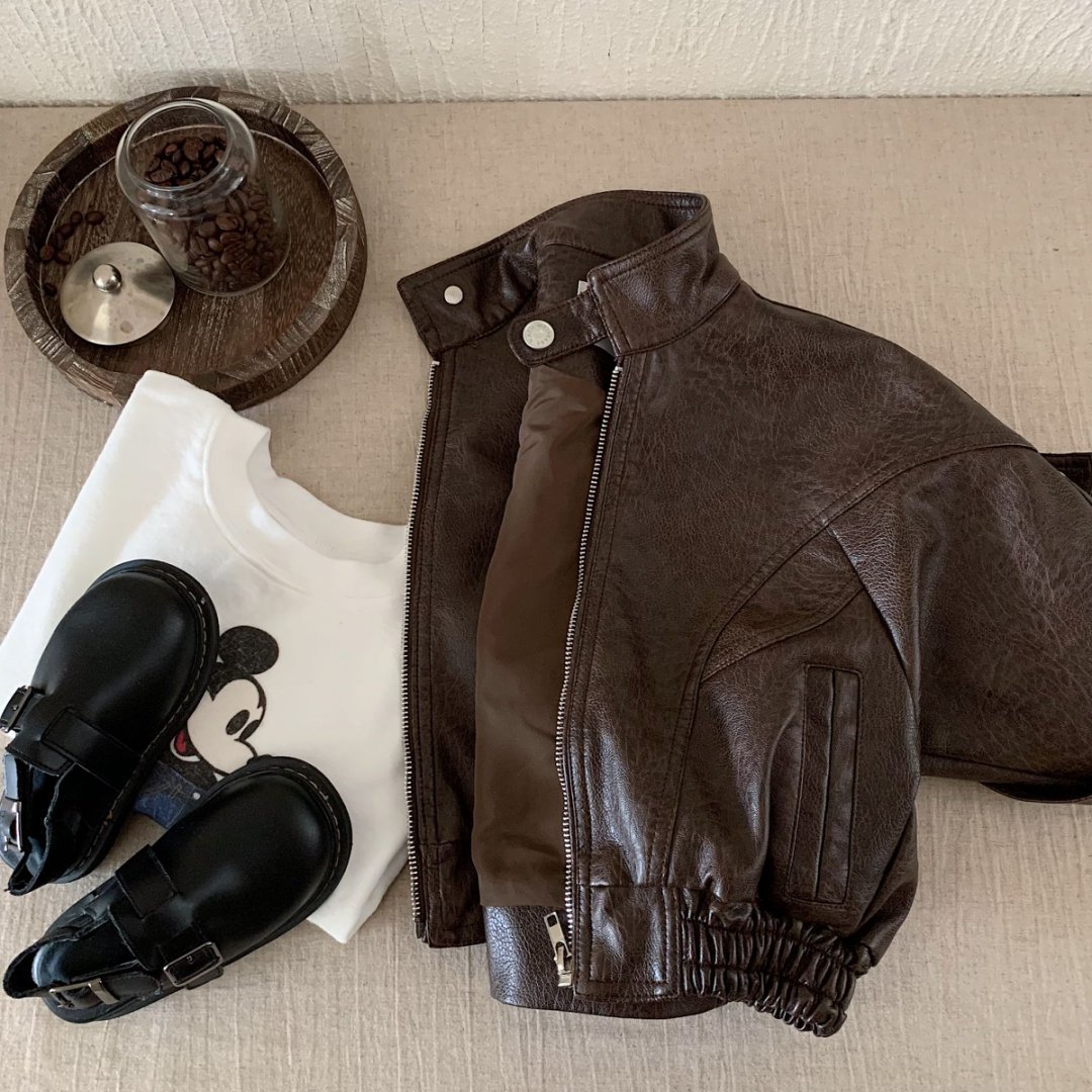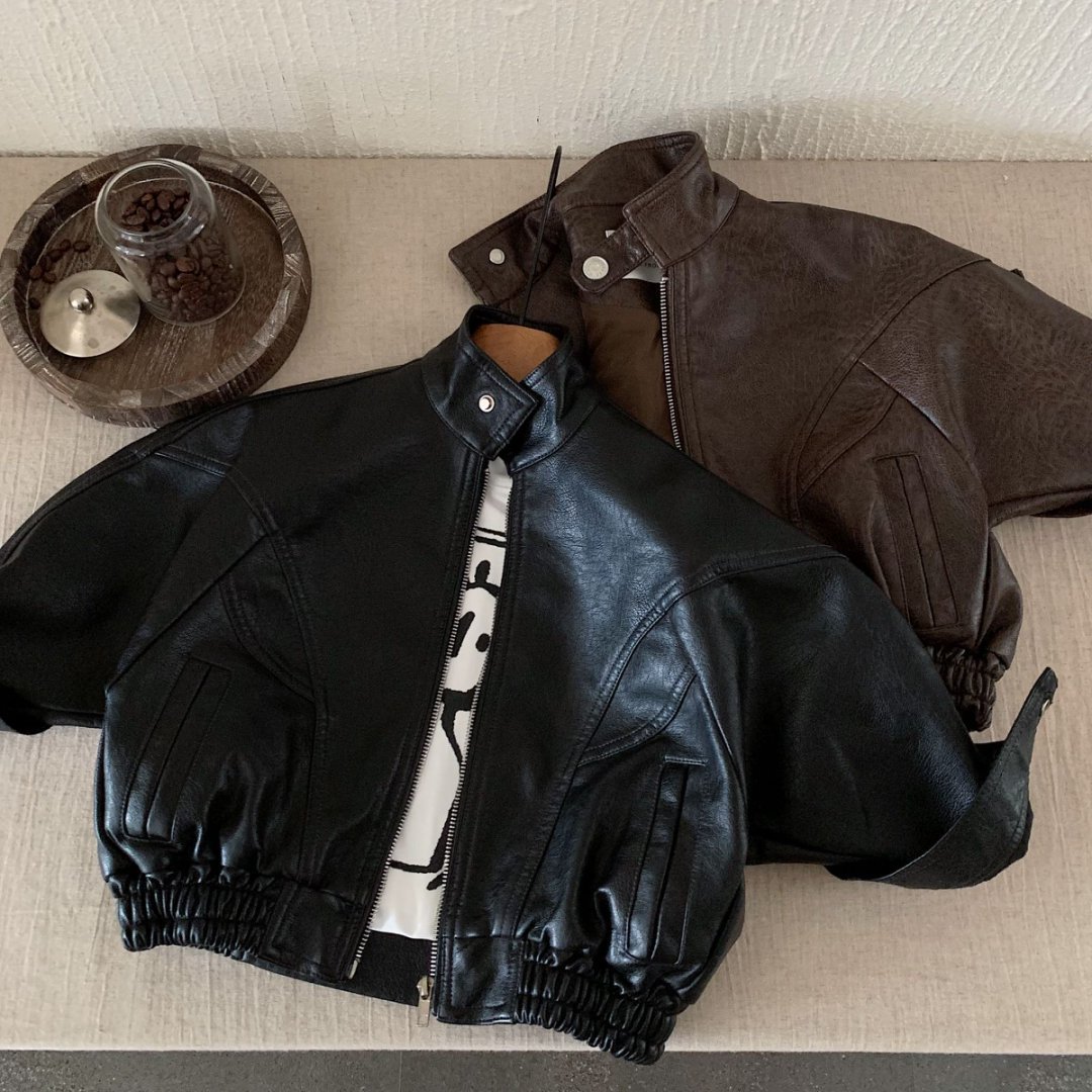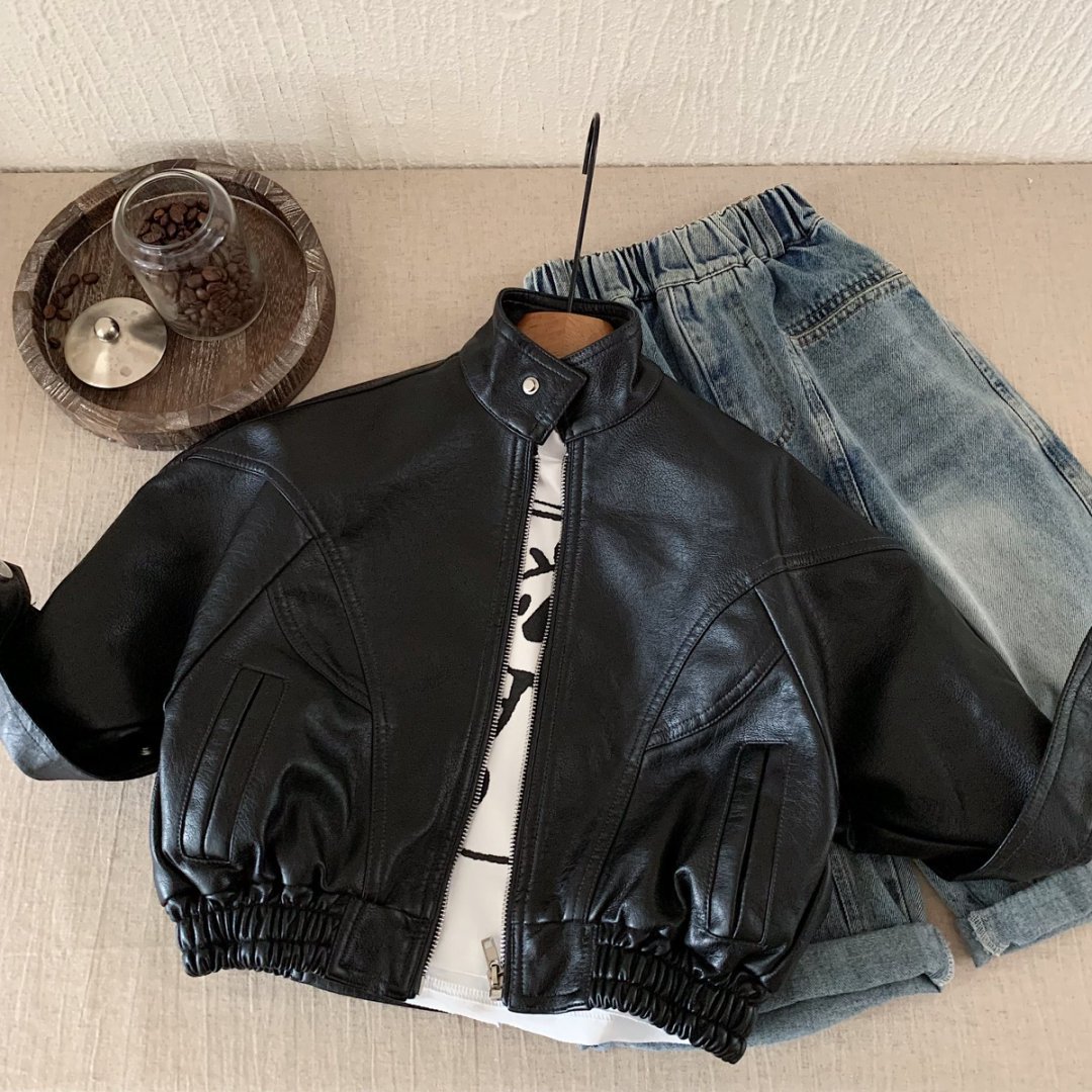 Детская кожаная куртка 2025 осень новая корейский стиль для мальчиков и девочек крутая байкерская куртка модная стильная куртка