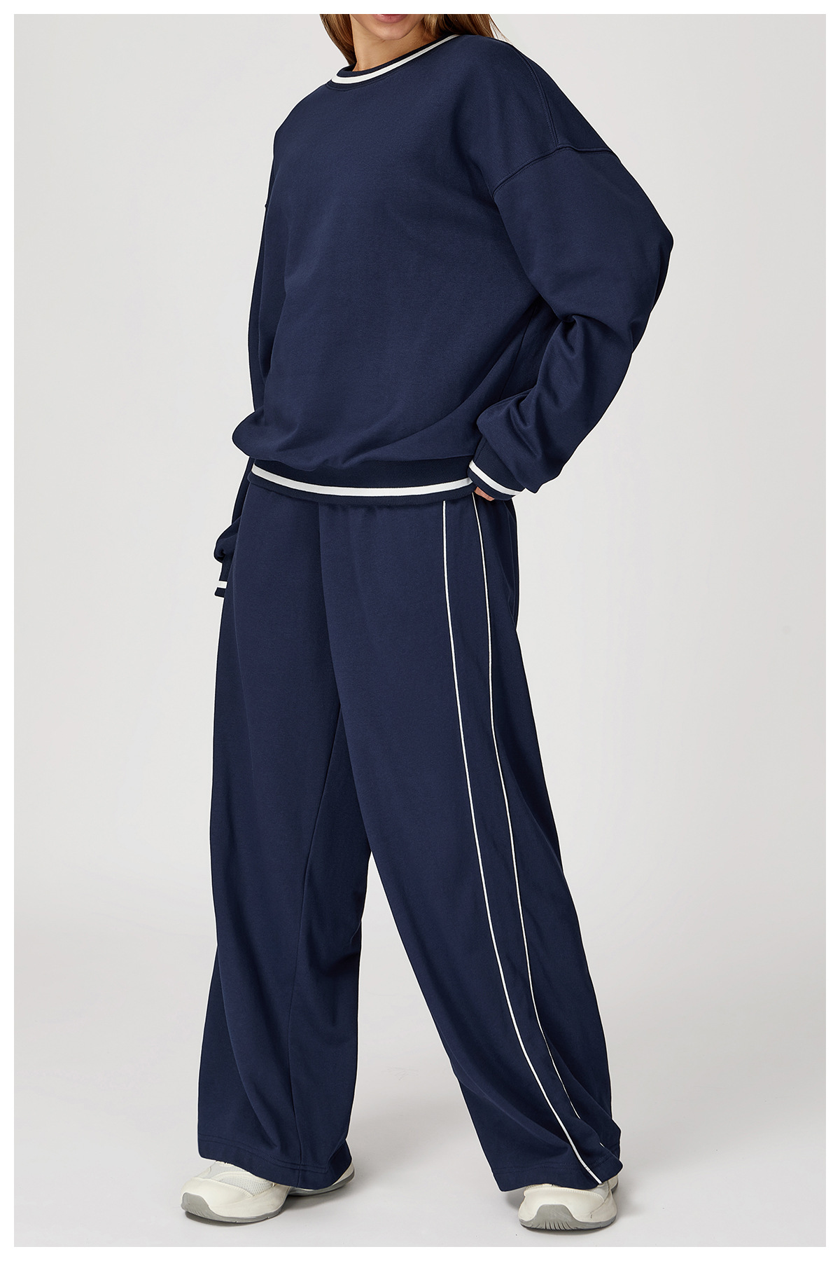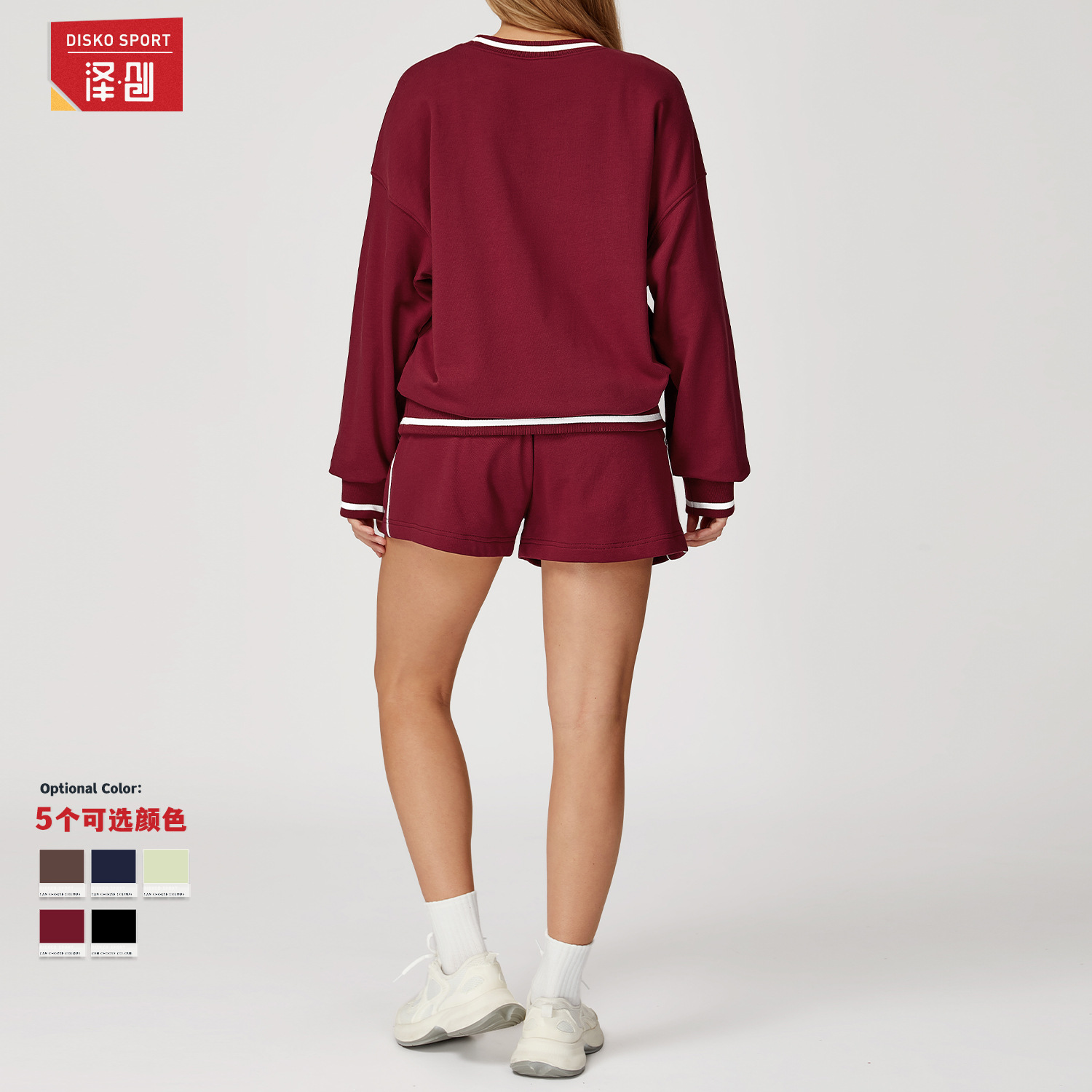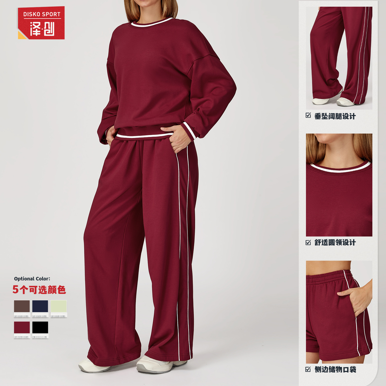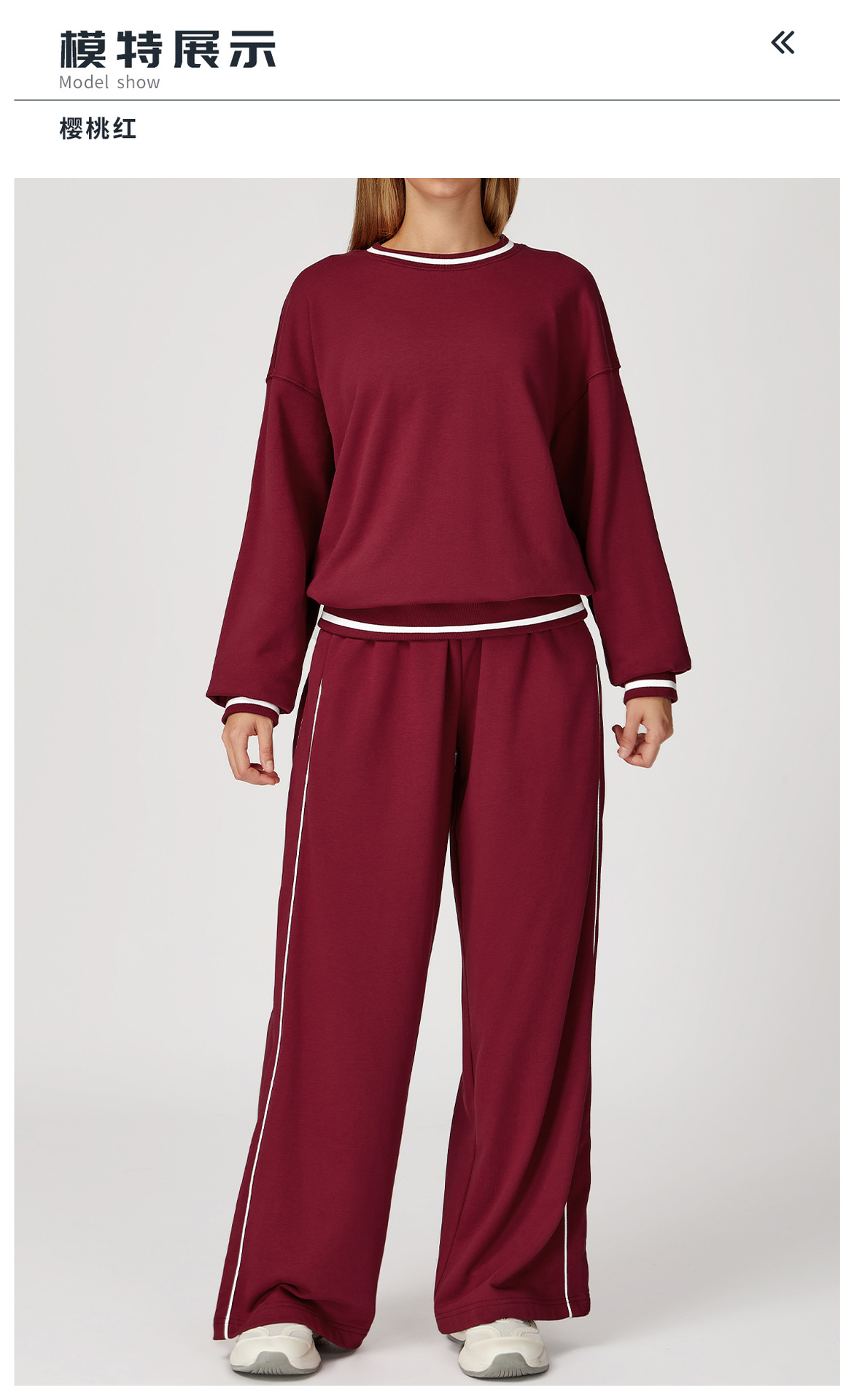 泽创秋冬休闲撞色卫衣套装舒适百搭套装女户外时尚运动套装7028