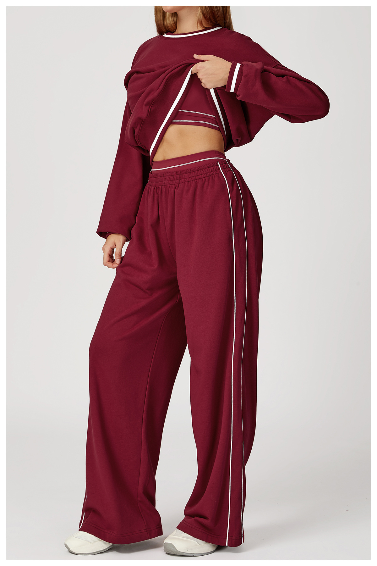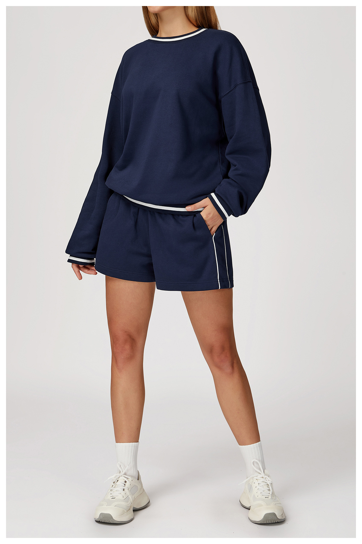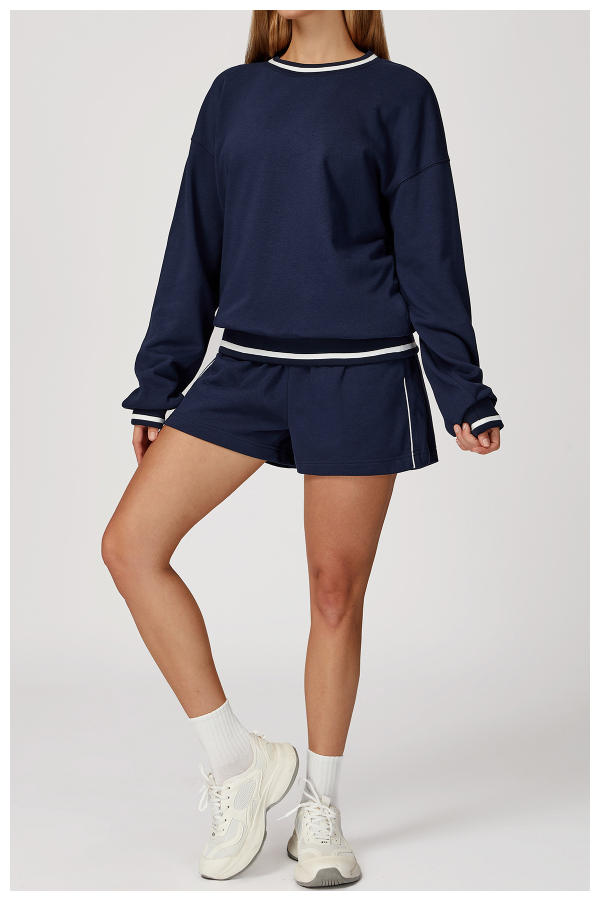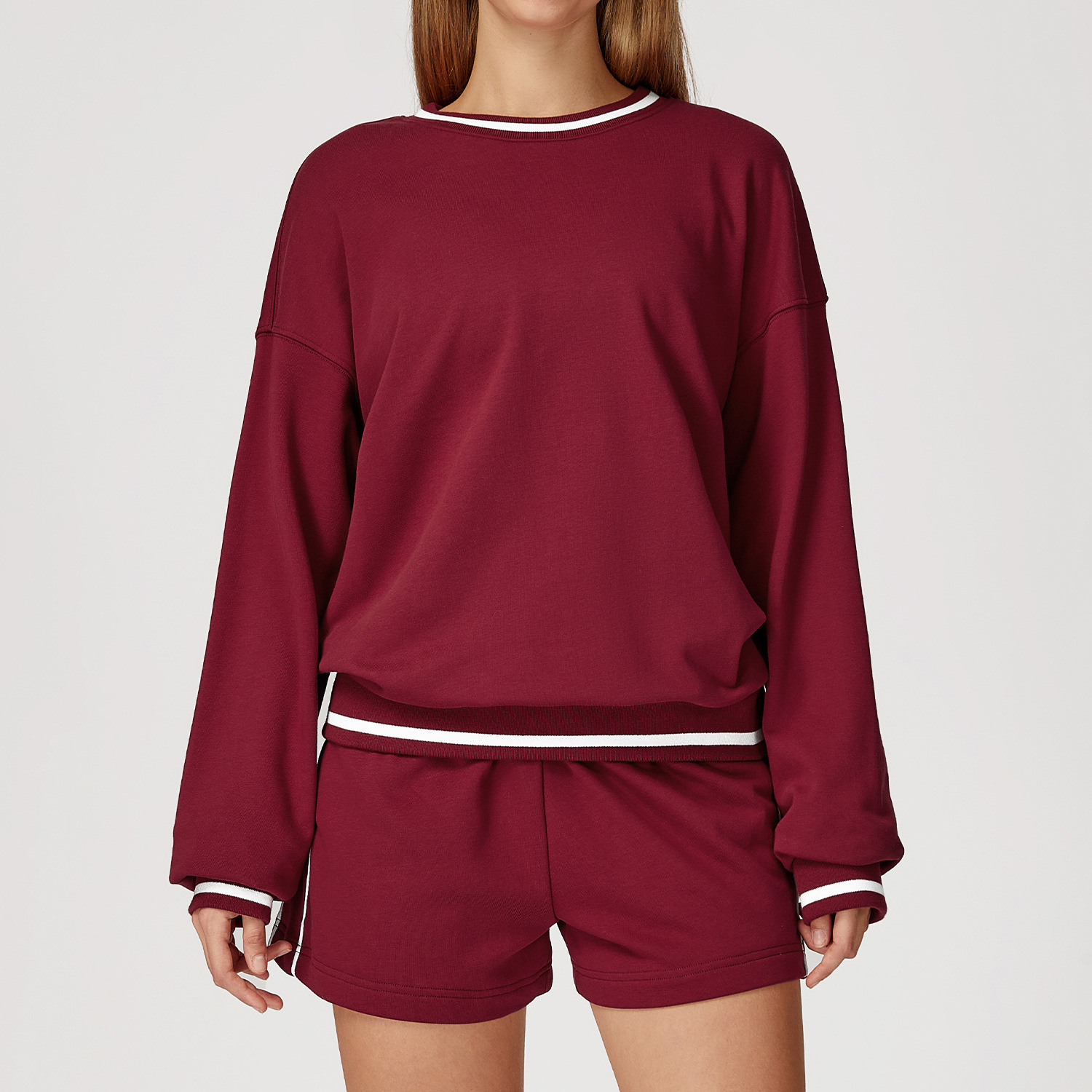 泽创秋冬休闲撞色卫衣套装舒适百搭套装女户外时尚运动套装7028
