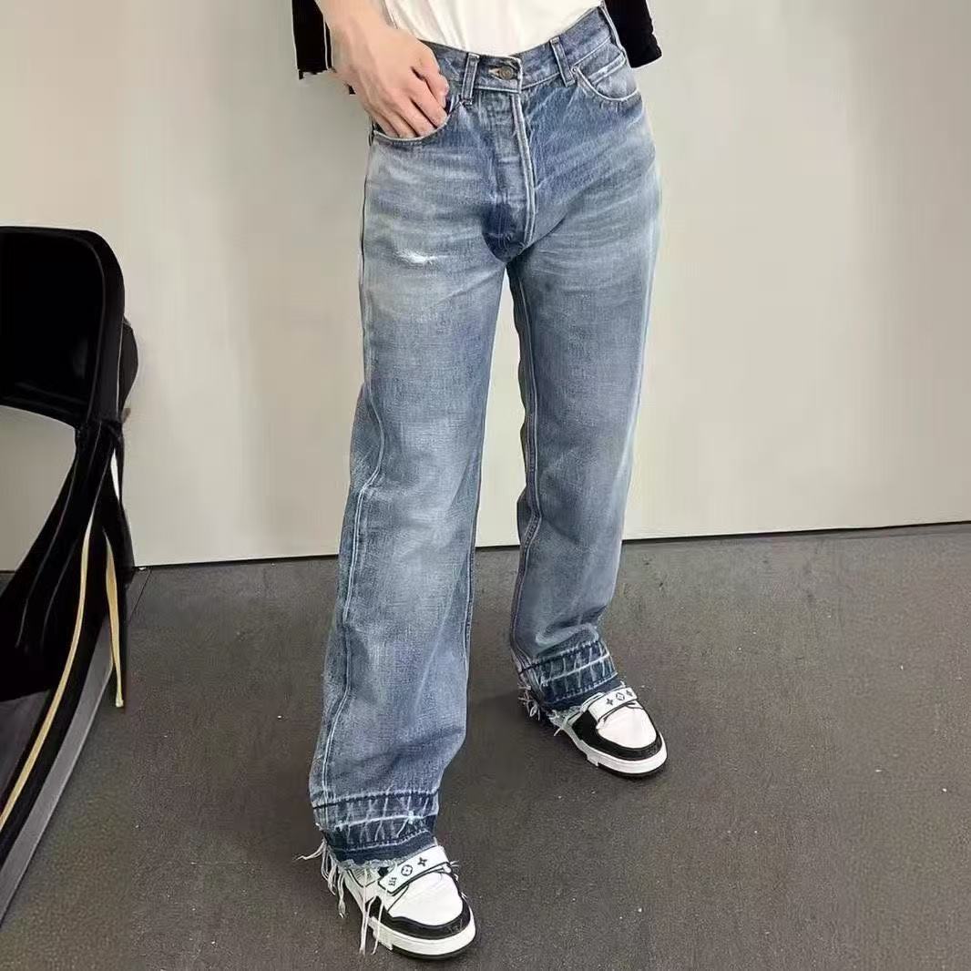 Трансграничный экспорт, американские чистые черные джинсы с кисточками в стиле 507, потертые брюки в стиле ретро