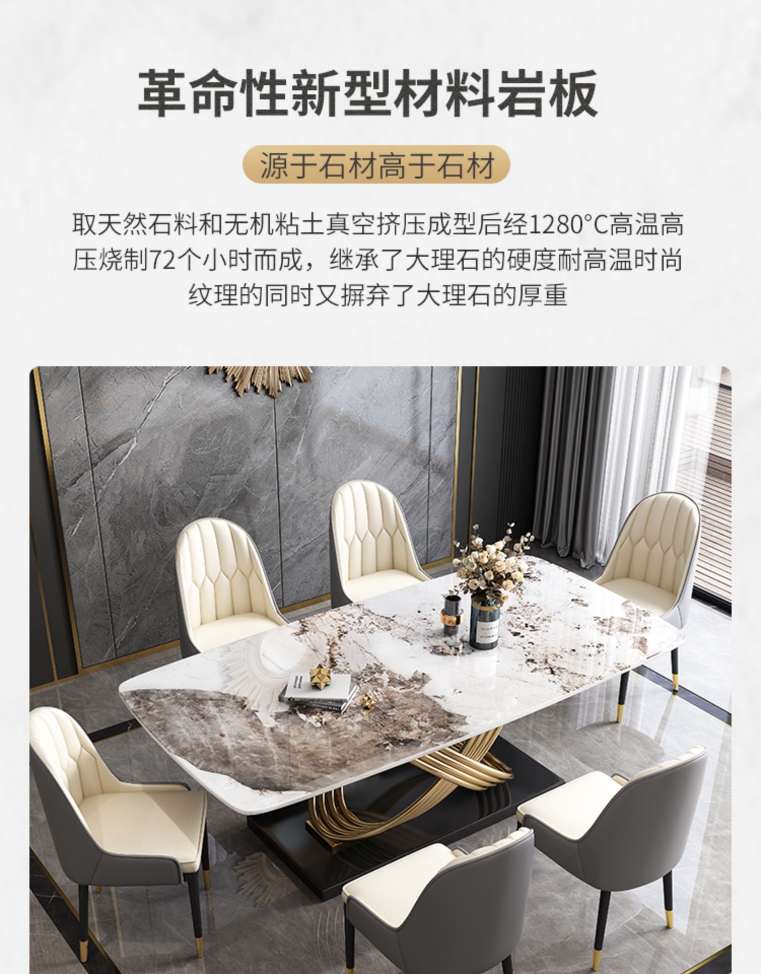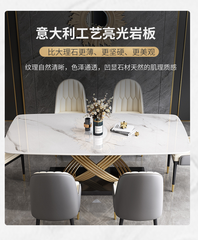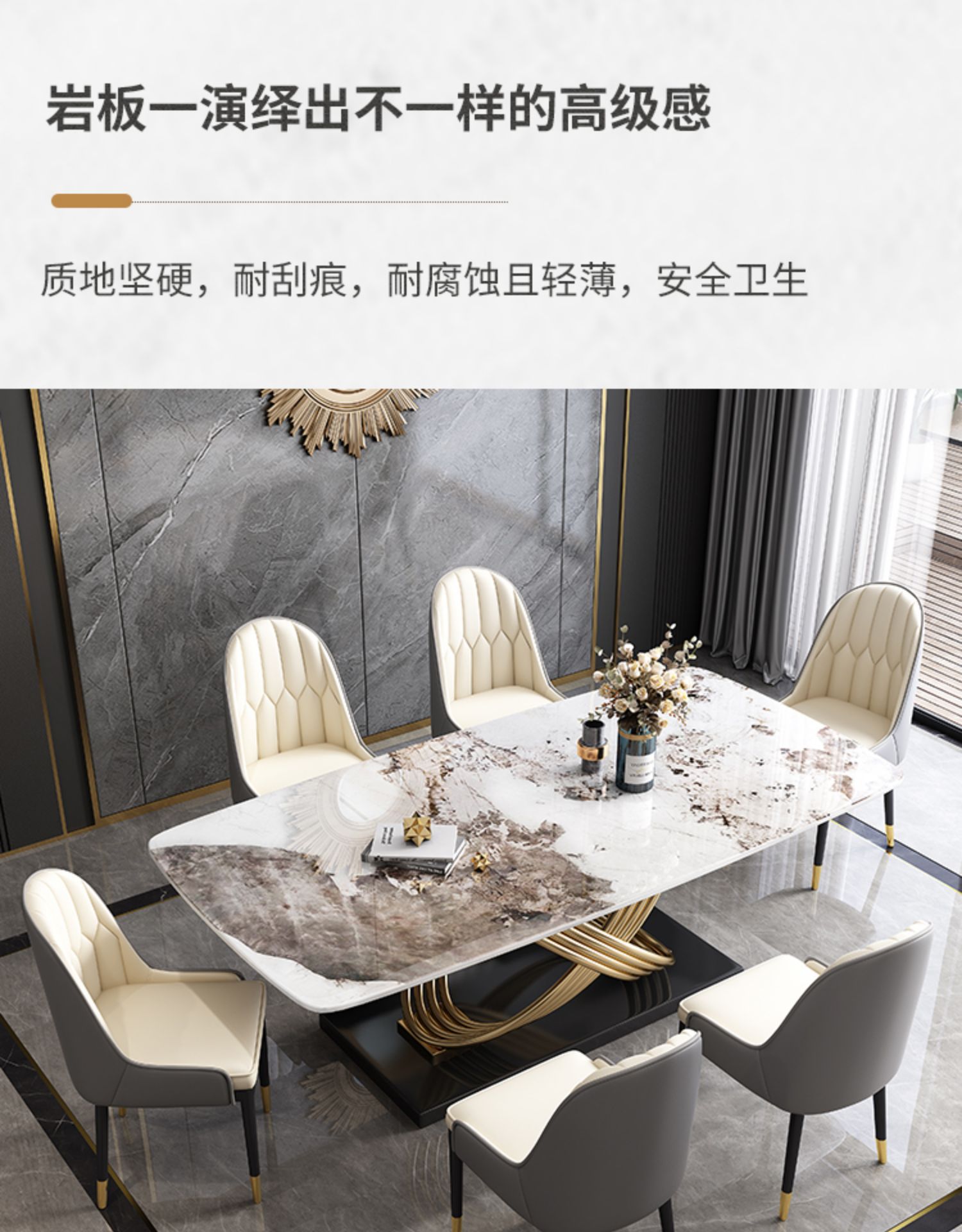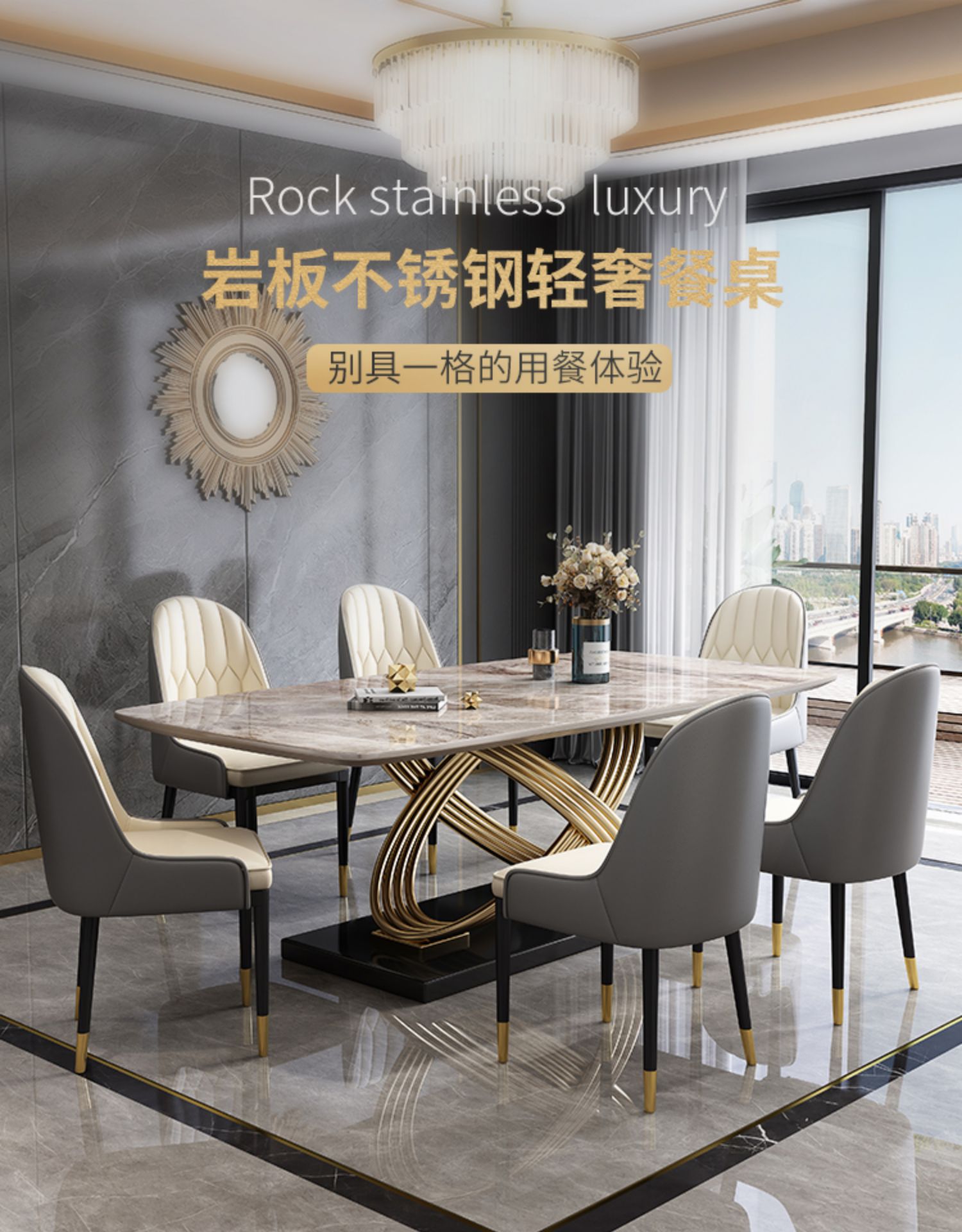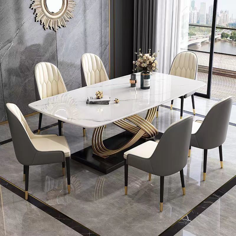 Обеденный стол и стулья из итальянского сланца, современный простой прямоугольный размер, светлая роскошь, высококачественный домашний обеденный стол