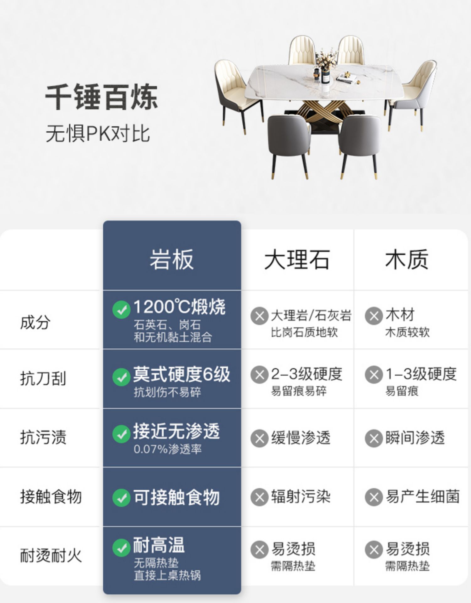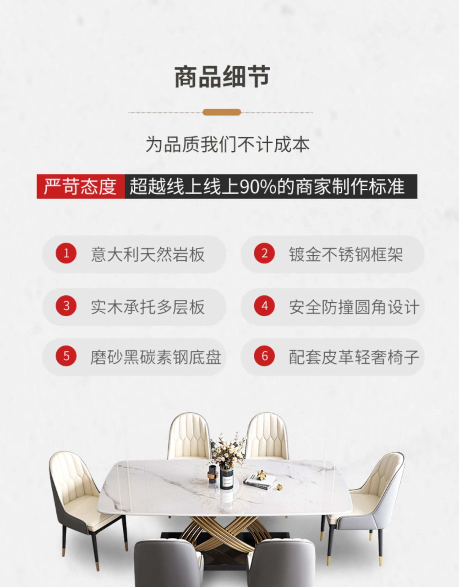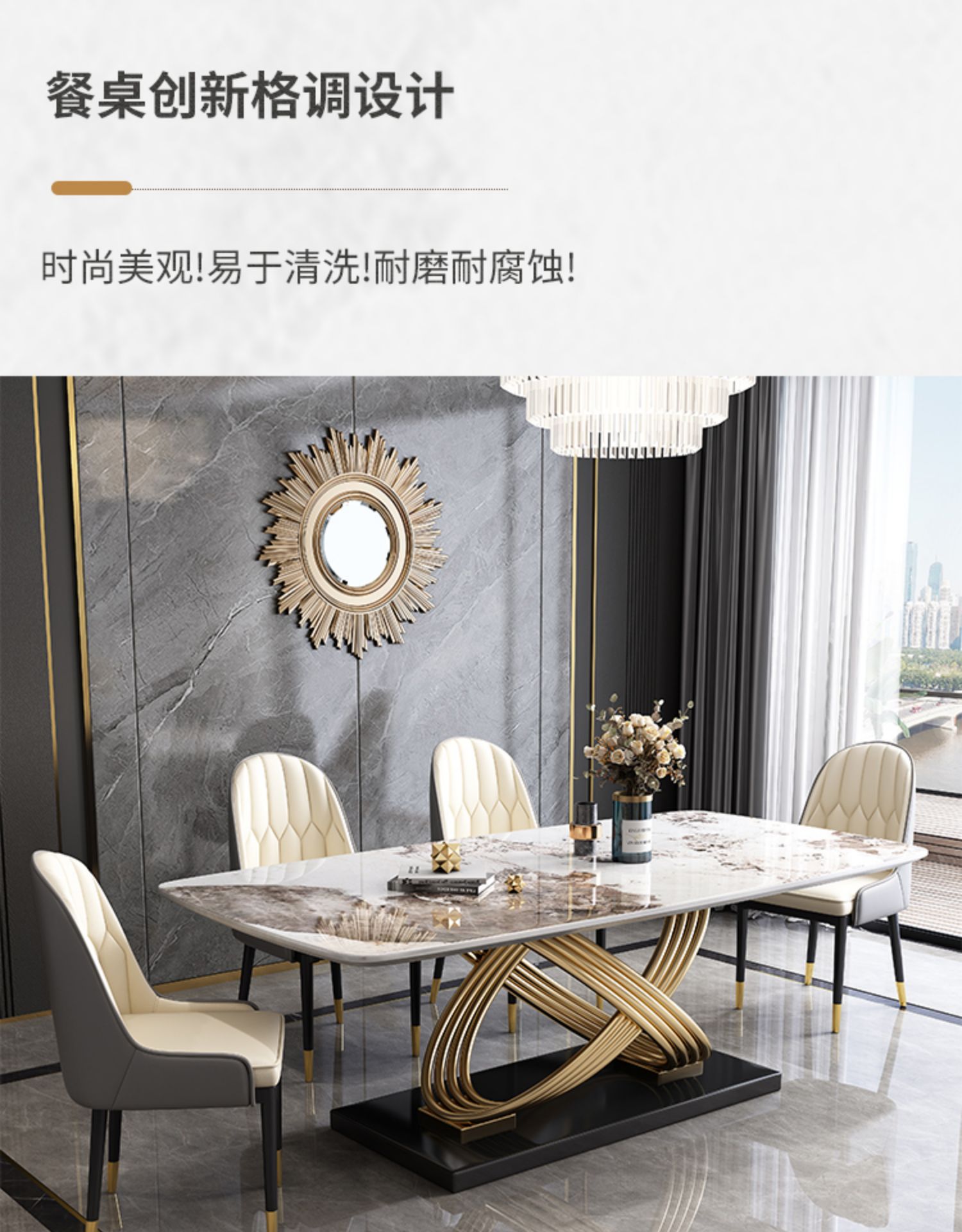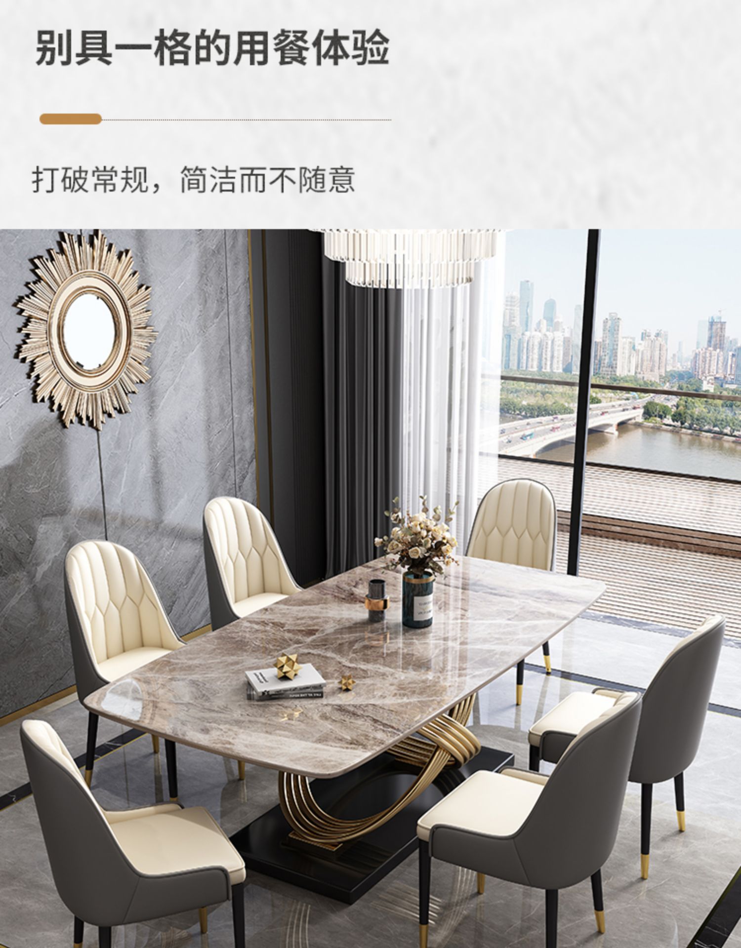 Обеденный стол и стулья из итальянского сланца, современный простой прямоугольный размер, светлая роскошь, высококачественный домашний обеденный стол
