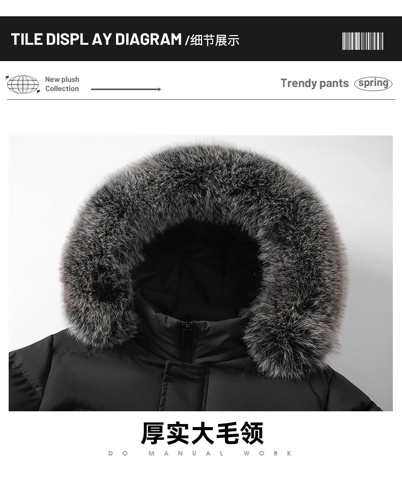 跨境定制大码中长款棉衣男冬季可拆卸连帽棉服加厚大毛领棉袄外套