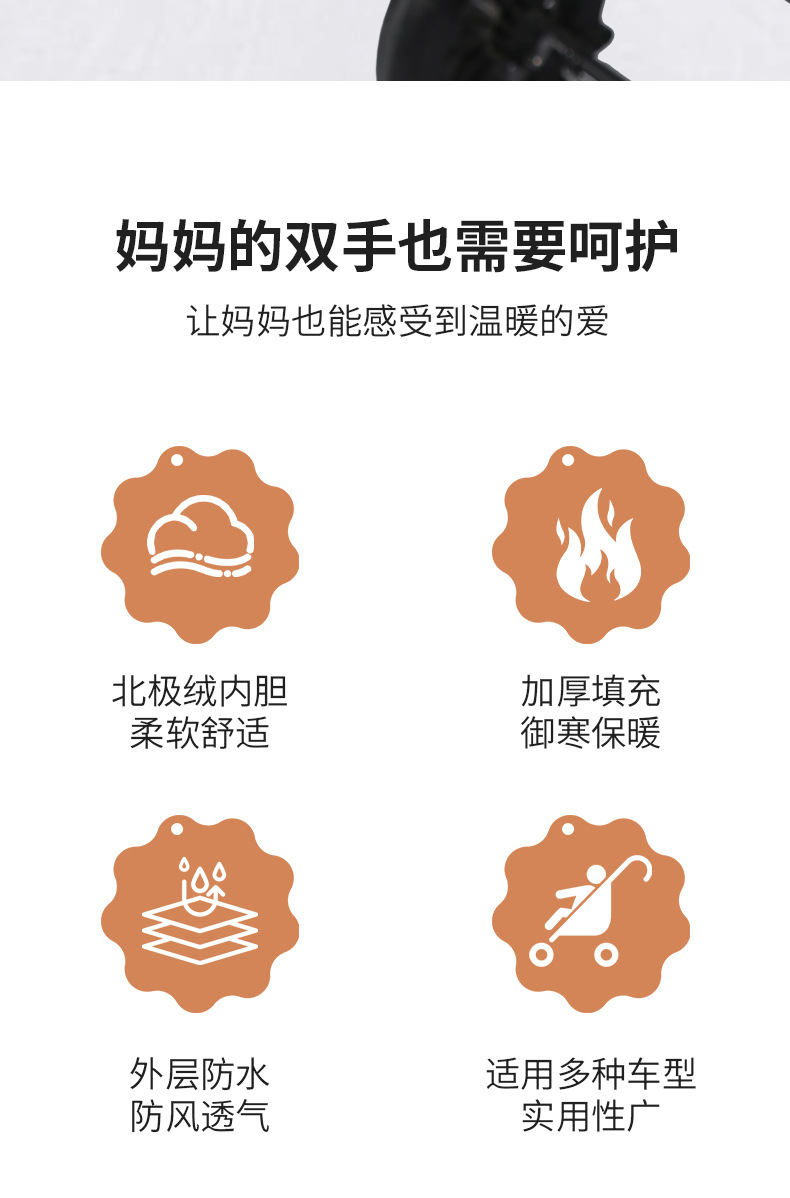 厂家直供婴儿推车保暖手套防水防风防寒加绒加厚童车把手套跨境