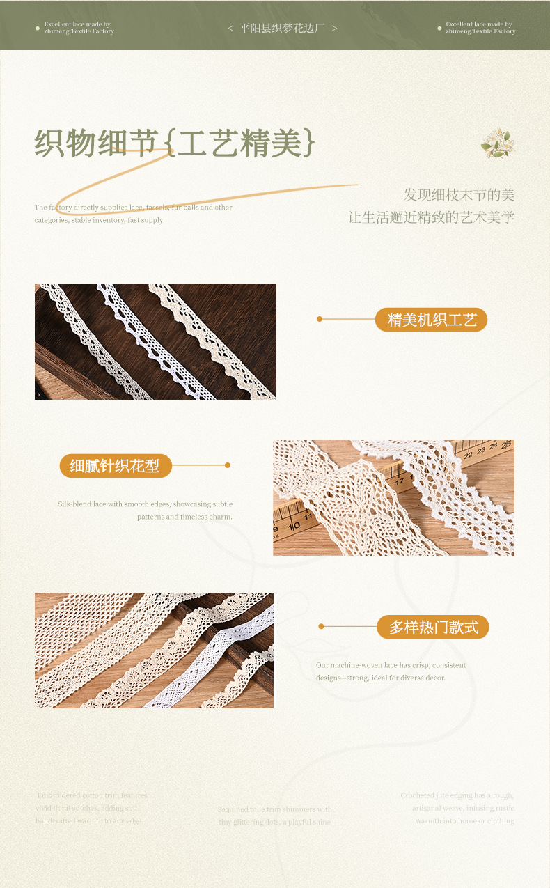 № 1-Бенбай-1см хлопковое кружево; №2-отбеленное хлопковое кружево 1см.; №3-оригинальное белое хлопковое кружево толщиной 1см.; №4-отбеленное хлопковое кружево толщиной 1см.; № 5-Бенбай-1,5 см хлопковое кружево; № 6-Бенбай-1,7 см хлопковое кружево; №7-Бенбай-2см хлопковое кружево; №8-оригинальное белое хлопковое кружево 2,5см.; №9-отбеленное хлопковое кружево 2,5см.; №10 - Оригинал белый - хлопковое кружево 3см (с золотой нитью); №11-оригинальное белое хлопковое кружево 2,5см.; № 12-отбеленное хлопковое кружево 2,5 см.; № 13-Оригинальное белое хлопковое кружево 2,5 см; №14-оригинальное белое хлопковое кружево 4см.; №15-оригинальное белое хлопковое кружево 4,5см.; №16-оригинальное белое хлопковое кружево 6см.; № 17-Бенбай-3,5см хлопковое кружево; № 18-отбеленное хлопковое кружево 2,5 см.; № 19-Бенбай-1,3 см хлопковое кружево; № 20-отбеленное хлопковое кружево 1,3 см.; №21-черный-1,3см хлопковое кружево; №22-Оригинальное белое хлопковое кружево 1,5см.; №23-Оригинальное белое хлопковое кружево 2,5см.; №24-Оригинальное белое хлопковое кружево 3см.; № 25-Оригинальное белое хлопковое кружево 3 см; №26-Оригинальное белое хлопковое кружево 3,5см.