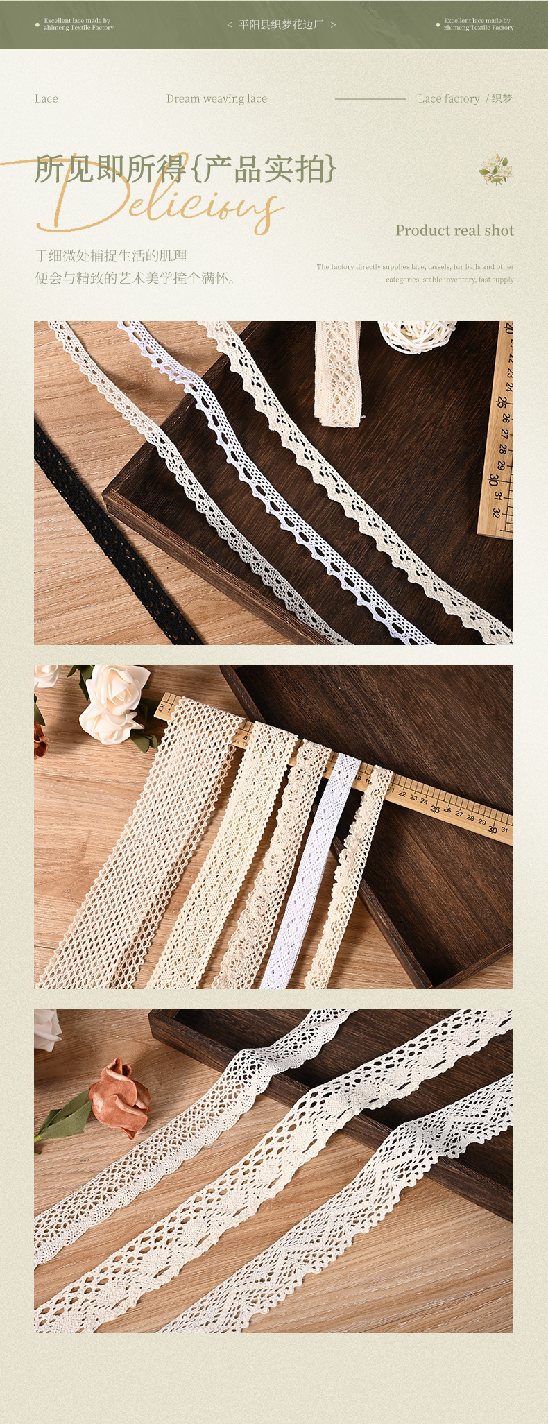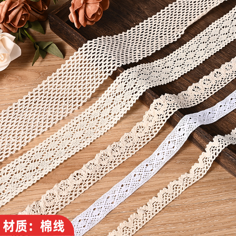 Полая кружевная ткань ручной работы для отделки одежды, скатертей, штор, декоративных аксессуаров, хлопковая нить, кружевной край